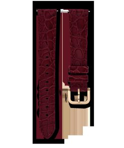 Watch strap 16 mm (0.63") width/Leather with stitching/Red/Rose gold-tone finish