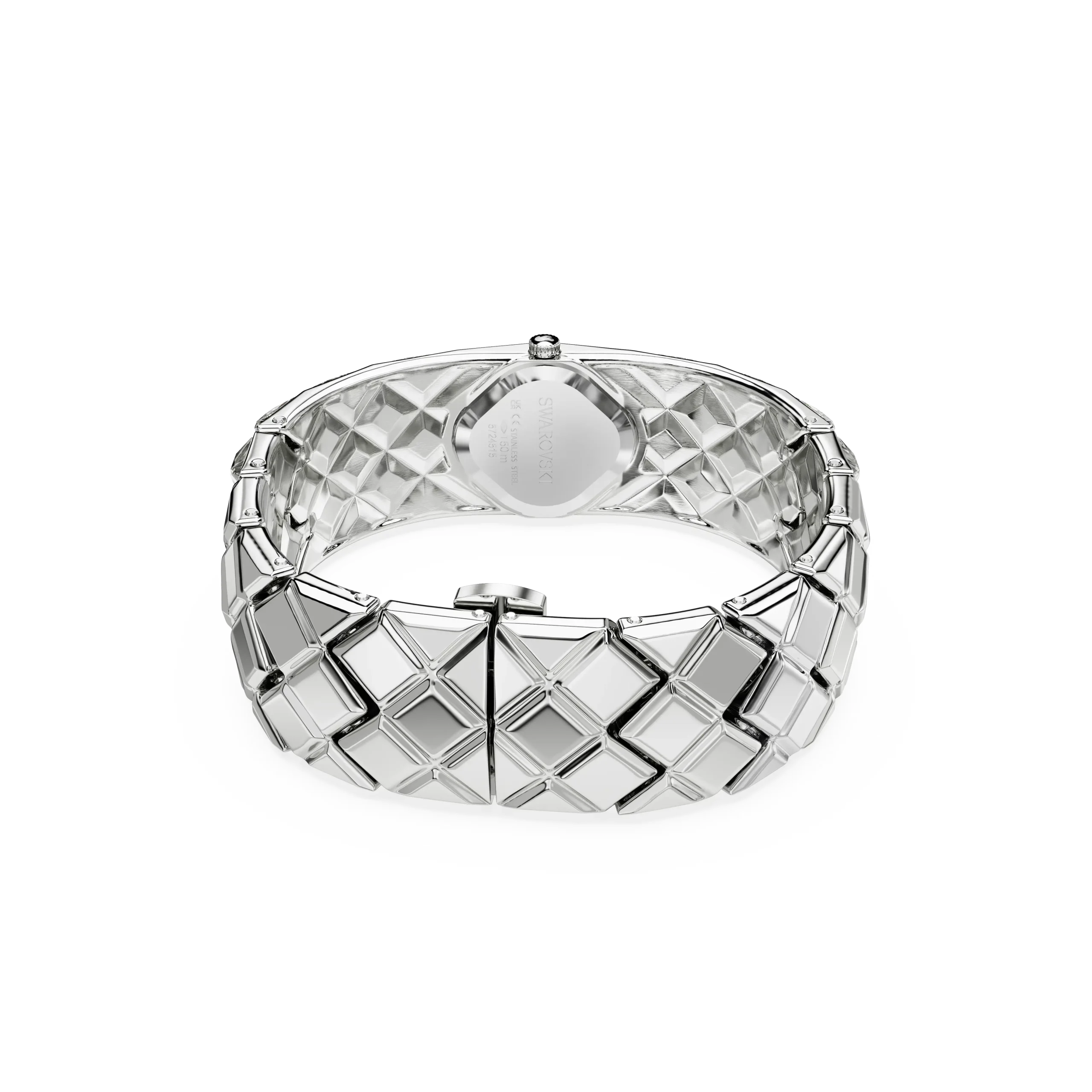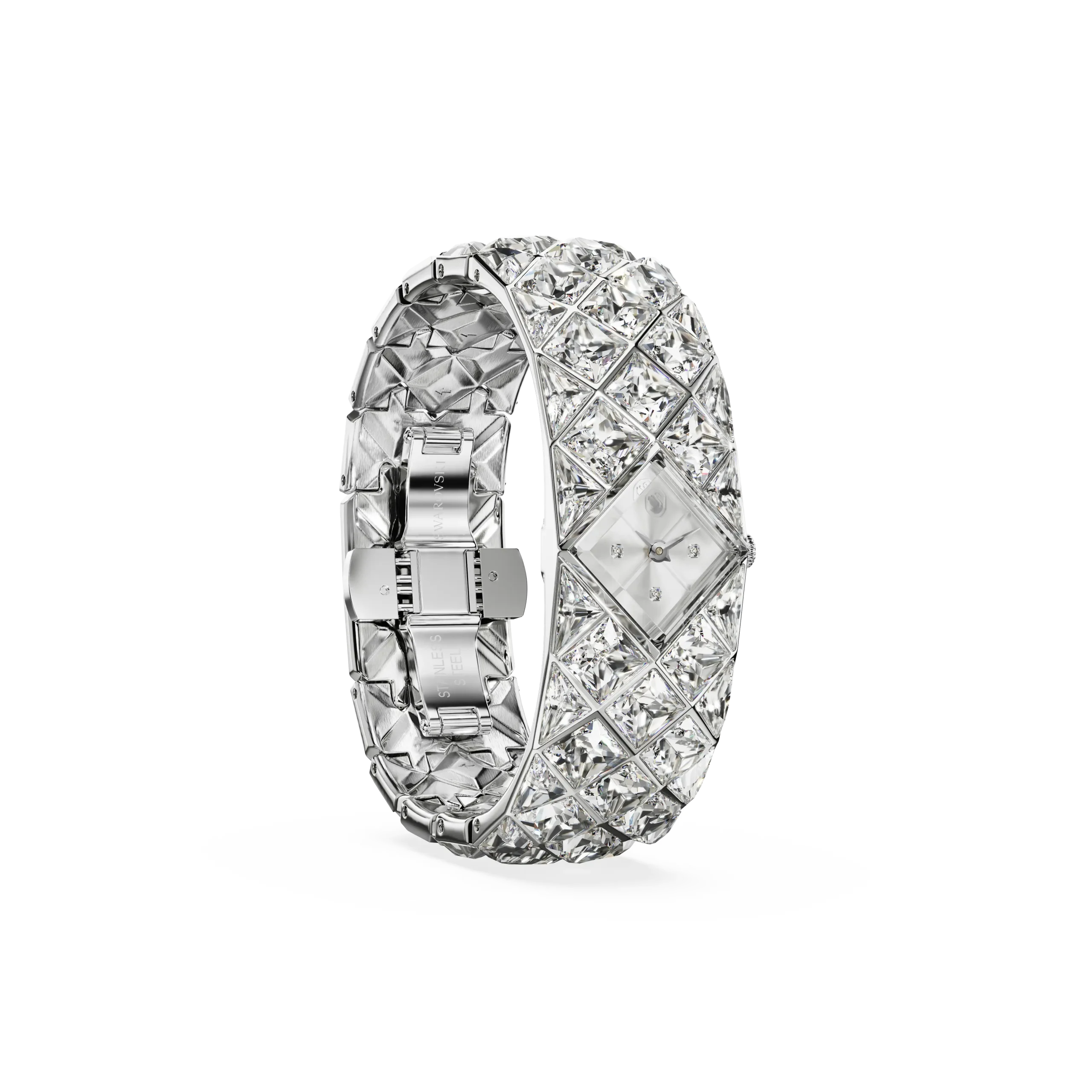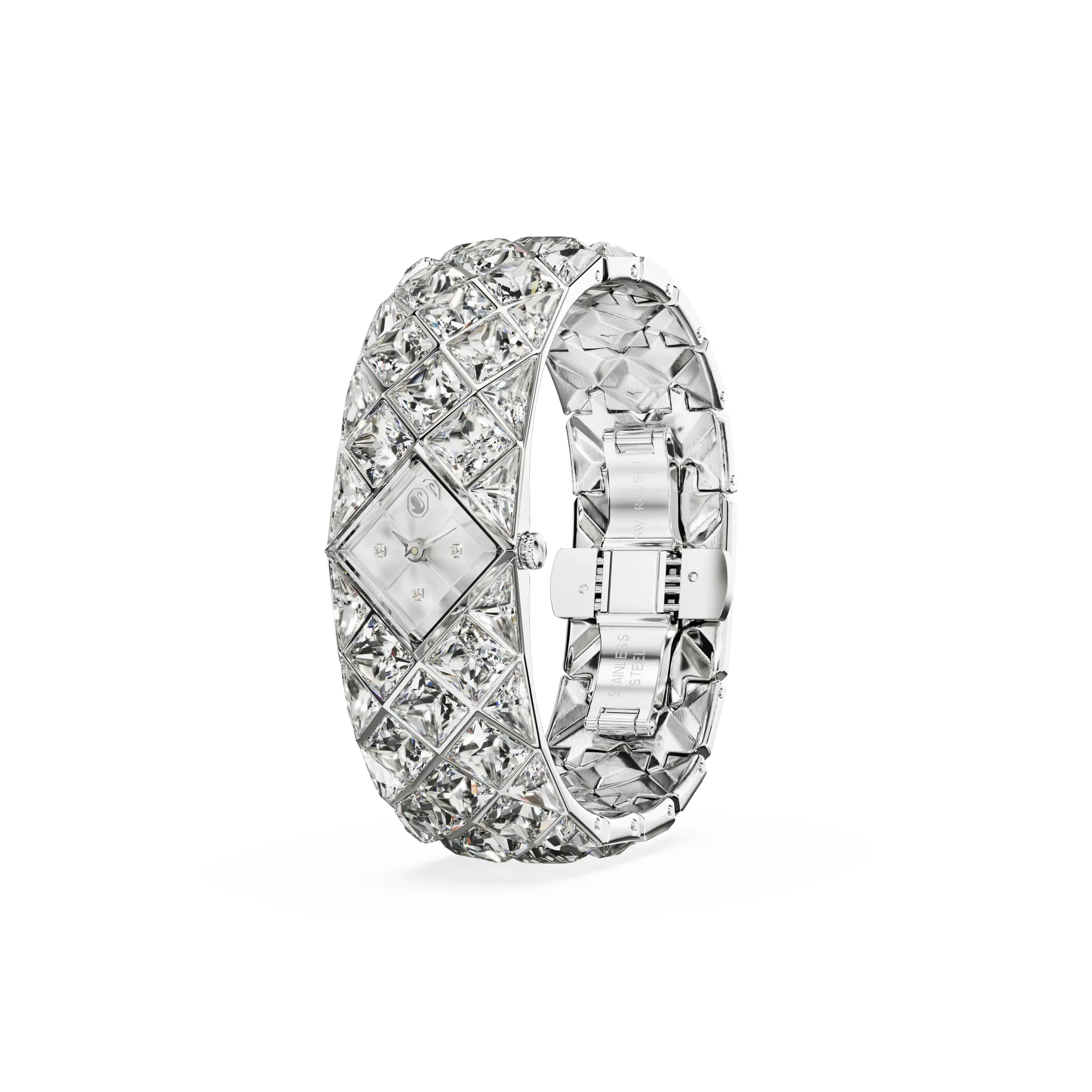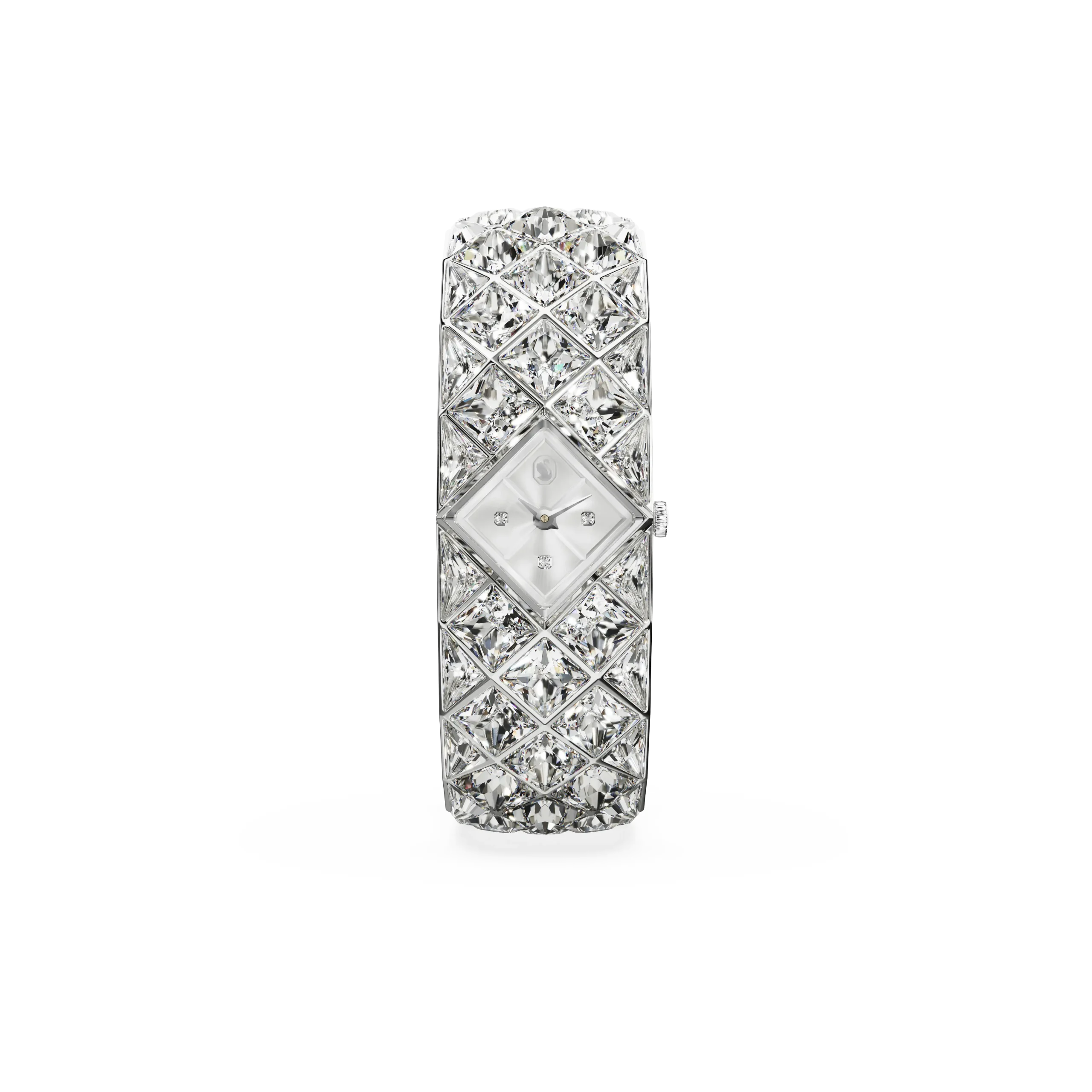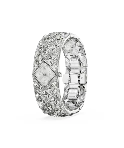 With a total of 47 crystals,the luxurious spirit of Curiosa is beautifully expressed in this bangle-style timepiece,which showcases Swarovski’s heritage and savoir-faire. The stainless steel design is a vintage-era tribute,featuring a 20mm (w) x 20.5mm (l) case that sits neatly within a stunning bracelet set with triangle- and fancy-cut crystals. The dial also includes crystals at the quarter hour markers. A glowing accessory for your most sophisticated occasions,this watch is water resistant to 50 meters and reveals the iconic Swan logo at 12 o’clock.