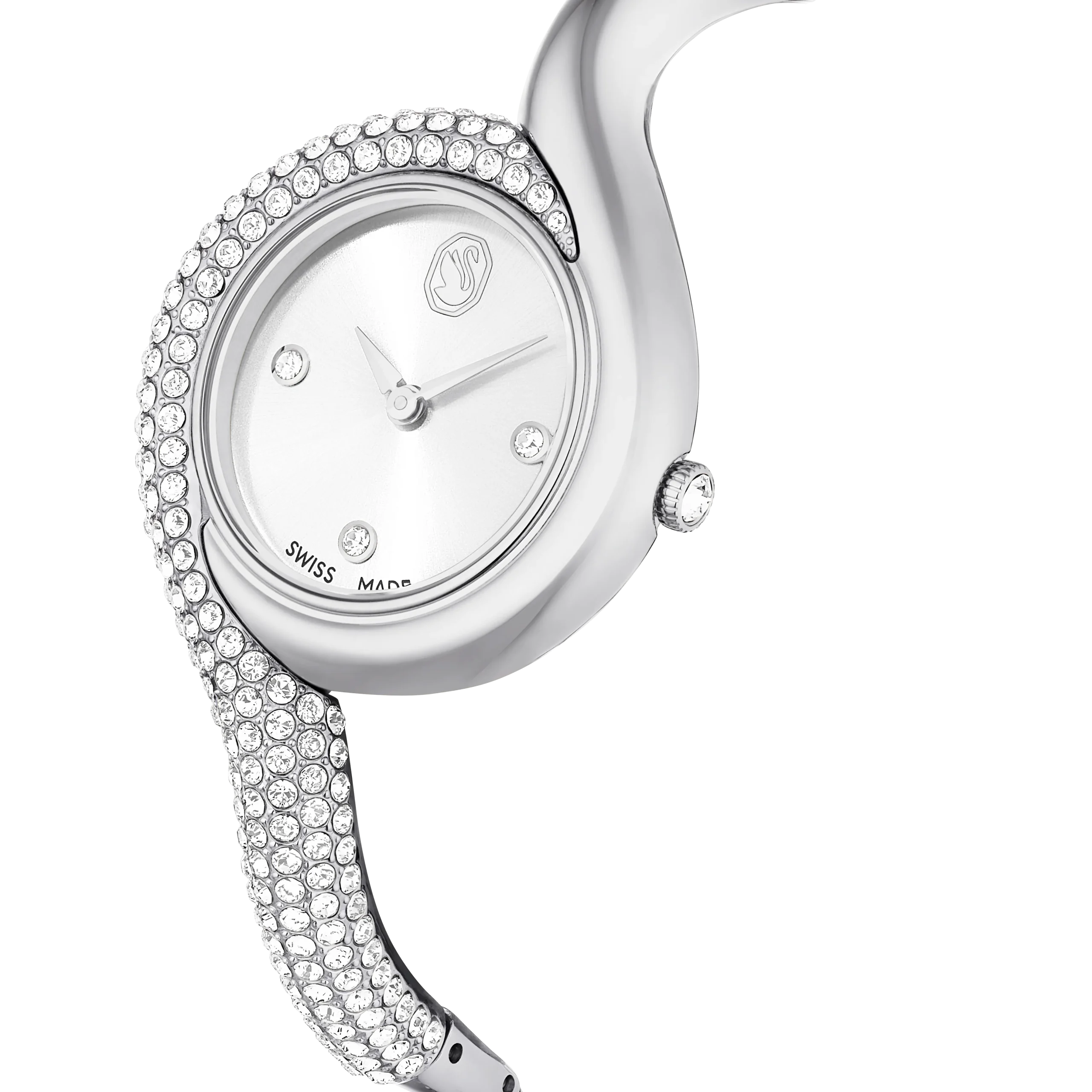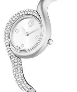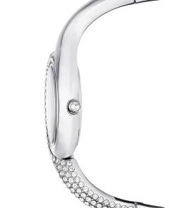 This captivating Dextera watch takes its cues from the classical timepieces of a vintage era. The 29mm stainless steel design is creatively embellished with a pavé of clear crystals over half the bezel,as well as half the bracelet. The minimalist dial features a sunray effect and is accented only with three crystal hour markers and a swan logo at 12 o’clock. A total of 203 crystals are used in the creation of this timepiece,including the single crystal that is placed within the crown. This Swiss made watch is water resistant to 50 meters and is a pure expression of Swarovski sophistication.