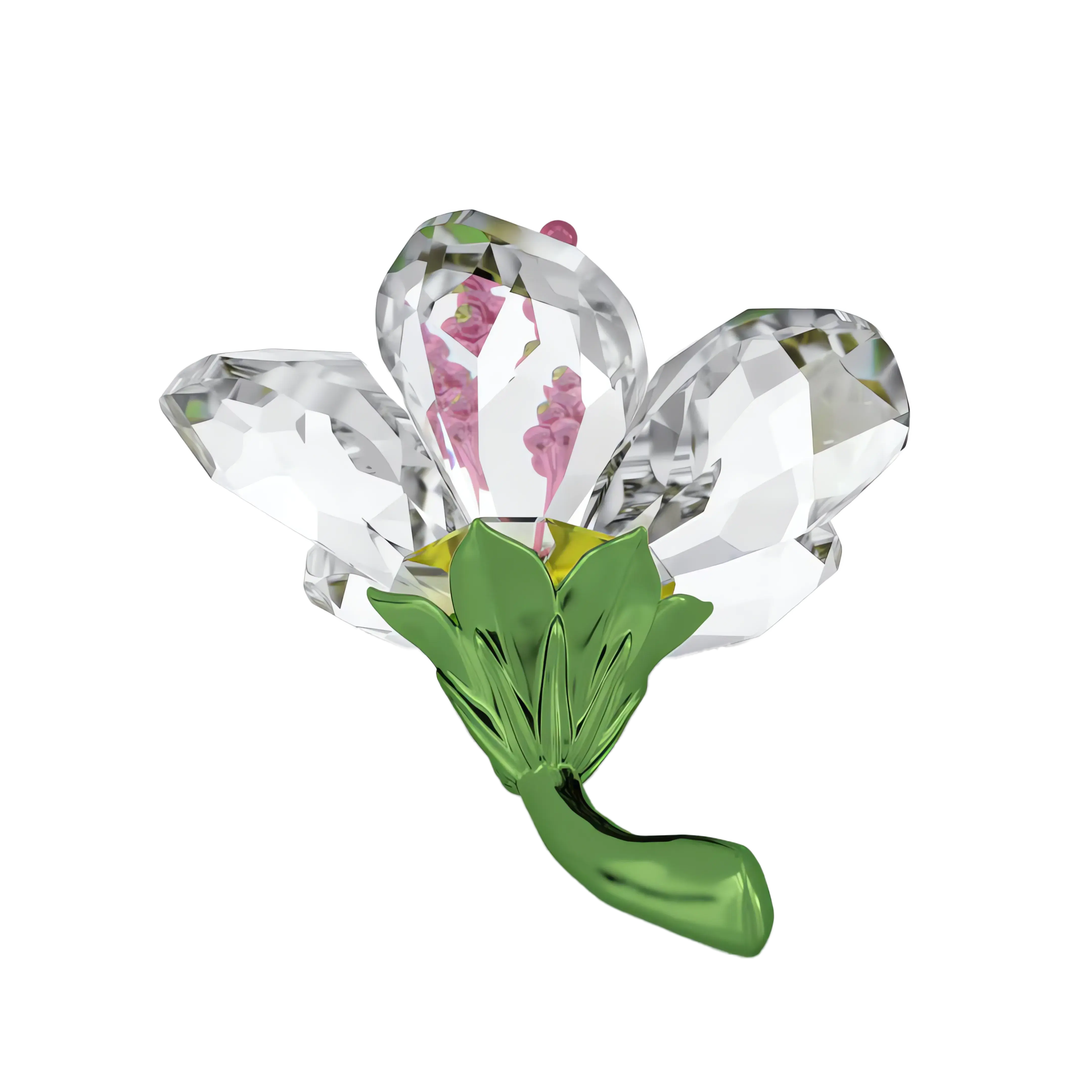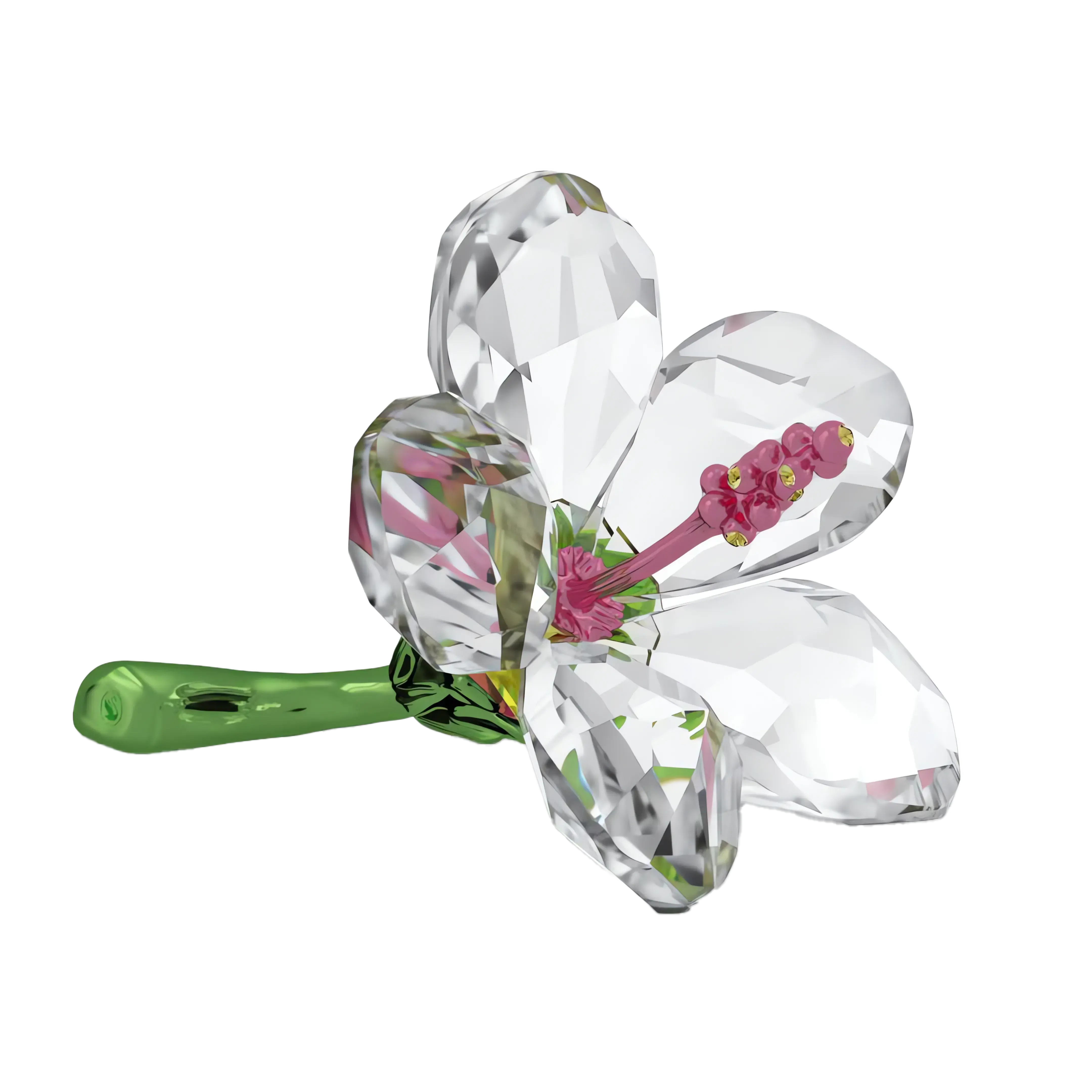 This small yet radiant Hibiscus flower perfectly captures the delicate beauty of nature. The design is crafted with 448 facets and features clear petals with a green metal stem and pink metal pistil. It’s a wondrous gift for someone special,or a tropical touch to your own home décor that will forever stay in bloom. Decoration object. Not a toy. Not suitable for children under 15.