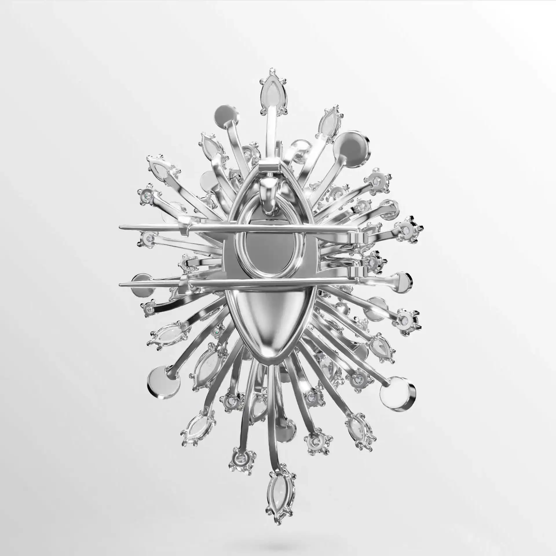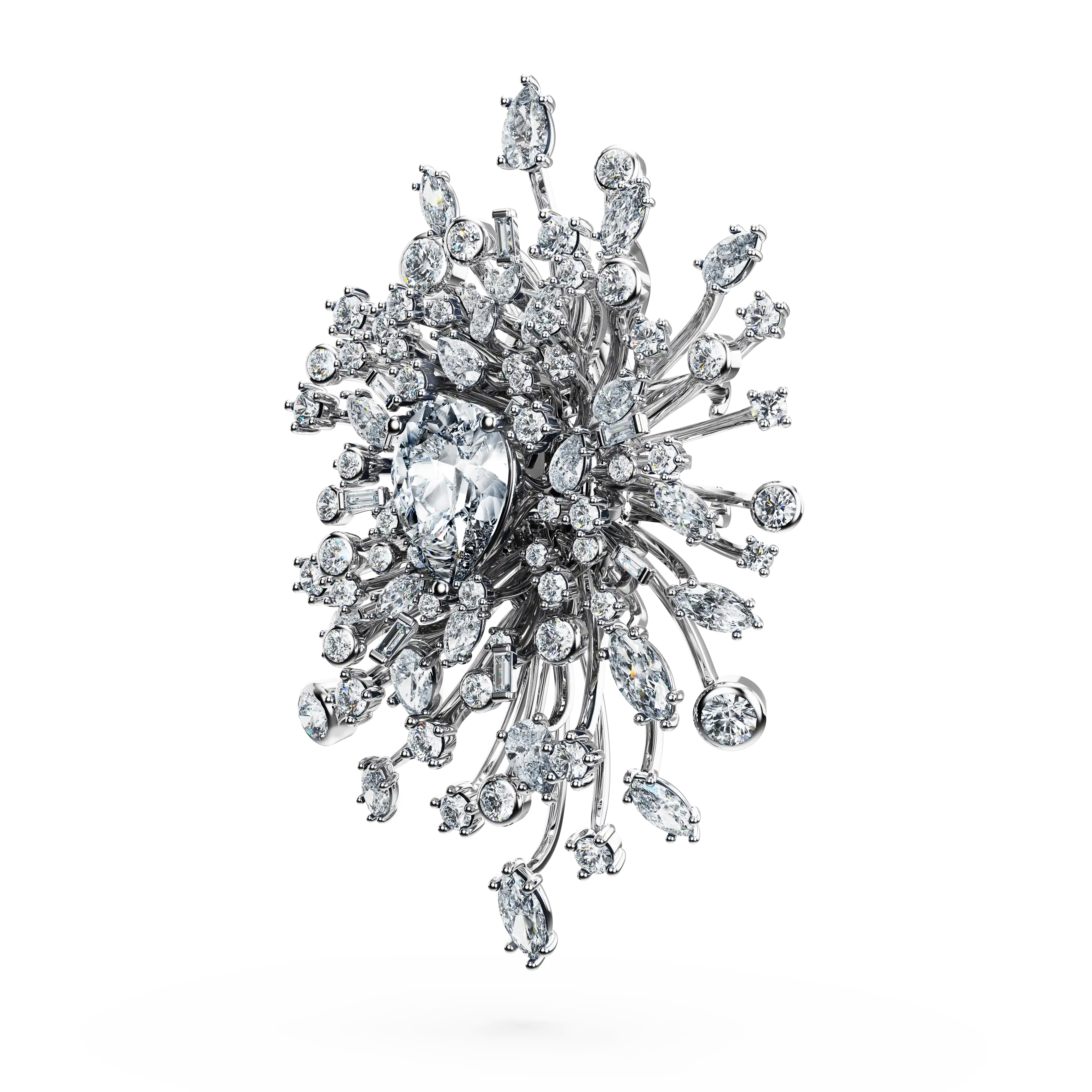 Like a collision of stars in a light-filled galaxy,this dramatic brooch explodes with wondrous beauty. The 18K white gold design features a multitude of laboratory grown diamonds,presented in a variety of shapes and sizes,and extending out in different directions. The overall effect is one of scintillating joy. Wear this piece to inject any outfit with a spellbinding display of Swarovski savoir-faire. This jewelry is part of the Galaxy collection created by Giovanna Engelbert. The laboratory grown diamonds in the Galaxy collection are graded and certified by IGI (International Gemological Institute) according to the 4Cs of diamond quality. This piece is made to order.