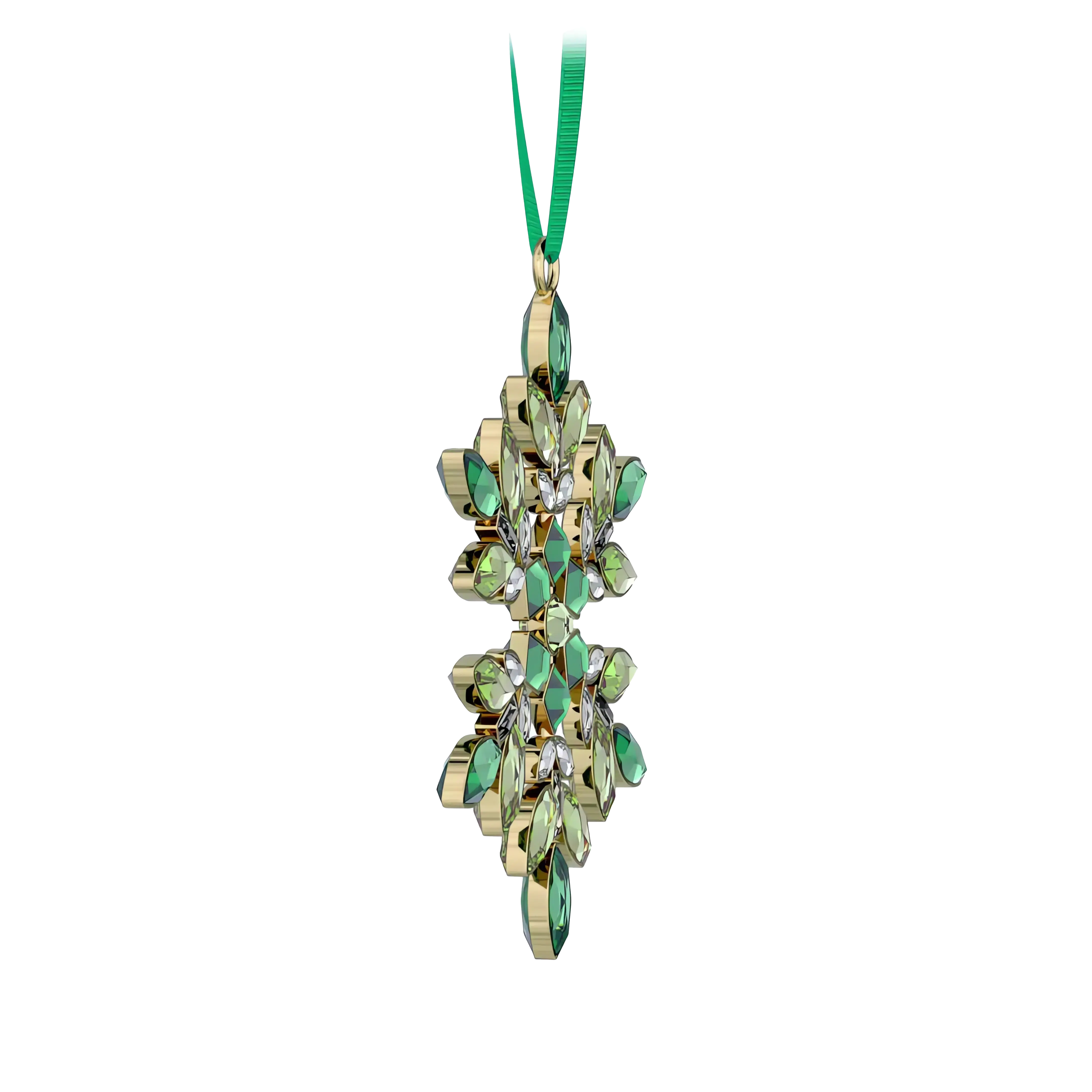 Inspired by the vibrant Gema family,this collection of radiant snowflake ornaments is presented in Swarovski brand colors with a nod to the holiday season. This green piece is formed from 86 individual crystals in a variety of cuts and shades,applied on both sides using jewelry stone setting techniques. The design is suspended from a green grosgrain ribbon and is completed with a glossy gold-tone finish. Collect all four of the Gema snowflake ornaments to create a joyful multicolored display in your home. Decoration object. Not a toy. Not suitable for children under 15.
