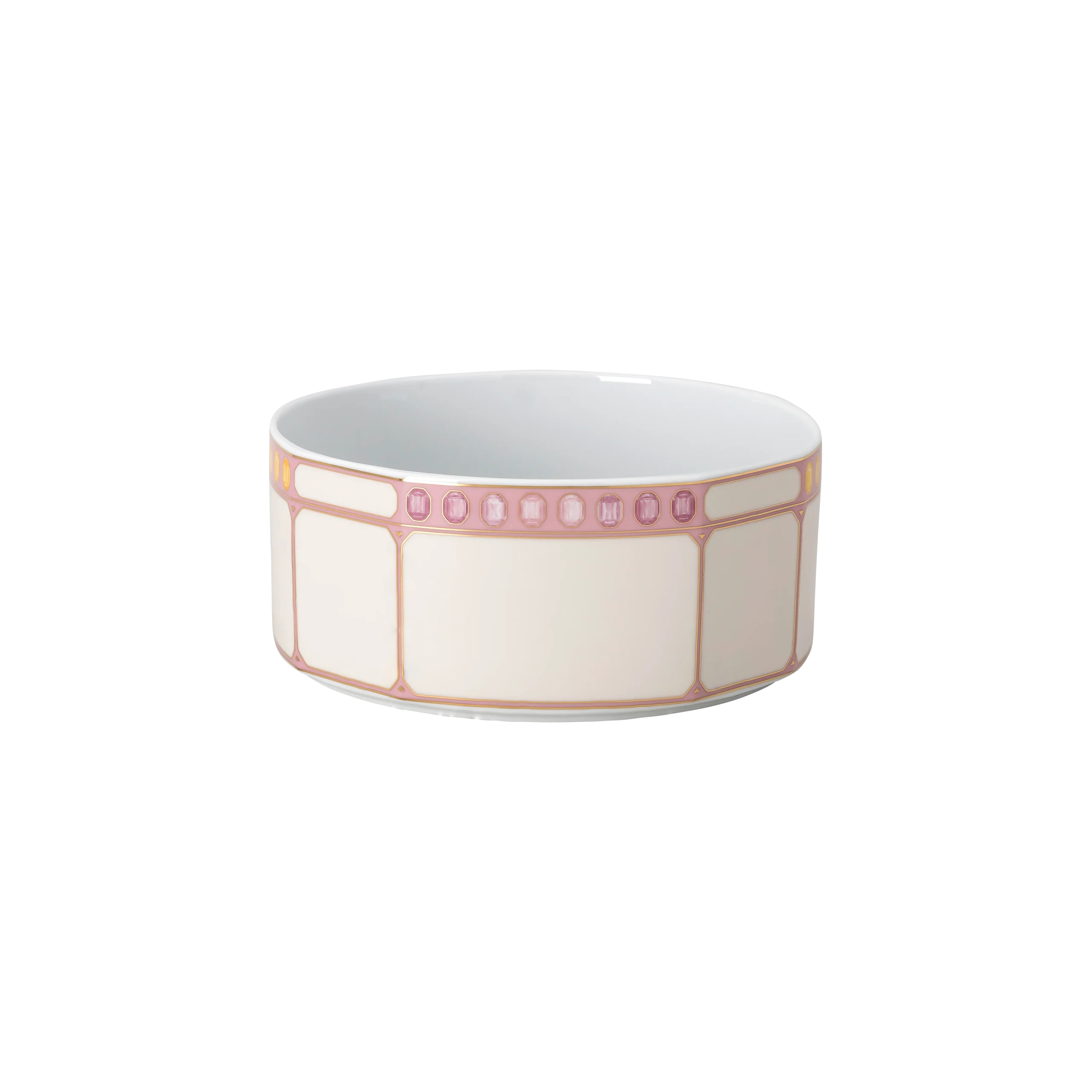 Add a luxurious twist to your table presentation with this small Idyllia bowl in pink and marshmallow. Using an exclusive technique,the faceted porcelain design is printed with a blossoming lemon motif on each side that captures the essence and radiance of crystals. Created in partnership with porcelain brand Rosenthal,it is further decorated with fine gold-tone lines,giving you a beautiful way to elevate a tablescape. This small bowl is dishwasher safe,but not suitable for use in a microwave.