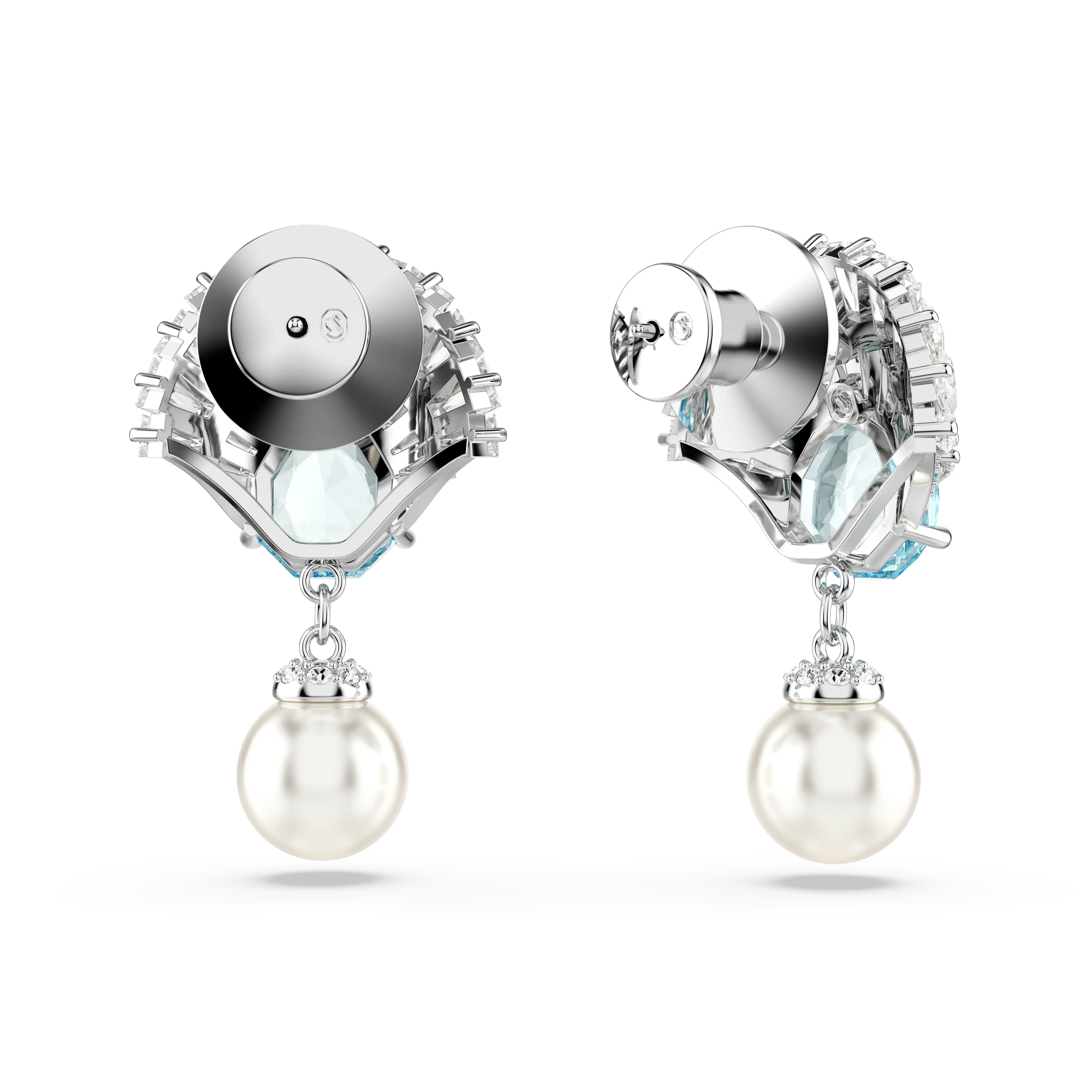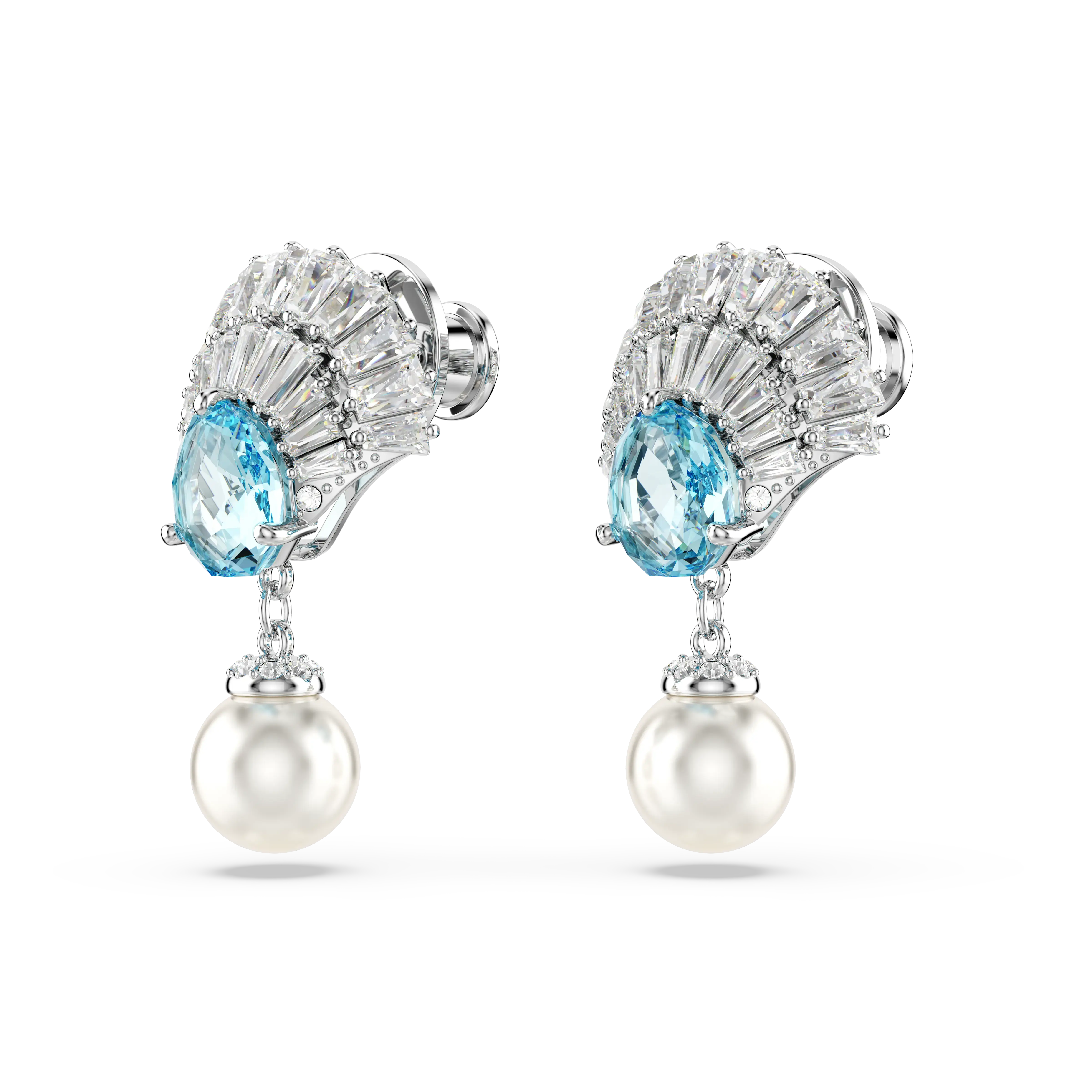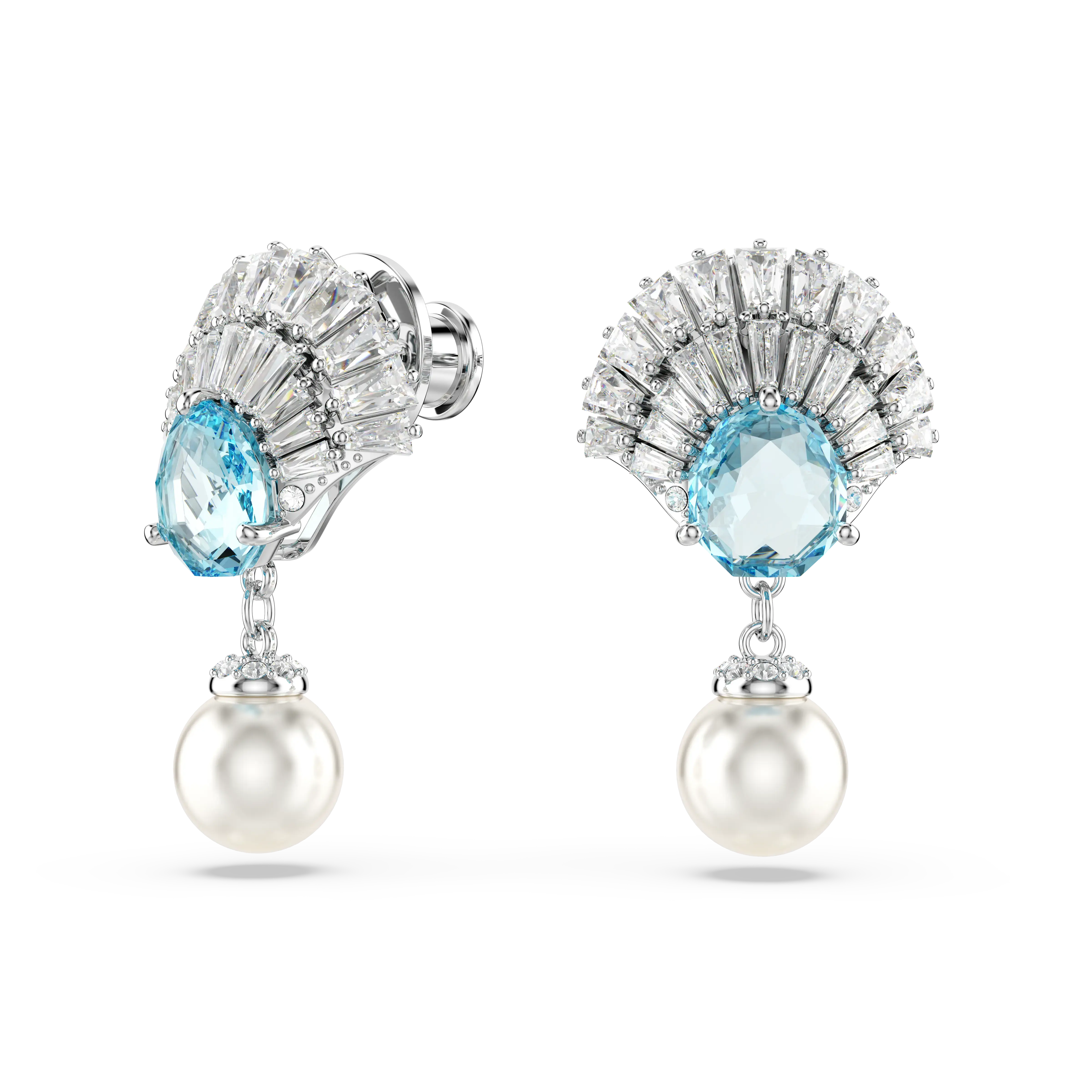 Idyllia drop earrings Crystal pearl/Shell/Blue/Rhodium plated