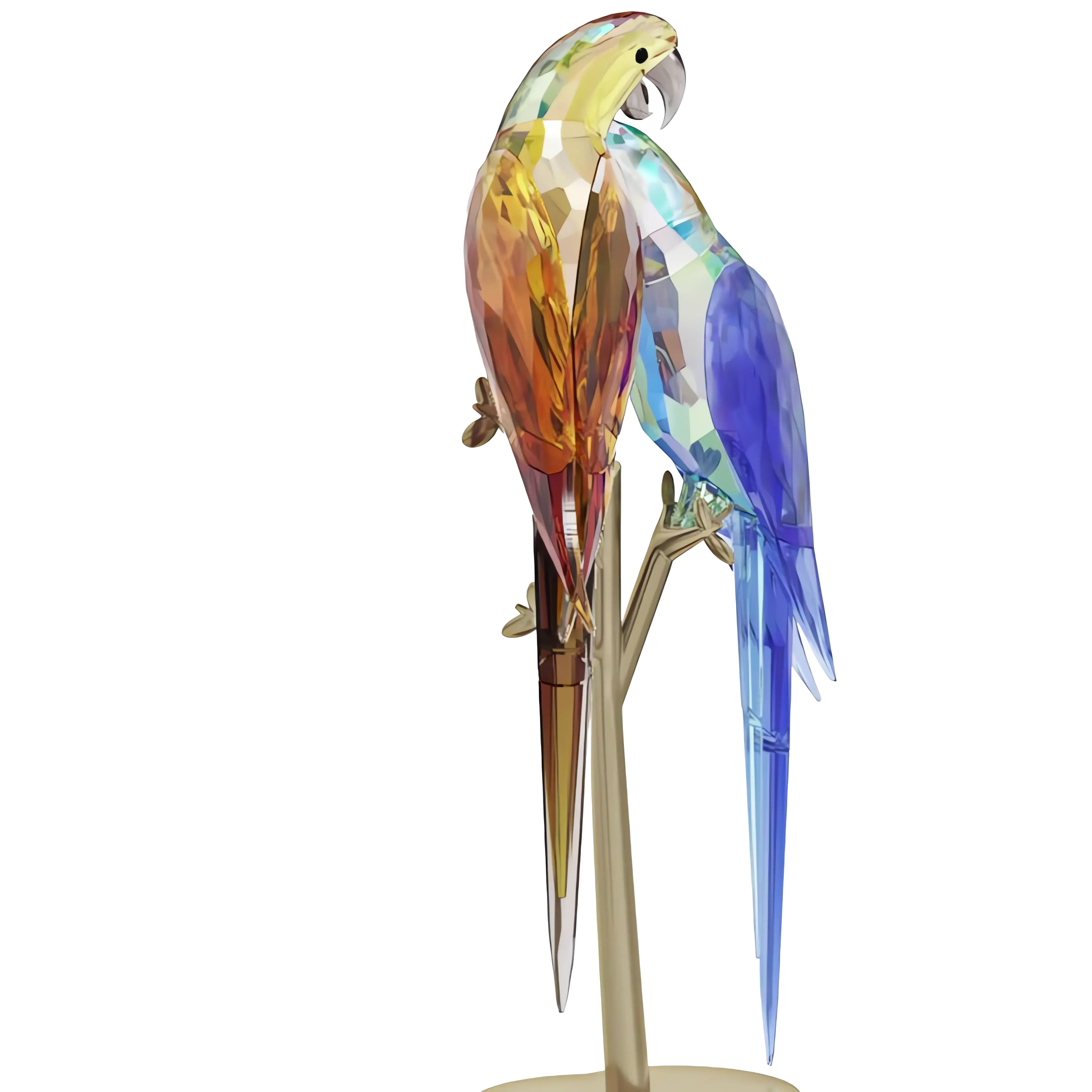 Liven up any space with this stunning pair of Macaws. Reflecting the vibrant color variations of this species,Bell and Brio shimmer in shades of yellow,orange,green,and blue crystal,with 872 facets in total. A modern brushed champagne-gold tone metal base completes this spectacular nature-inspired design. Full of color and warmth,it would make an eye-catching addition to any interior. Mix and match with other Jungle Beats pieces for added impact. Decoration object. Not a toy. Not suitable for children under 15.
