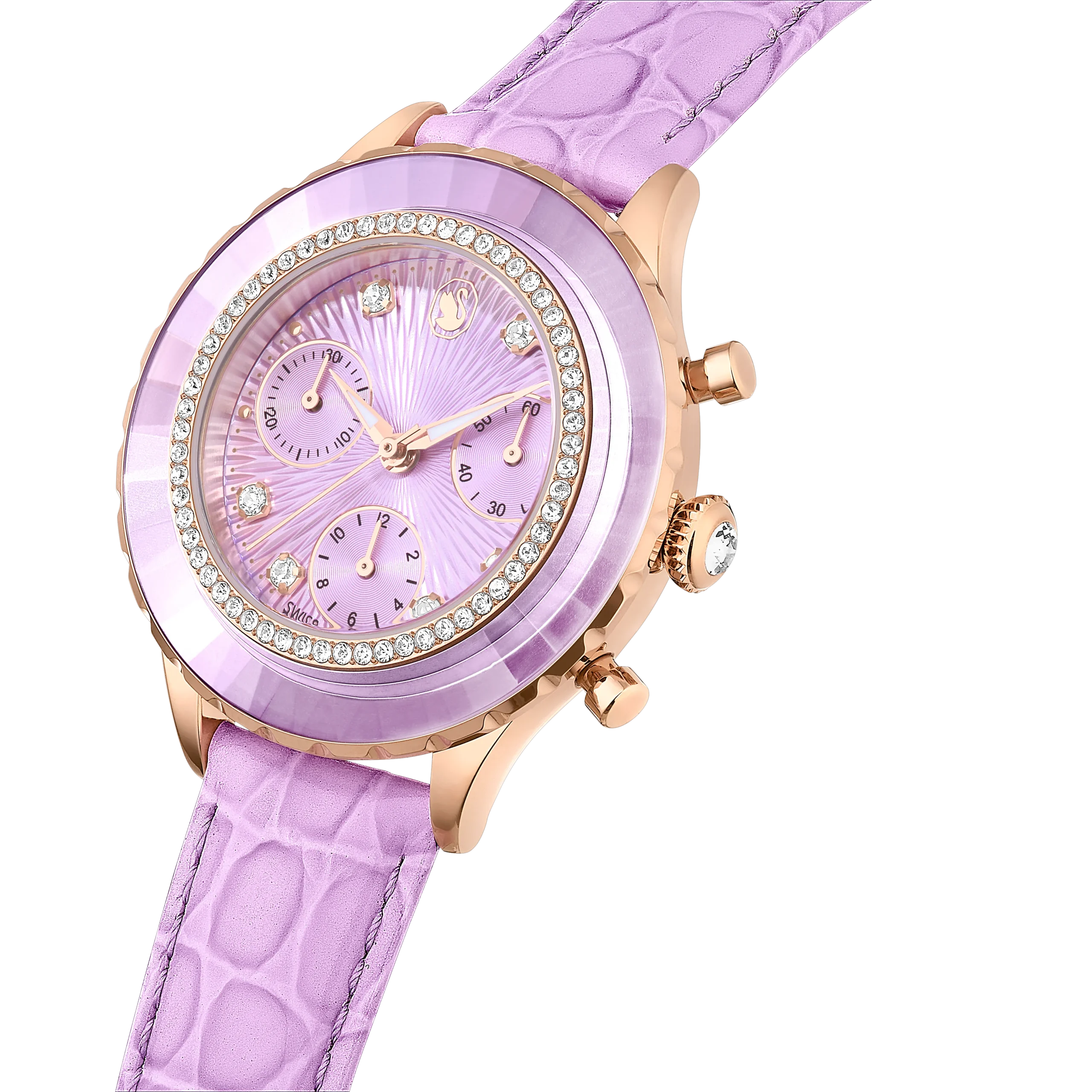 Octea Chrono watch Swiss Made/Leather strap/Purple/Rose gold-tone finish