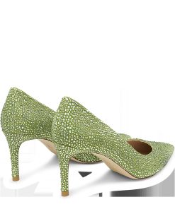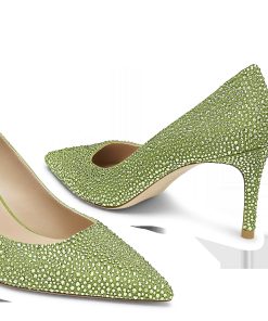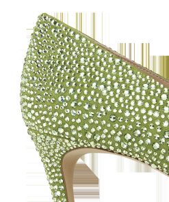 This limited-edition STUART POWER SHINE pump,created in collaboration with the Swarovski Creators Lab,delivers a high-shine,high-glam take on the new icon,the STUART POWER 75 pump. Meticulously crafted by expert artisans in Spain,each pair is adorned with over 6,000 green Swarovski pavé crystals. The silhouette features a modernized construction for maximum style and comfort,including a reworked 75mm stiletto heel set on a subtle angle for extra support. Make every step striking in this dazzling pump.