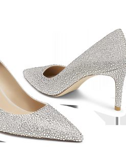 This limited-edition STUART POWER SHINE pump,created in collaboration with the Swarovski Creators Lab,delivers a high-shine,high-glam take on the new icon,the STUART POWER 75 pump. Meticulously crafted by expert artisans in Spain,each pair is adorned with over 6,000 clear Swarovski pavé crystals. The silhouette features a modernized construction for maximum style and comfort,including a reworked 75mm stiletto heel set on a subtle angle for extra support. Make every step striking in this dazzling pump.