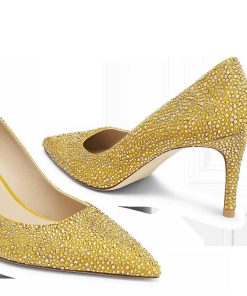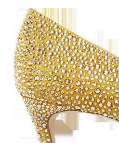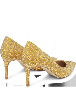 This limited-edition STUART POWER SHINE pump,created in collaboration with the Swarovski Creators Lab,delivers a high-shine,high-glam take on the new icon,the STUART POWER 75 pump. Meticulously crafted by expert artisans in Spain,each pair is adorned with over 6,000 yellow Swarovski pavé crystals. The silhouette features a modernized construction for maximum style and comfort,including a reworked 75mm stiletto heel set on a subtle angle for extra support. Make every step striking in this dazzling pump.