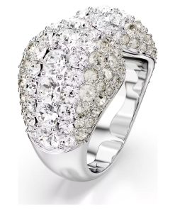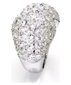 Dial up the glamour with this dazzling Sublima cocktail ring. The unique pavé design is rhodium plated and features a domed metal base that provides exceptional volume. The Meteora pattern of differently sized crystals adds to the mesmerizing effect. Pair this bold piece with matching Sublima earrings for a showstopping look.