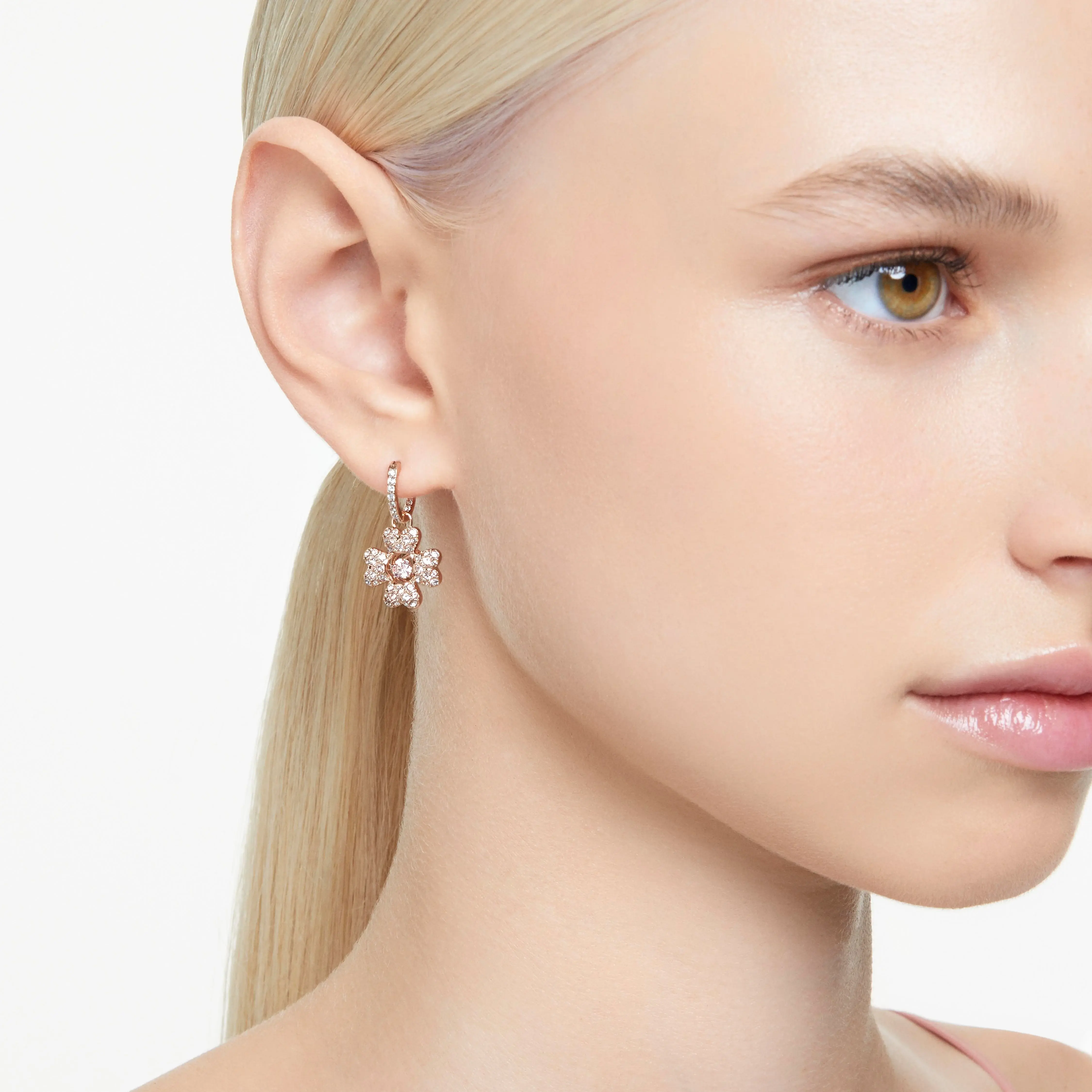Idyllia drop earrings Clover/White/Rose gold-tone plated