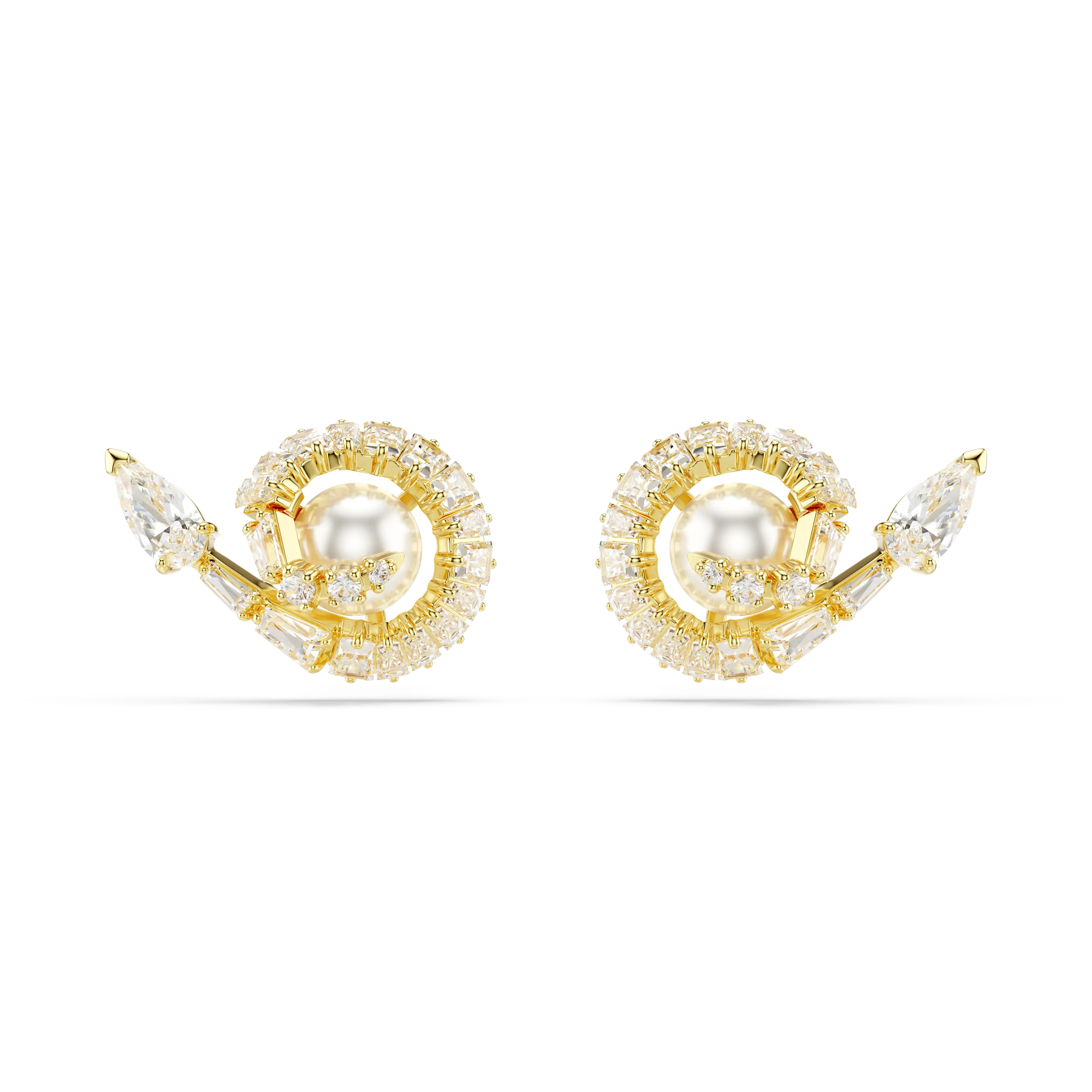 Snake stud earrings Crystal pearl/Mixed cuts/Year of the Snake/White/Gold-tone plated