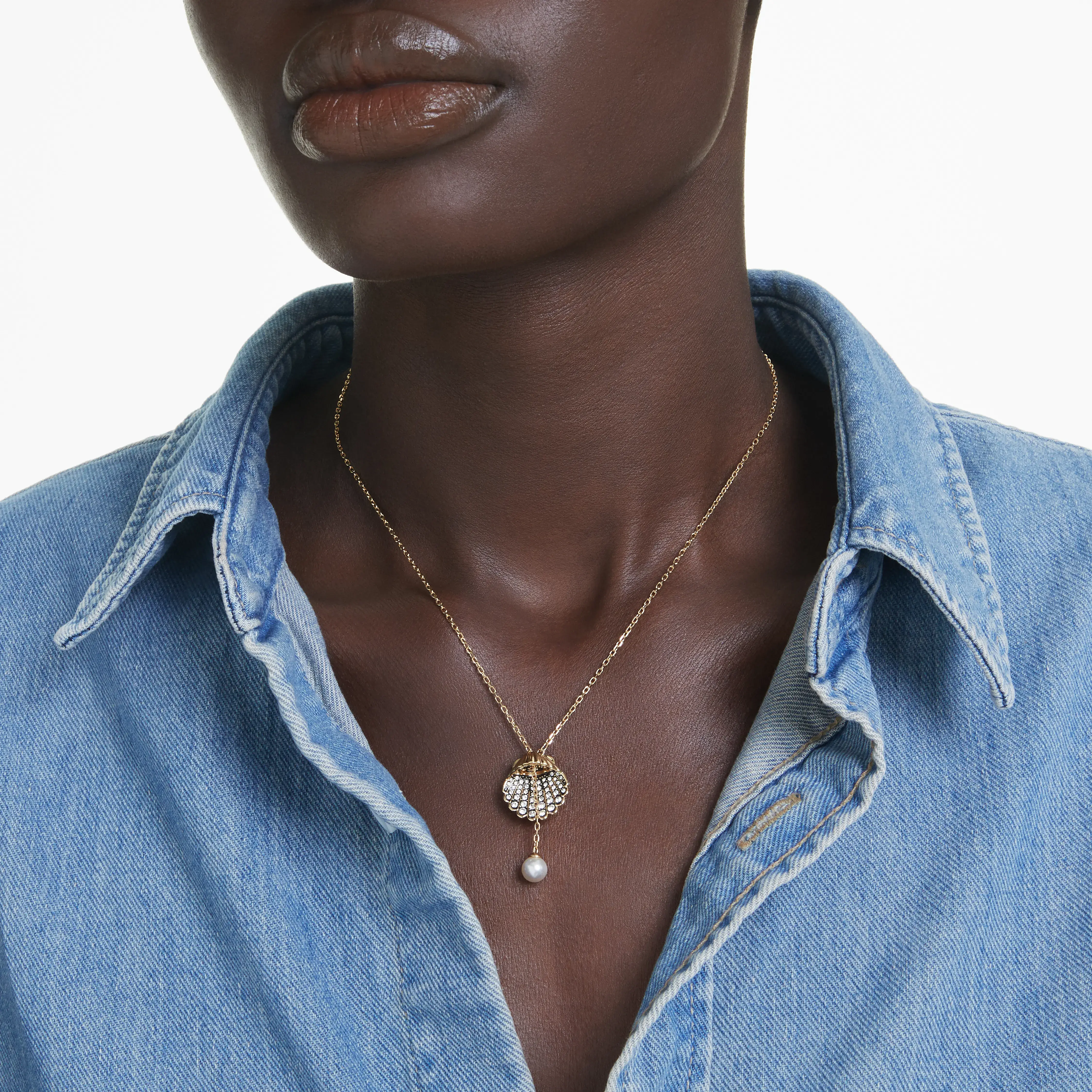 Idyllia Y pendant Crystal pearl/Shell/White/Gold-tone plated