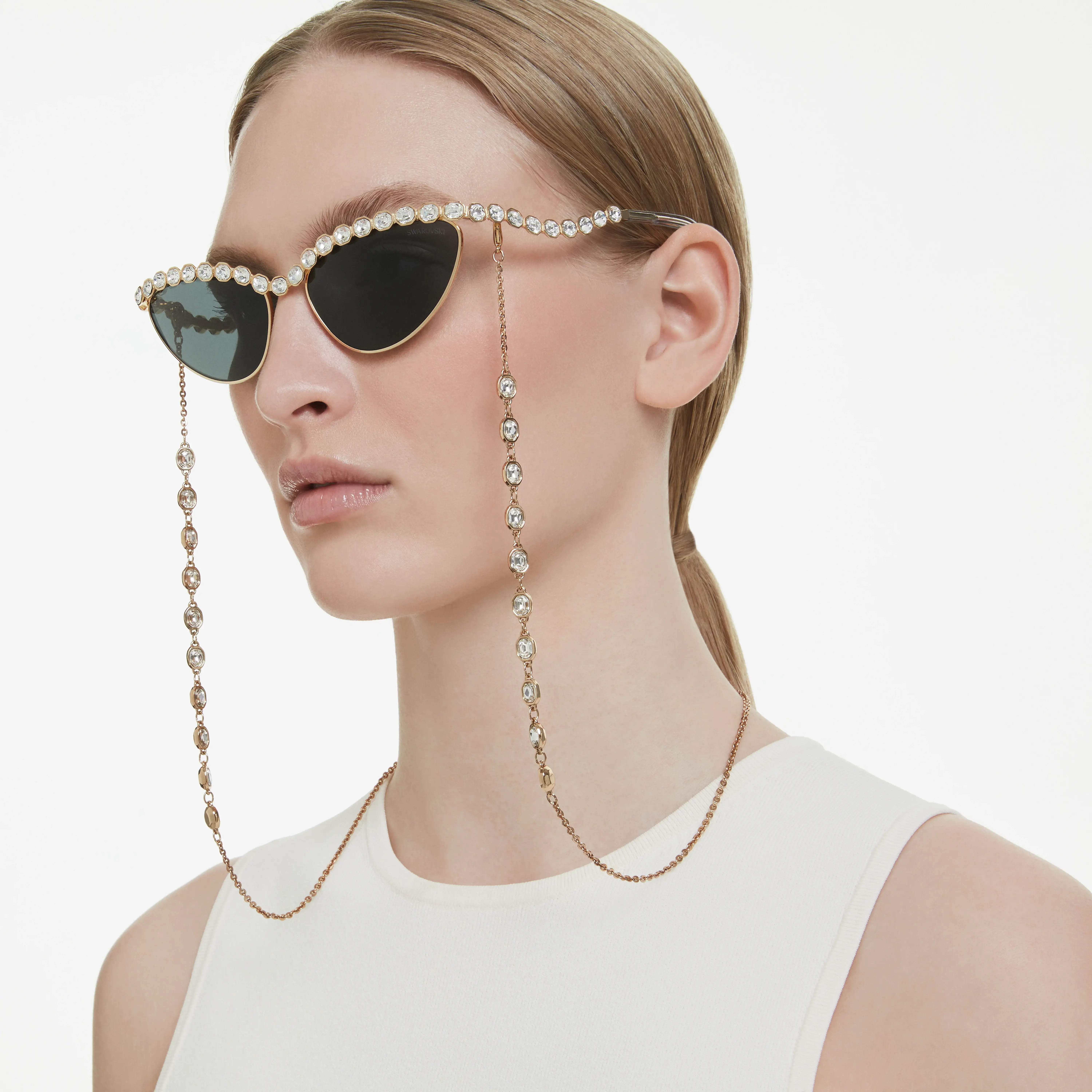 Sunglasses Cat-eye shape/Chain/Gray