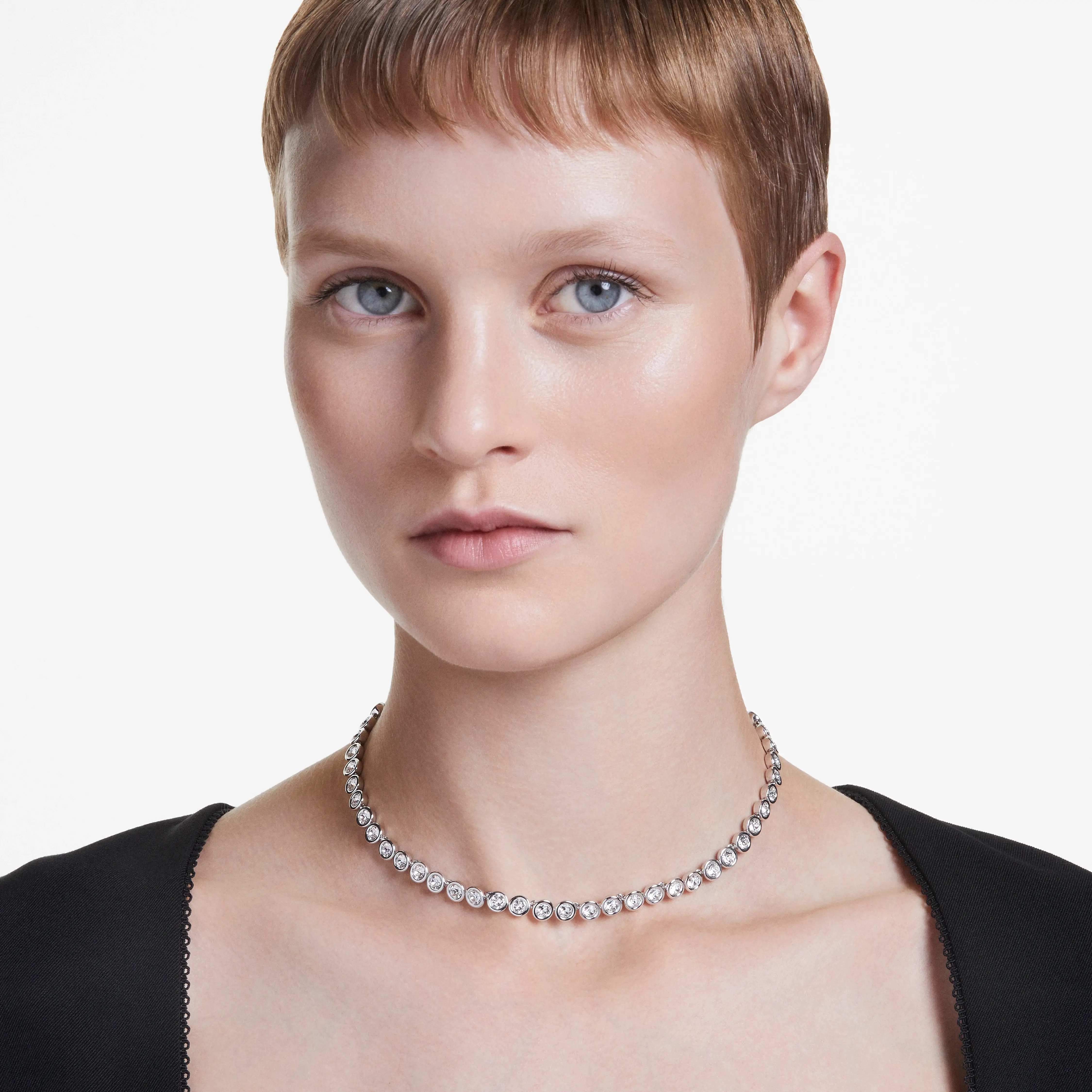Attract Y necklace Round cut/Blue/Rhodium plated
