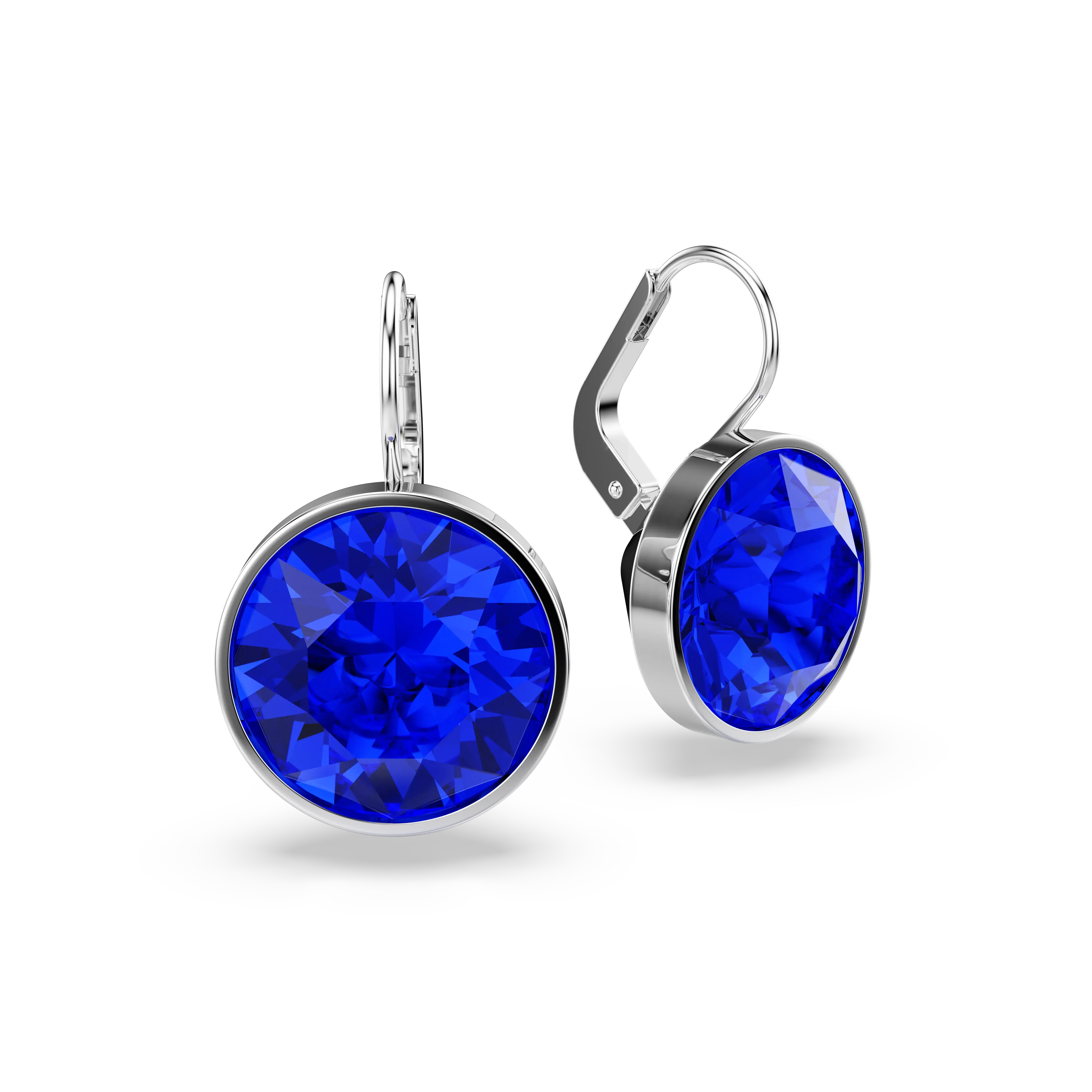 Bella drop earrings Round cut/Blue/Rhodium plated