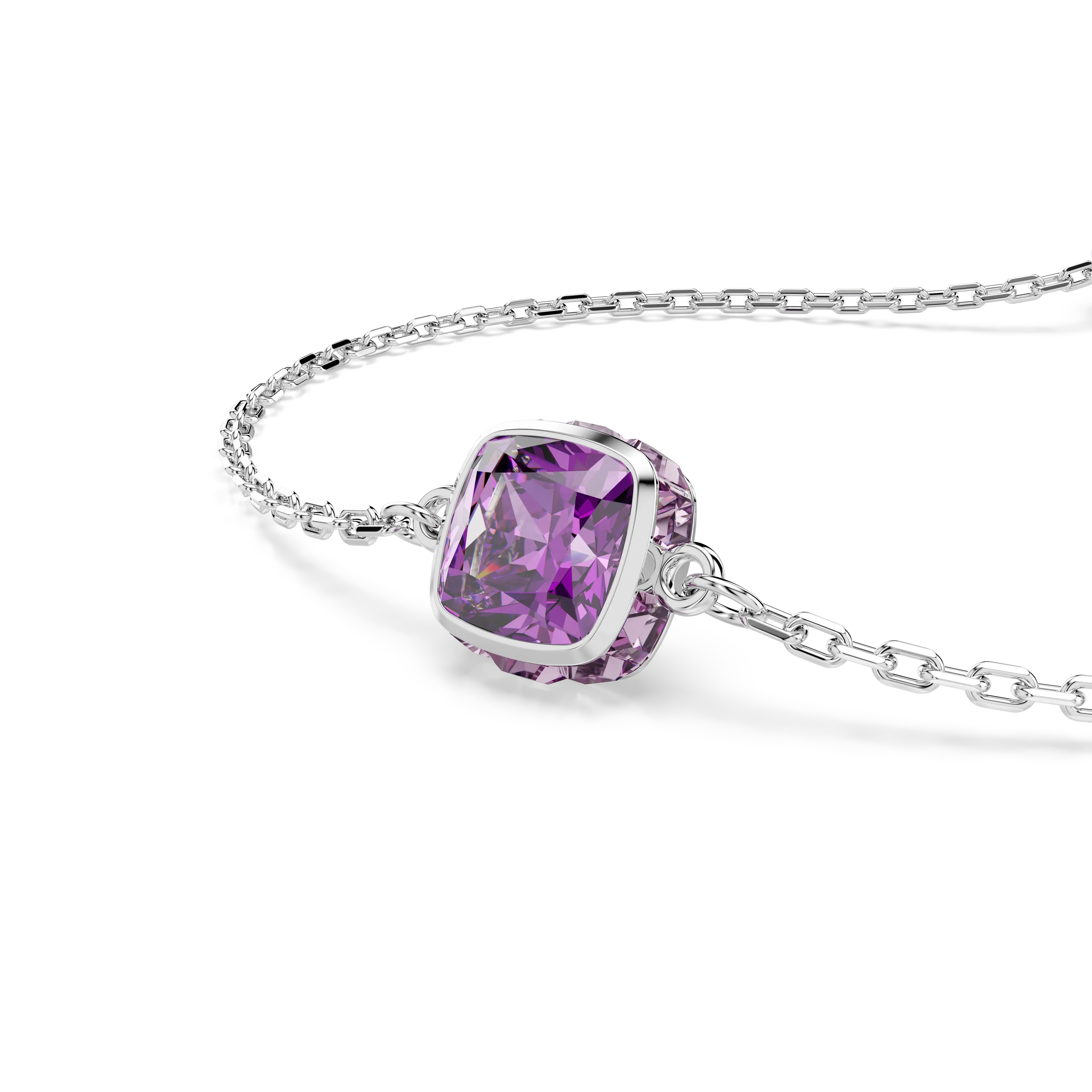 Birthstone bracelet Square cut/February/Purple/Rhodium plated