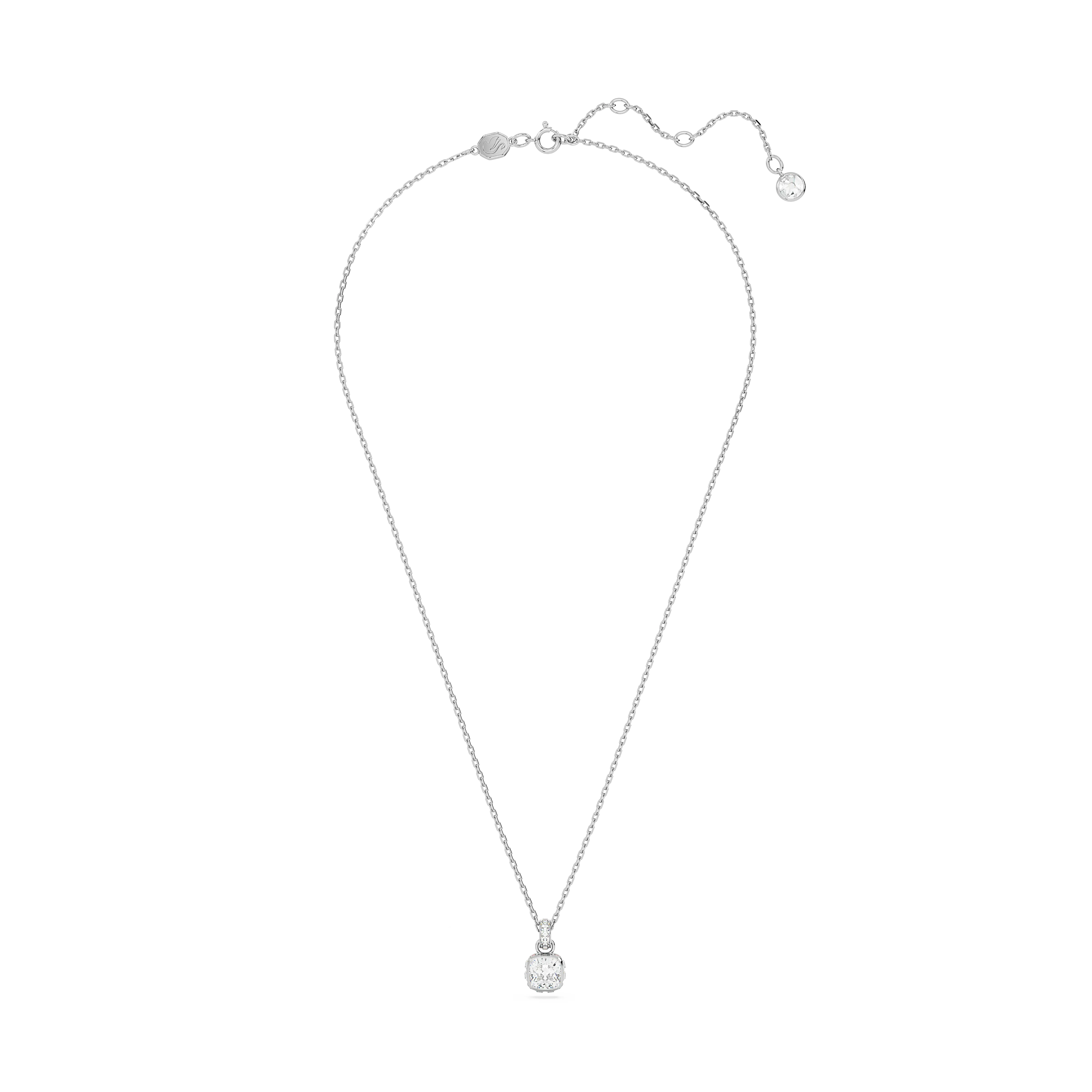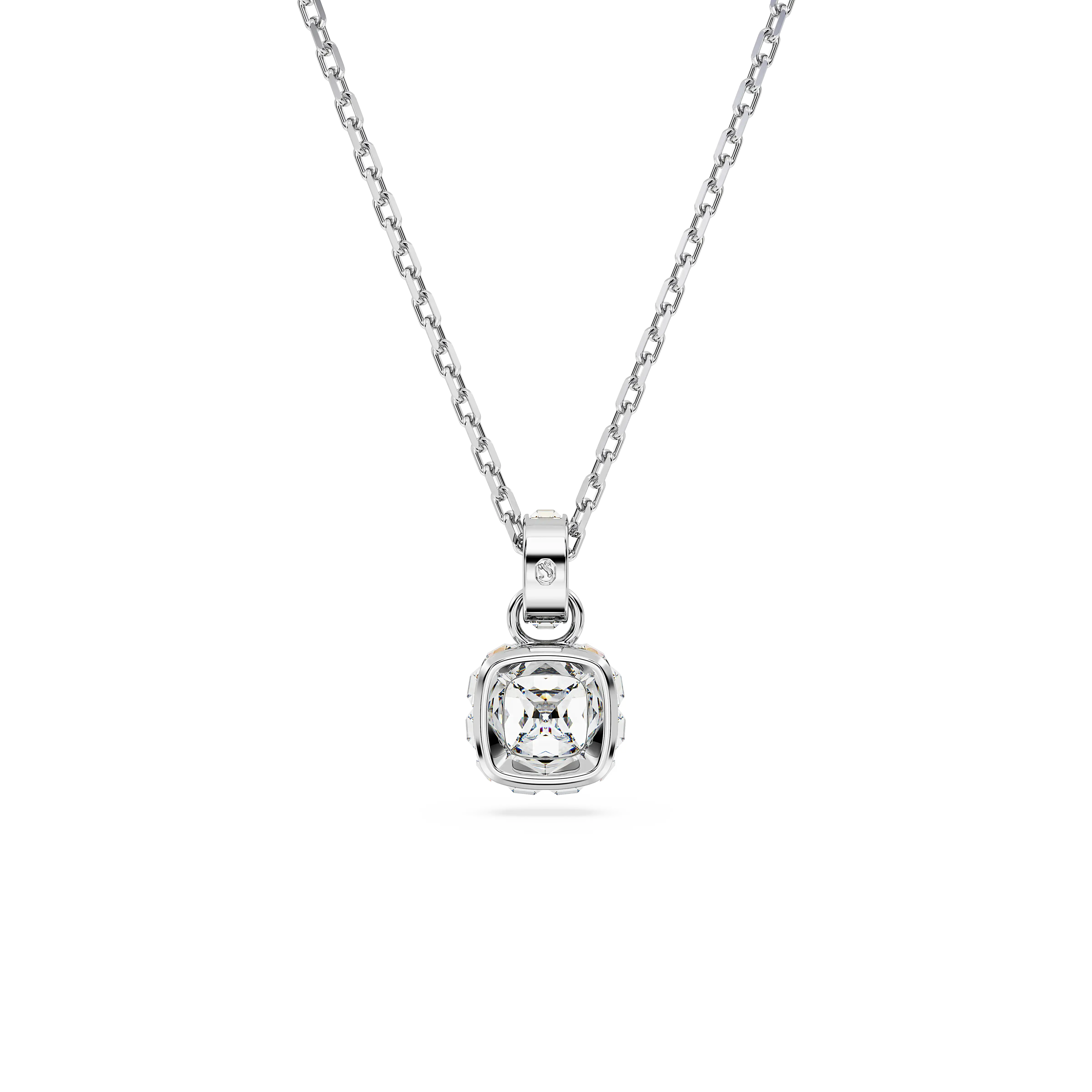 Birthstone pendant Square cut/April/White/Rhodium plated