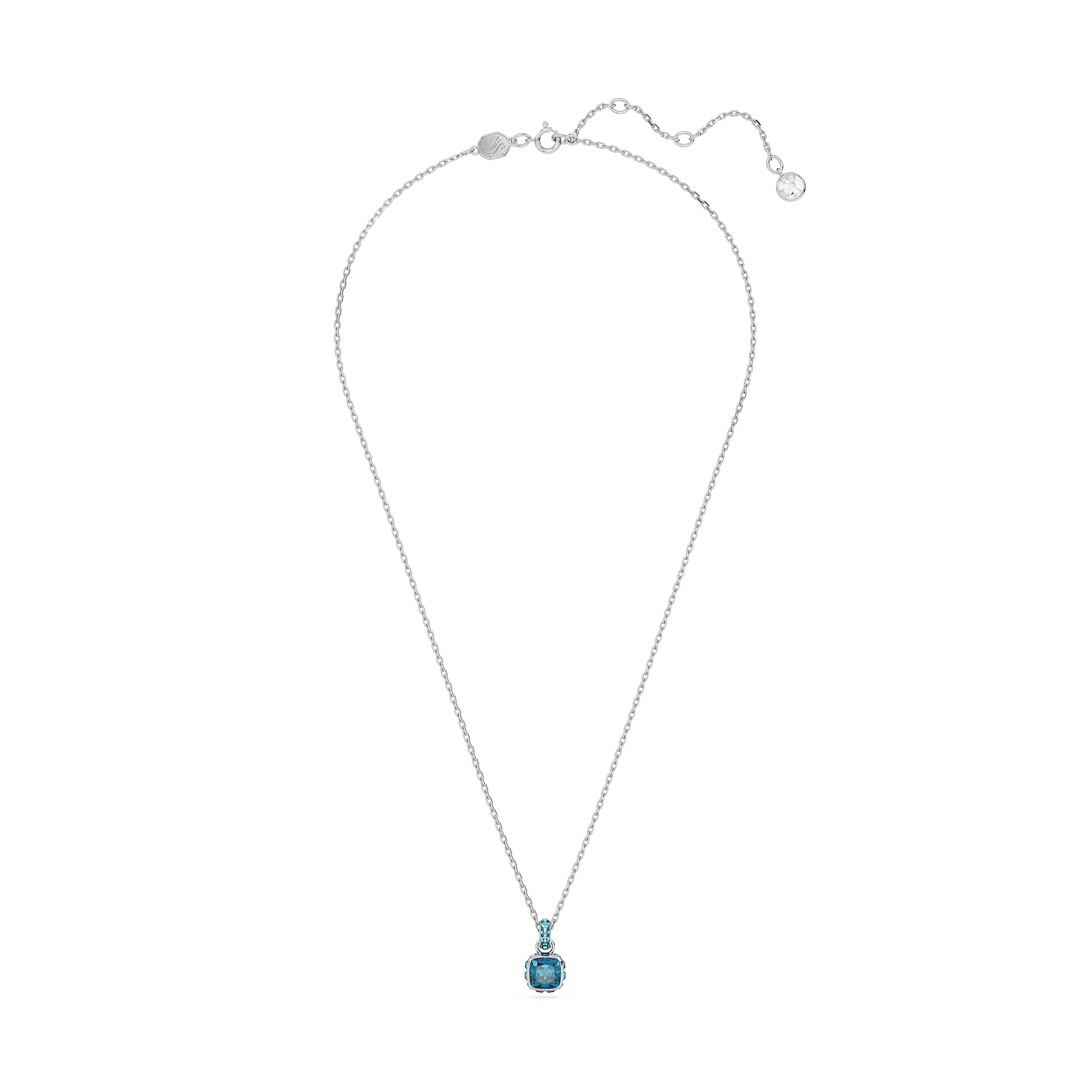 This delicate pendant is inspired by the birthstone of December. Hanging from a fine chain with a shimmering link of crystals,the rhodium plated jewelry features a single square-cut stone in a turquoise blue hue,a mesmerizing shade of good fortune and success. This meaningful design makes a magical birthday gift or can be worn to celebrate a time that is significant to you.