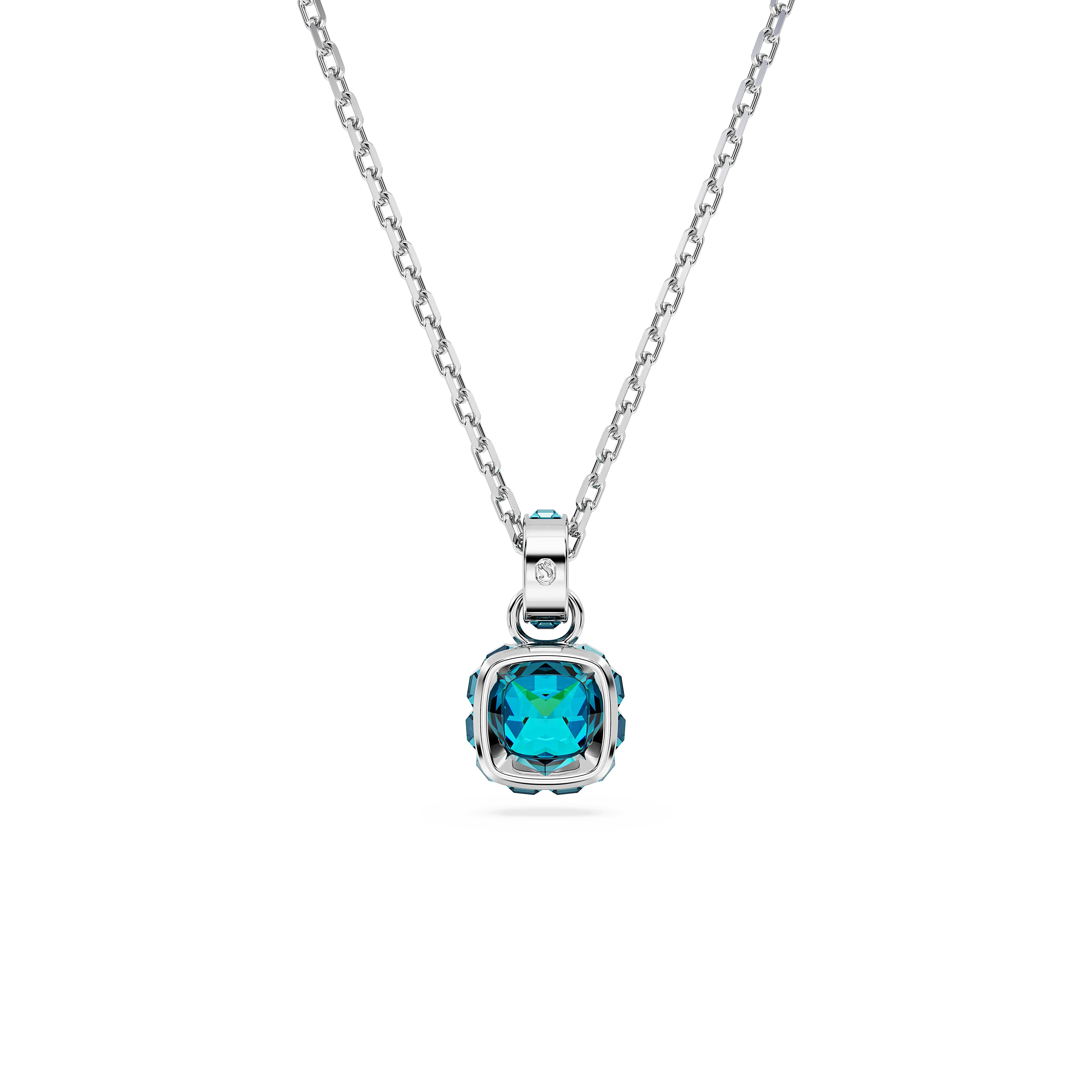 Birthstone pendant Square cut/December/Blue/Rhodium plated