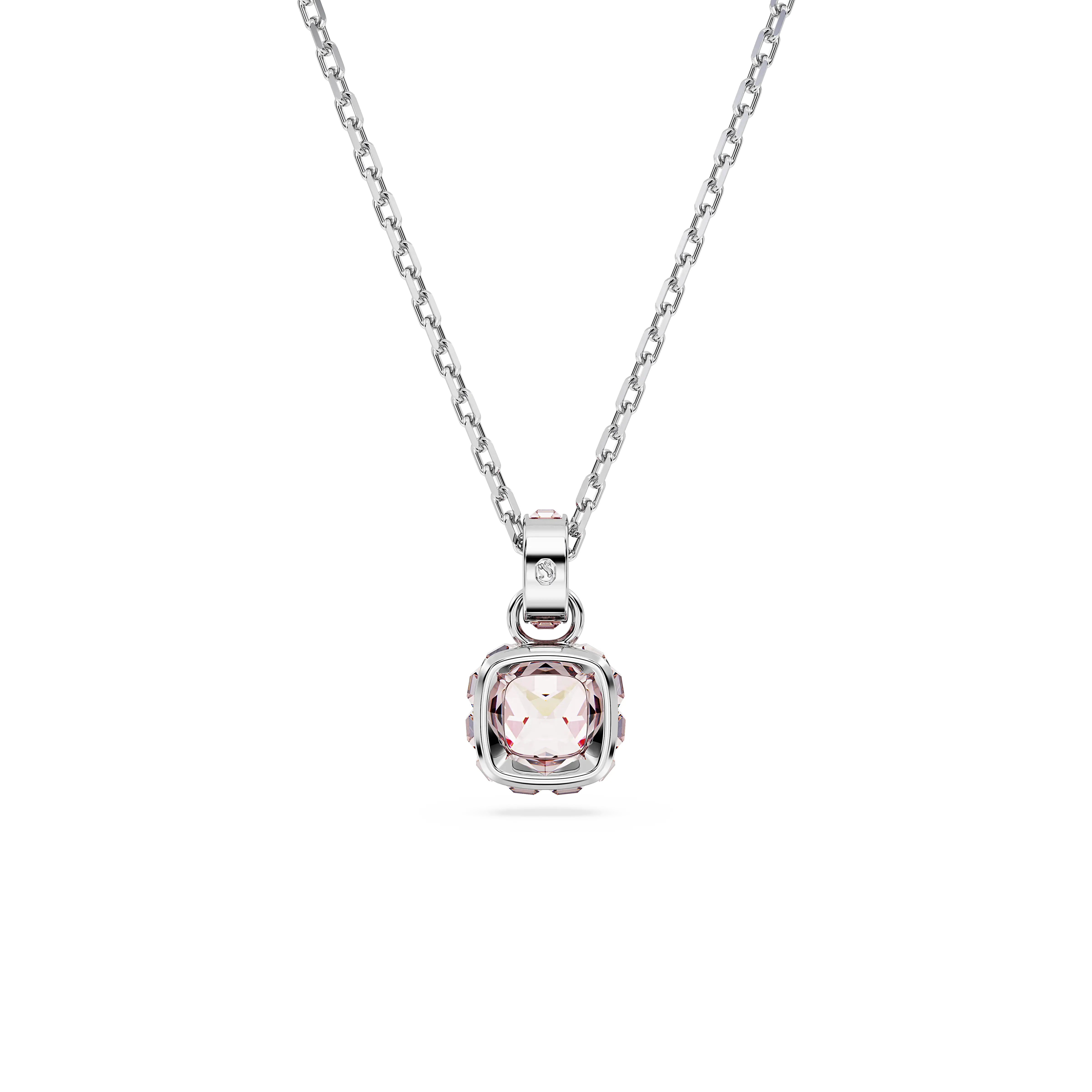 Birthstone pendant Square cut/June/Pink/Rhodium plated