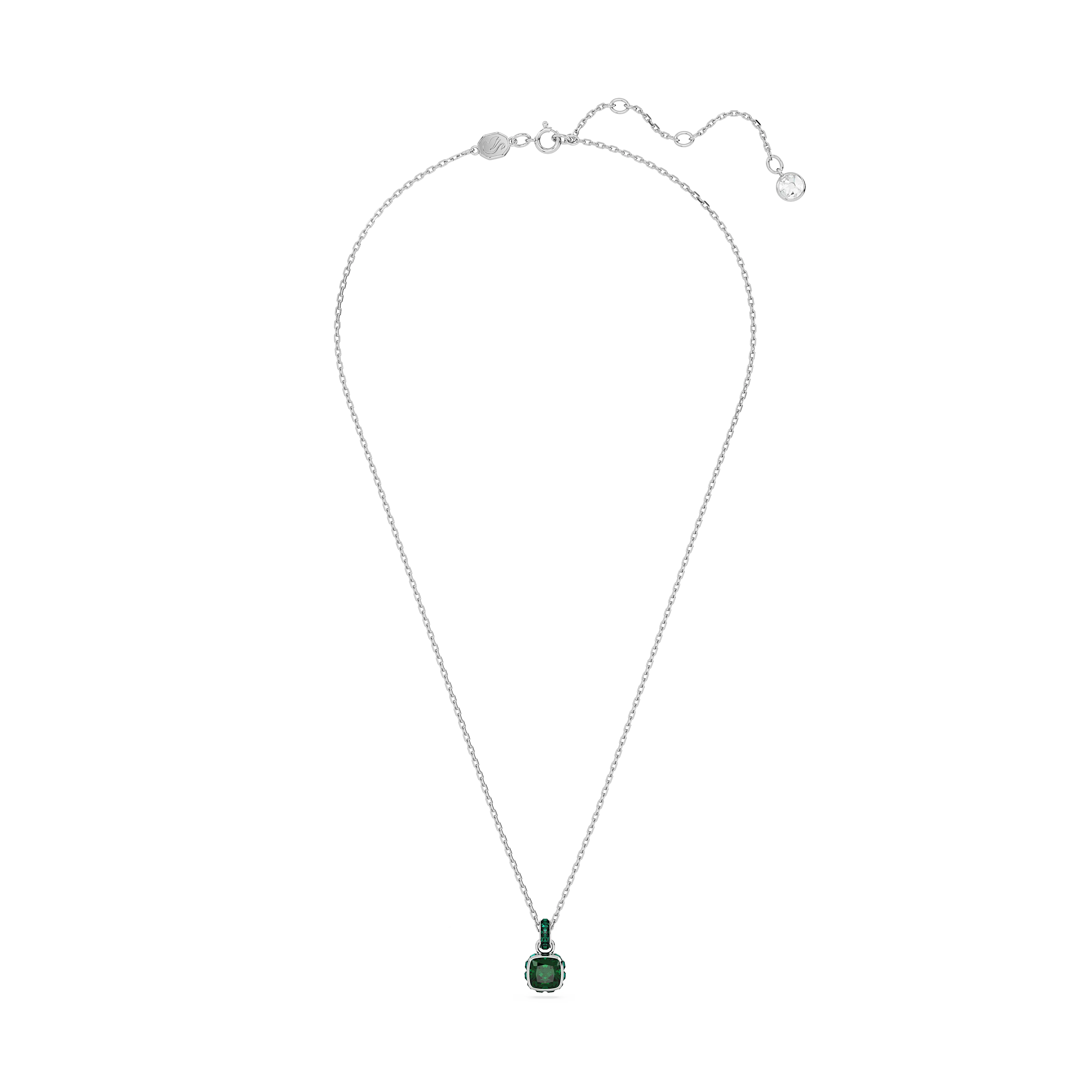 This delicate pendant is inspired by the birthstone of May. Hanging from a fine chain with a shimmering link of crystals,the rhodium plated jewelry features a single square-cut stone in an emerald green hue,a nature-inspired color that evokes rebirth and renewal. This meaningful design makes a magical birthday gift or can be worn to celebrate a time that is significant to you.