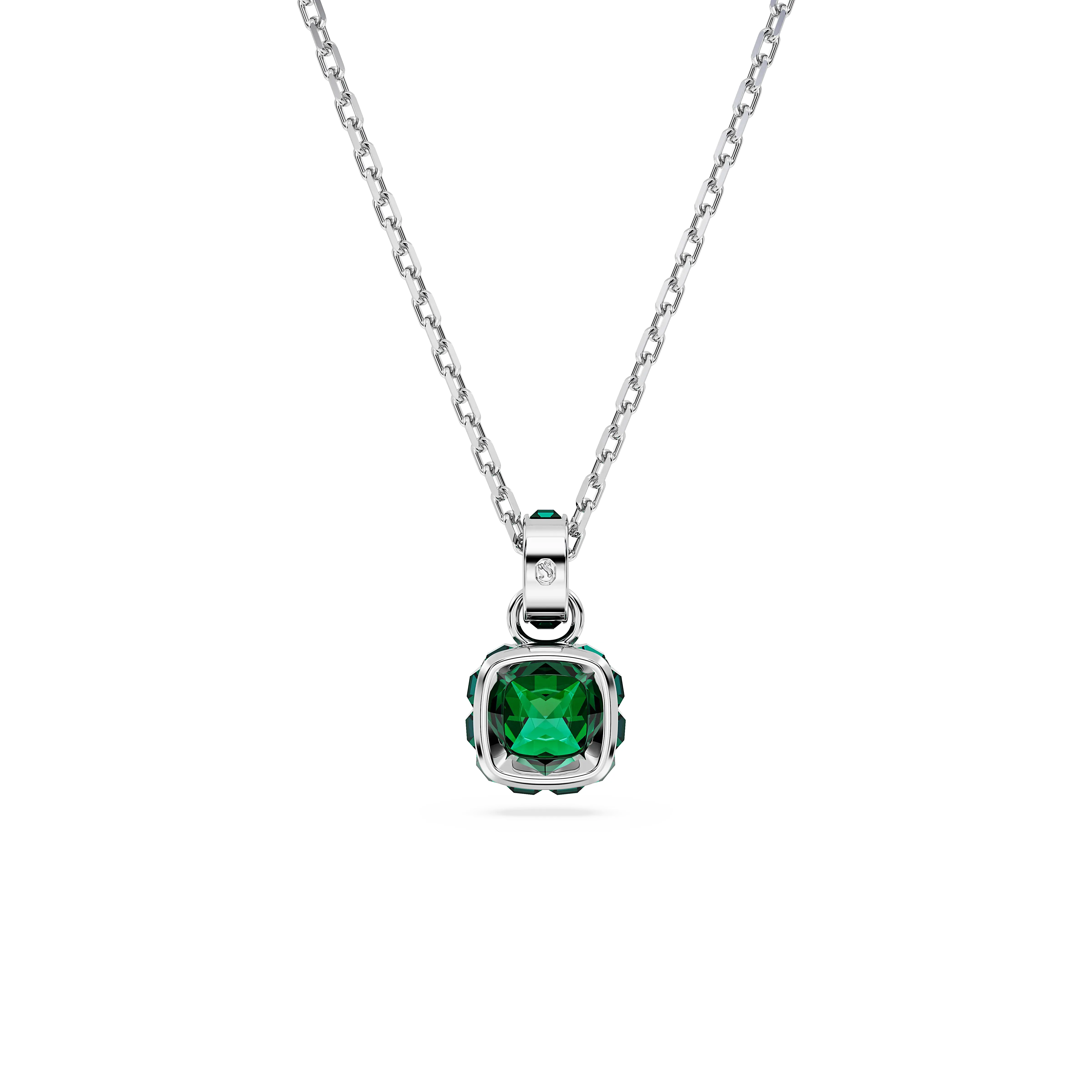 Birthstone pendant Square cut/May/Green/Rhodium plated