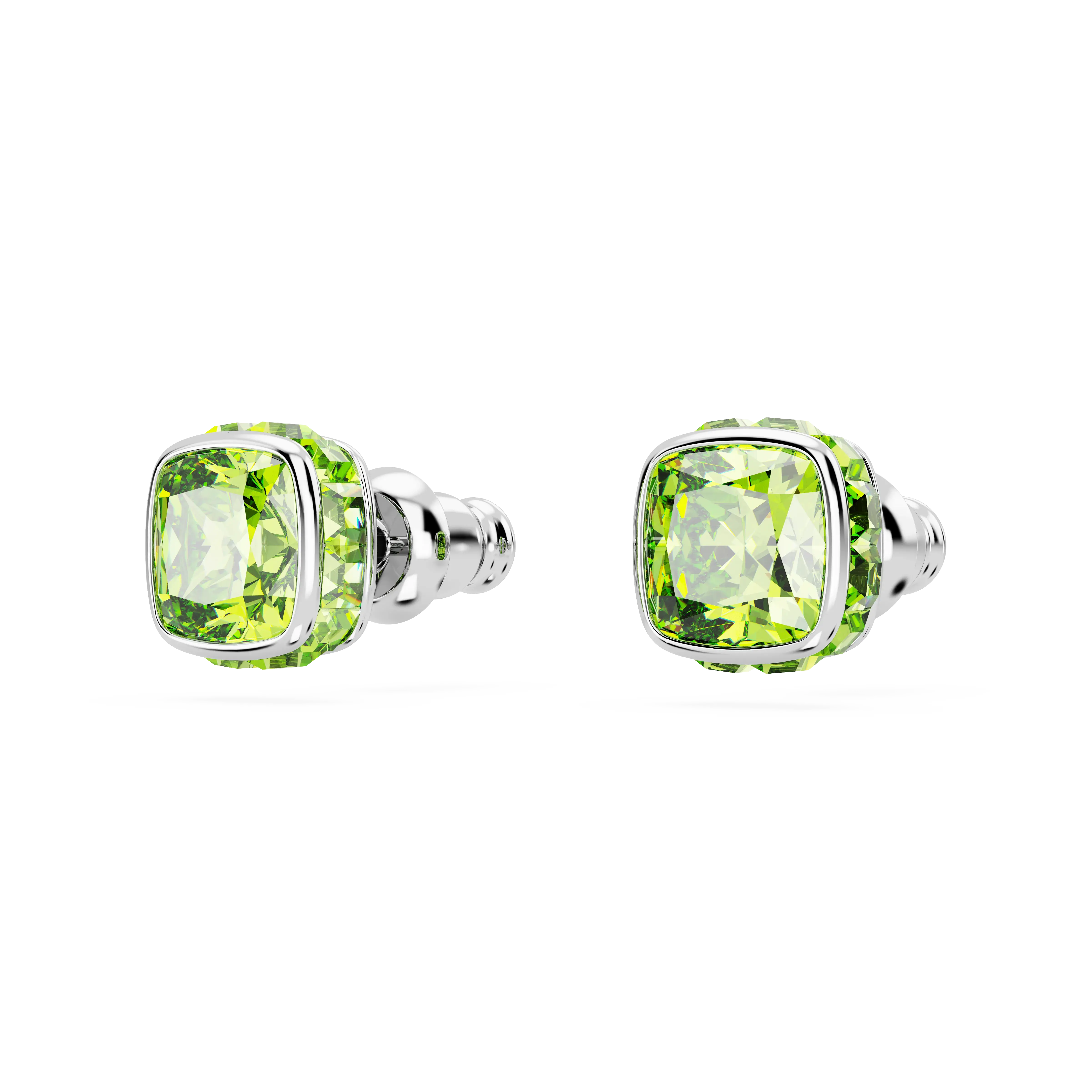 Birthstone stud earrings Square cut/August/Green/Rhodium plated