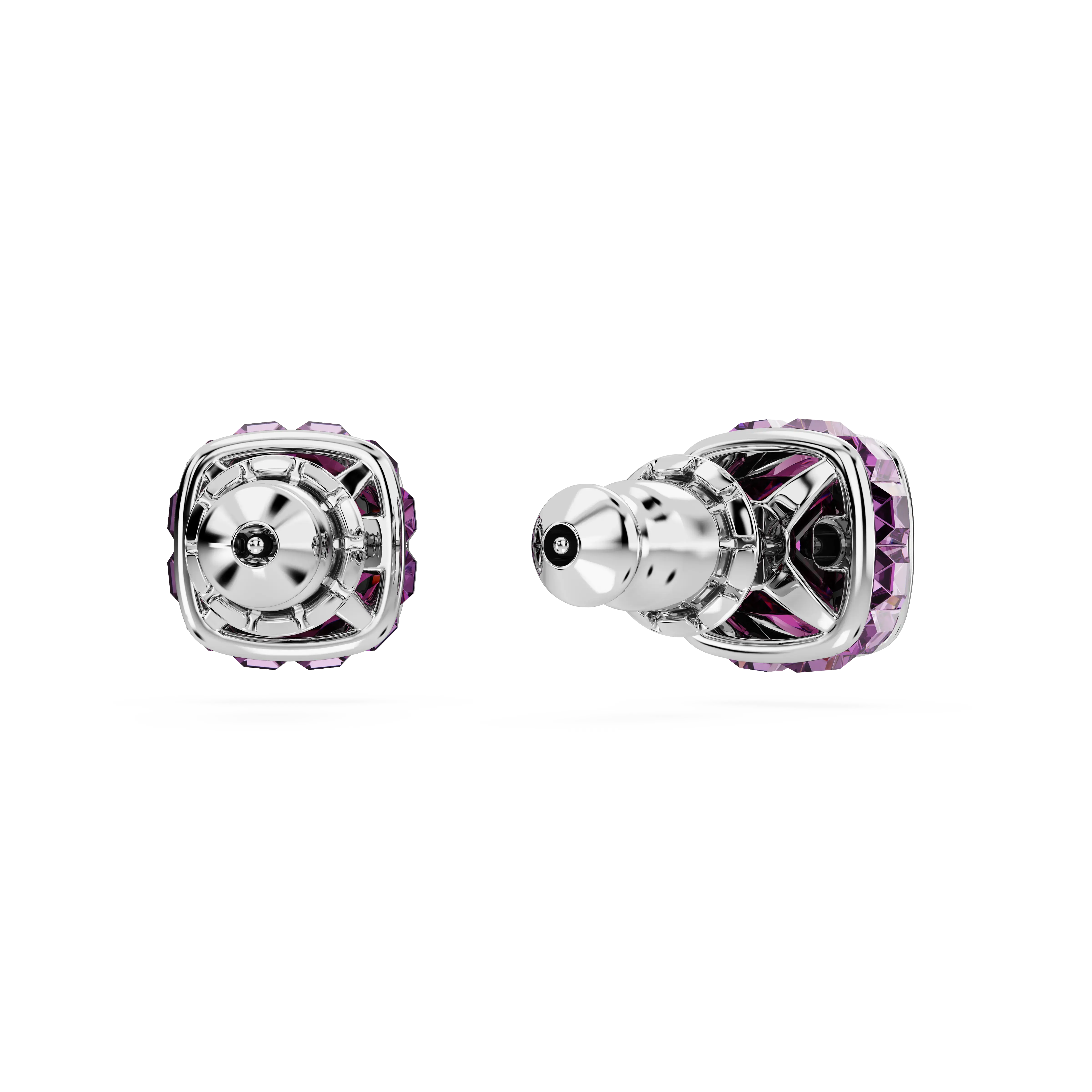 Birthstone stud earrings Square cut/February/Purple/Rhodium plated