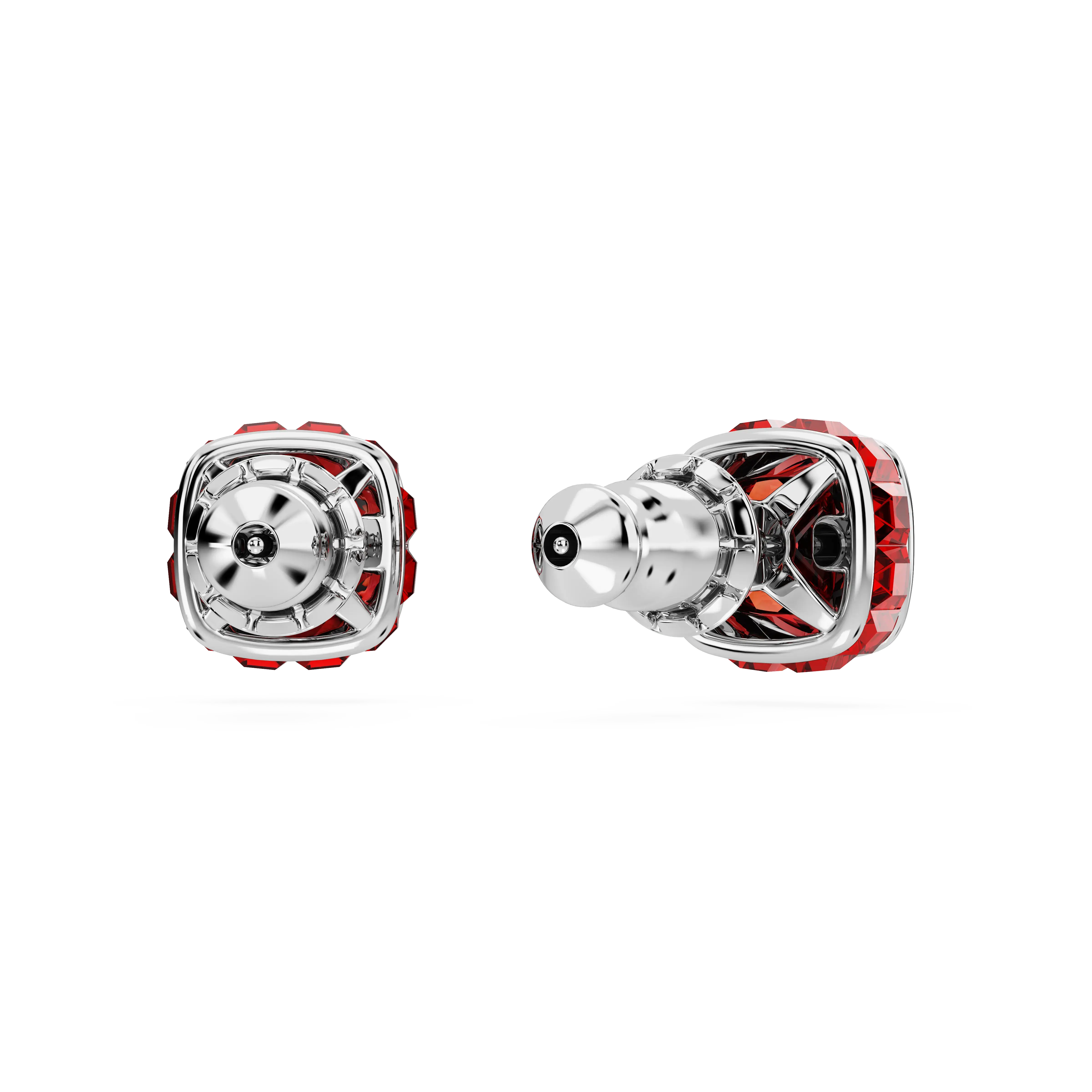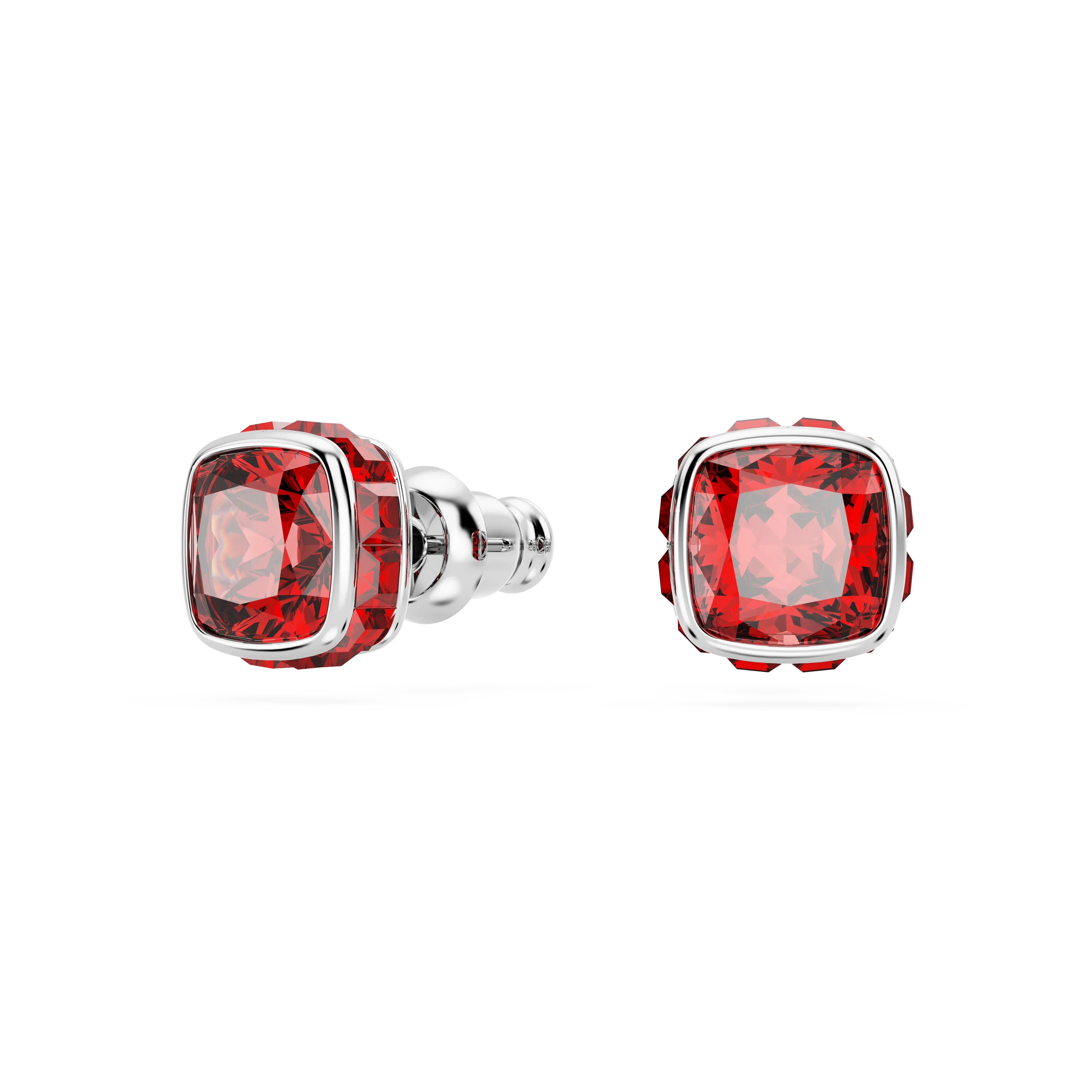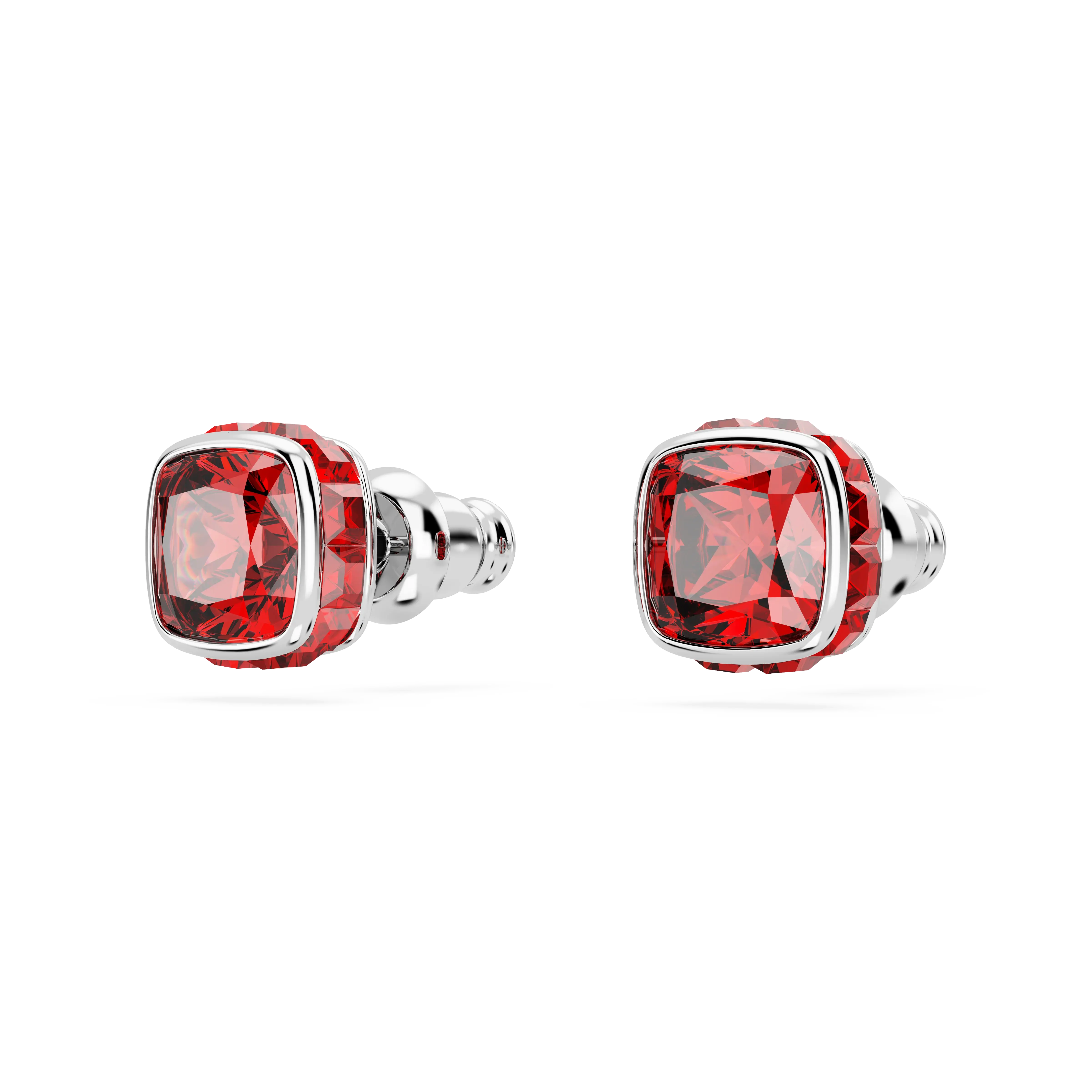 Birthstone stud earrings Square cut/July/Red/Rhodium plated