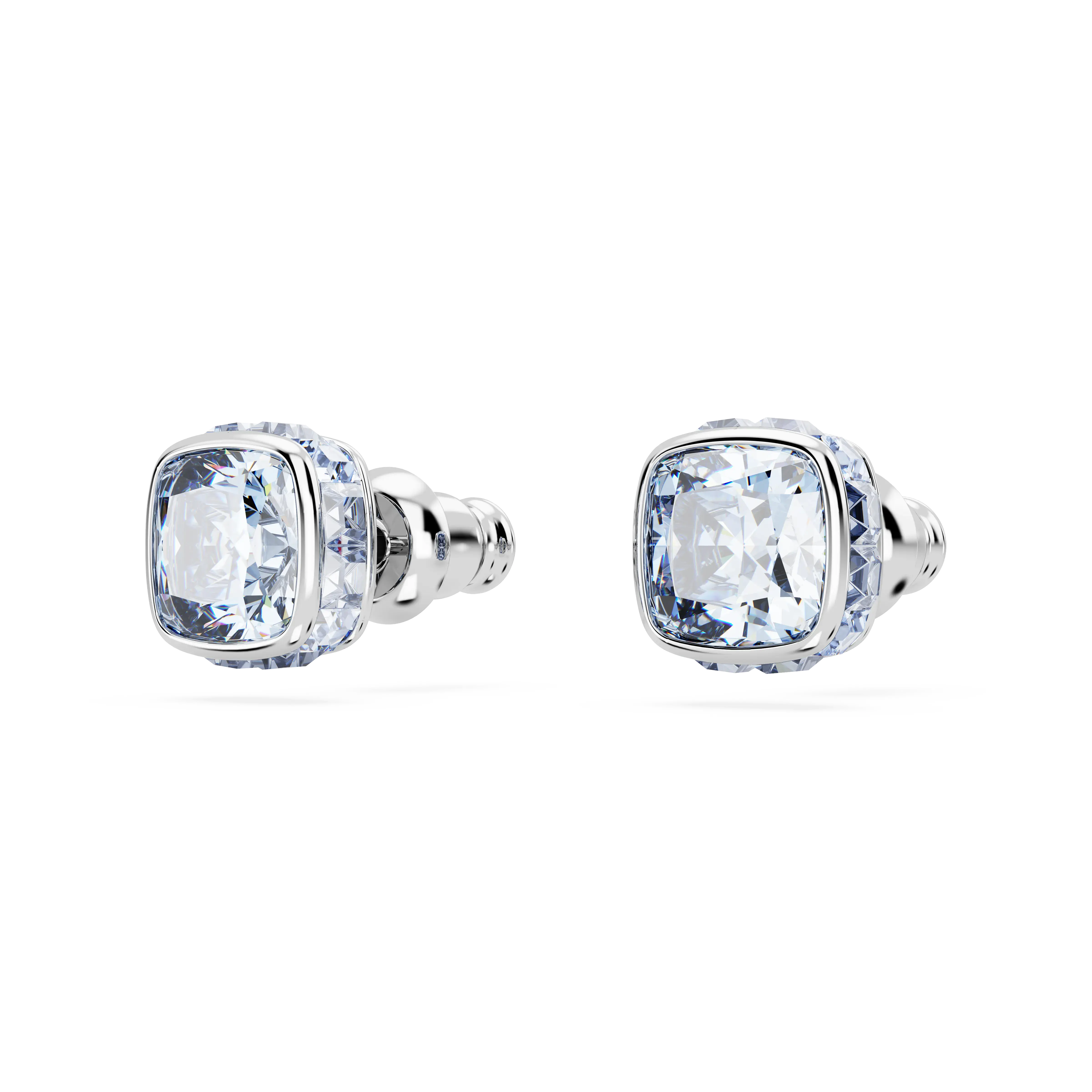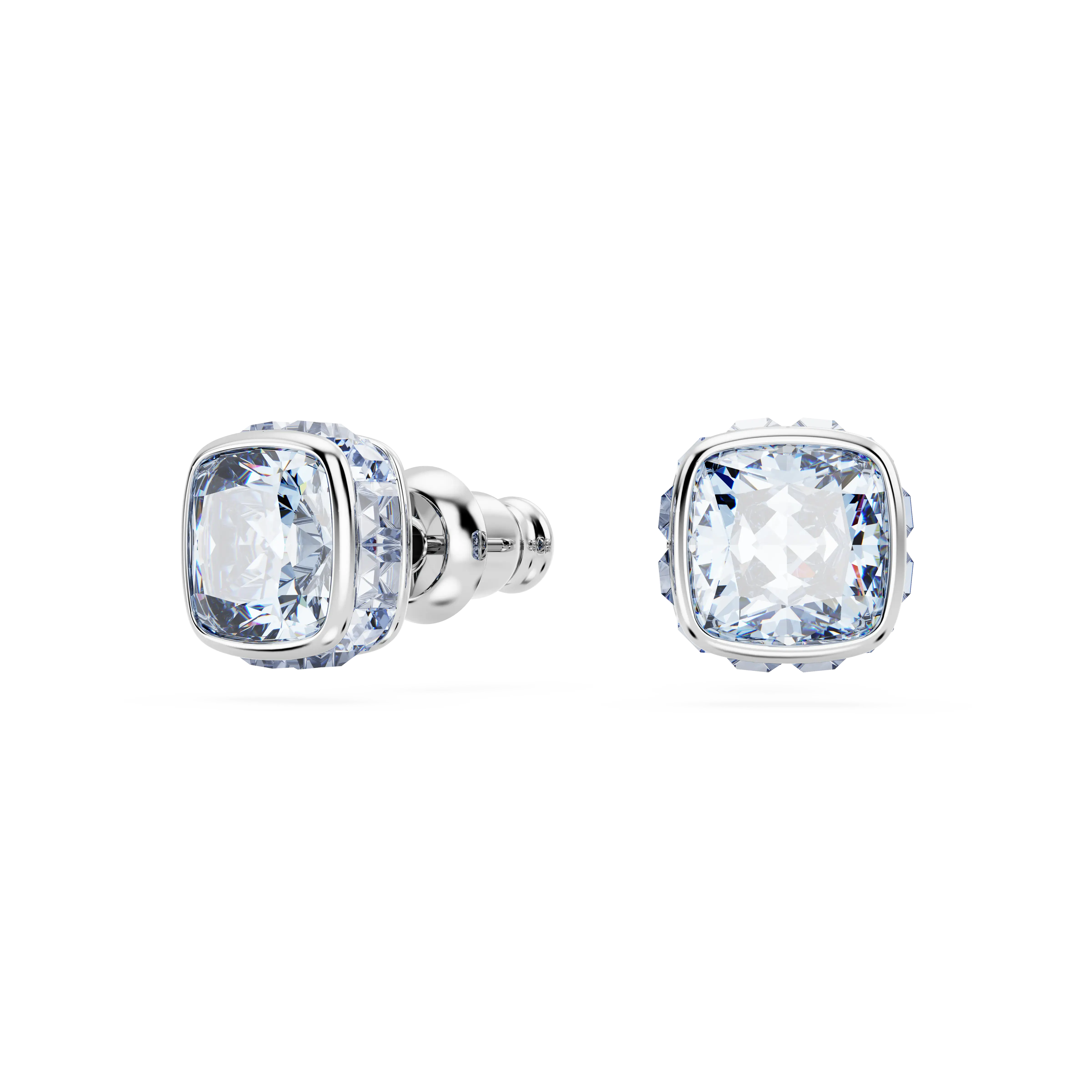 Birthstone stud earrings Square cut/March/Blue/Rhodium plated