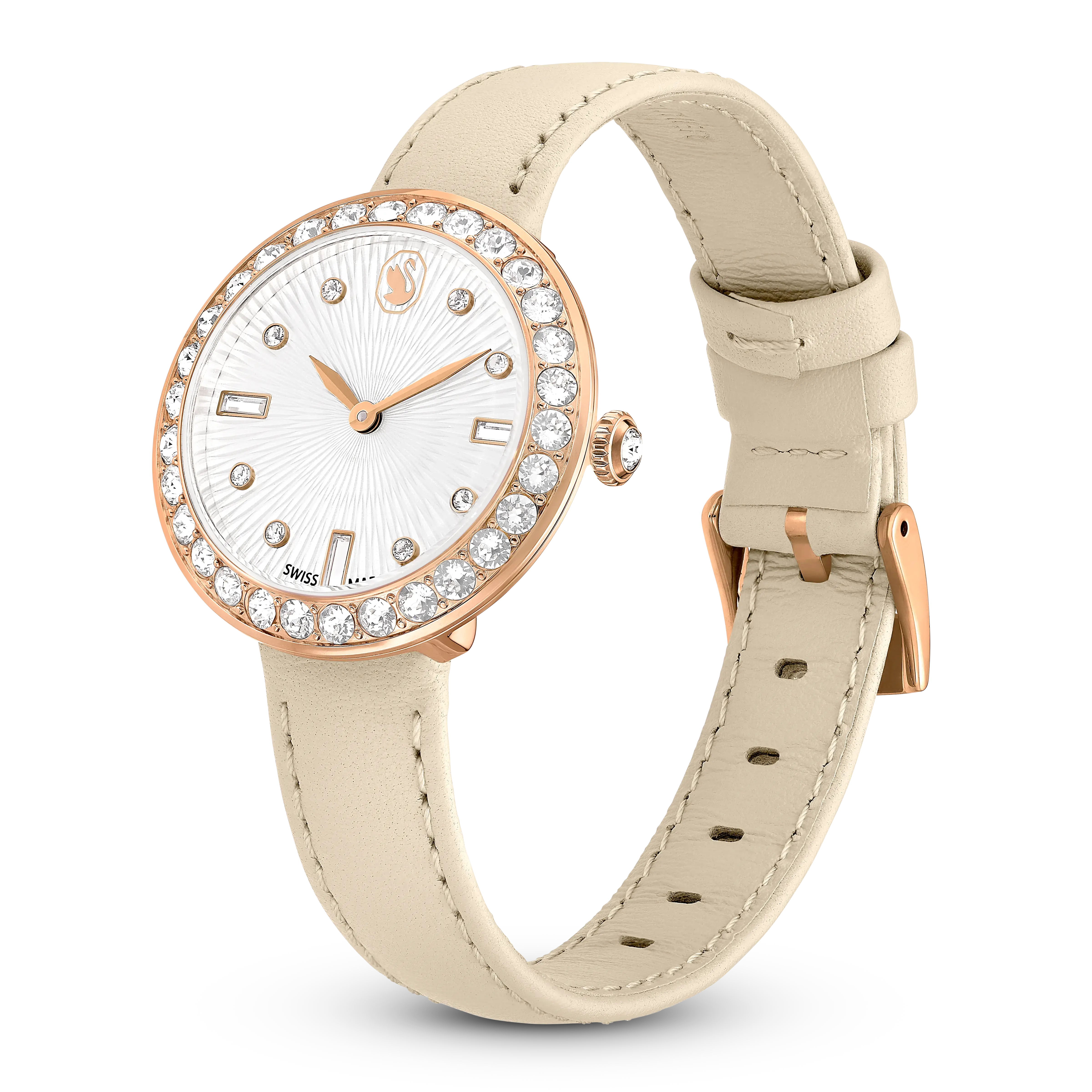 Crystalline Aura watch Swiss Made/Leather strap/Gray/Rose gold-tone finish