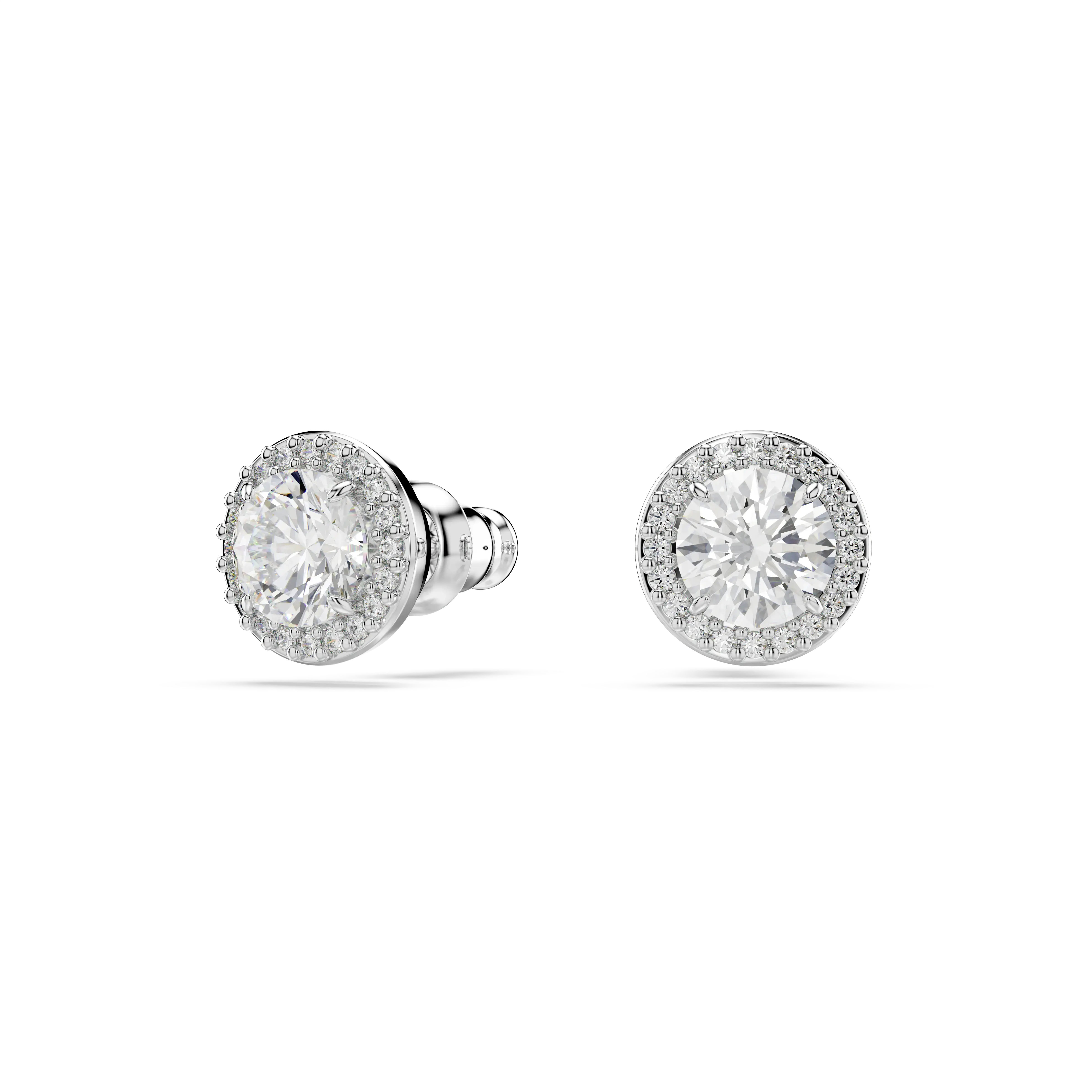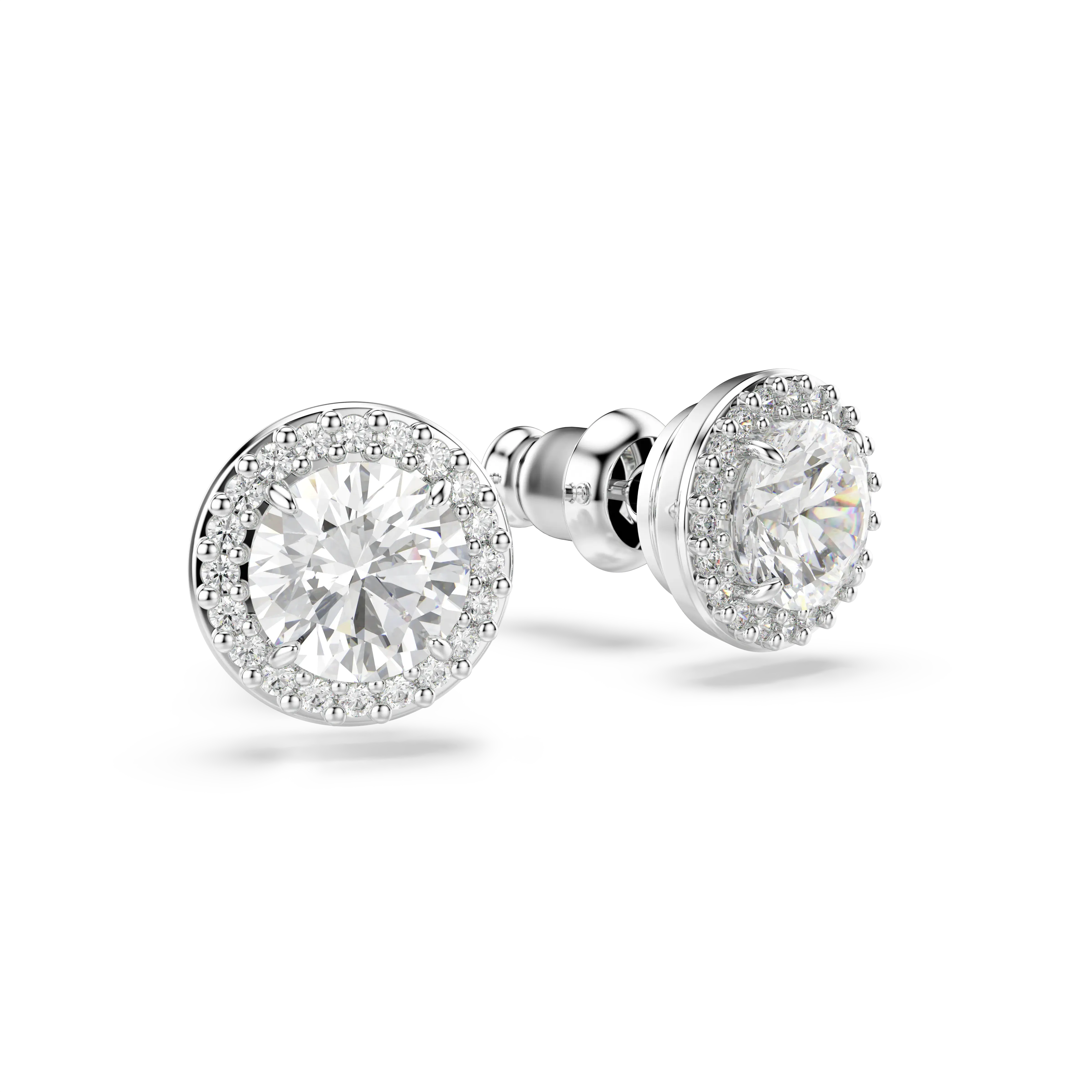 Constella stud earrings Round cut/Pavé/White/Rhodium plated