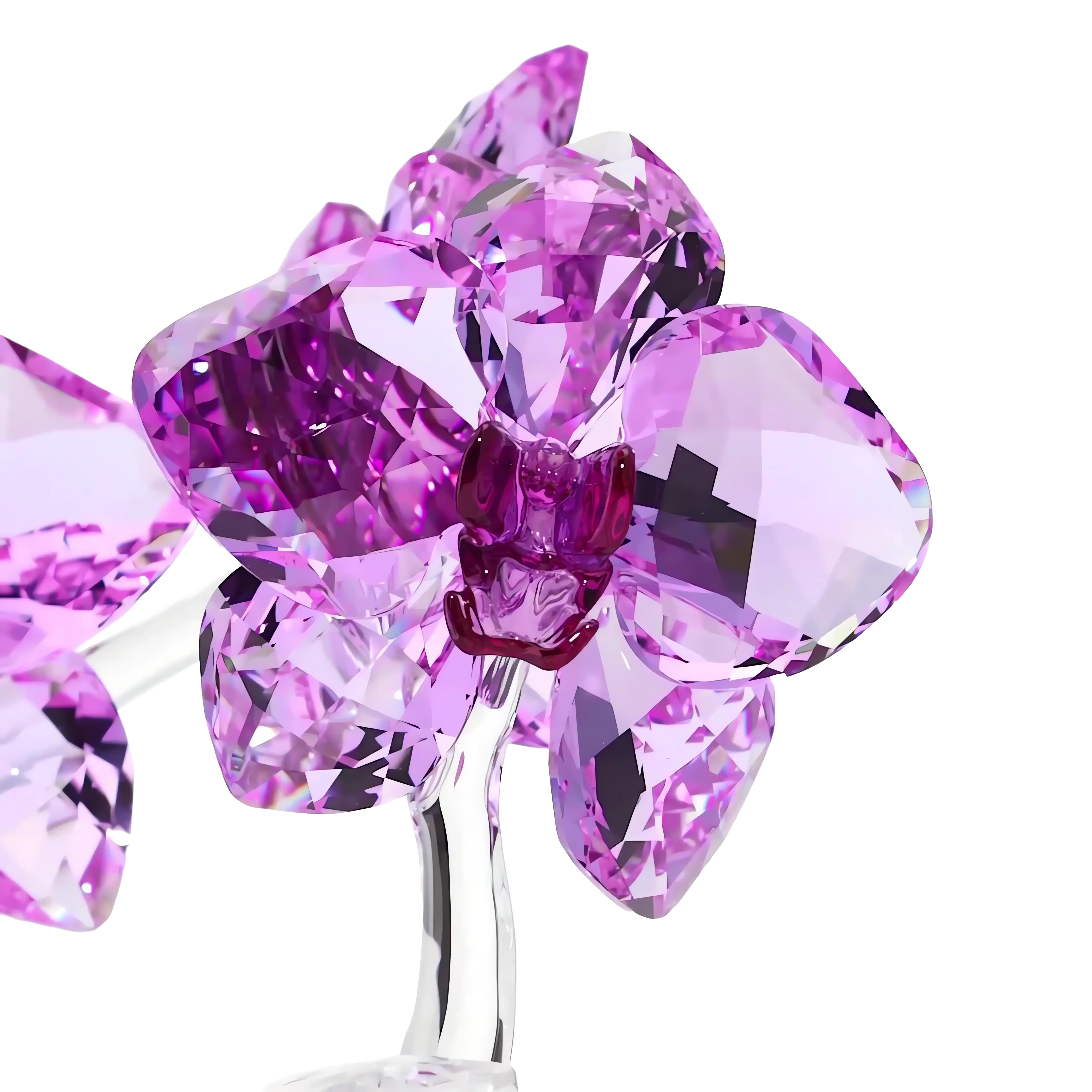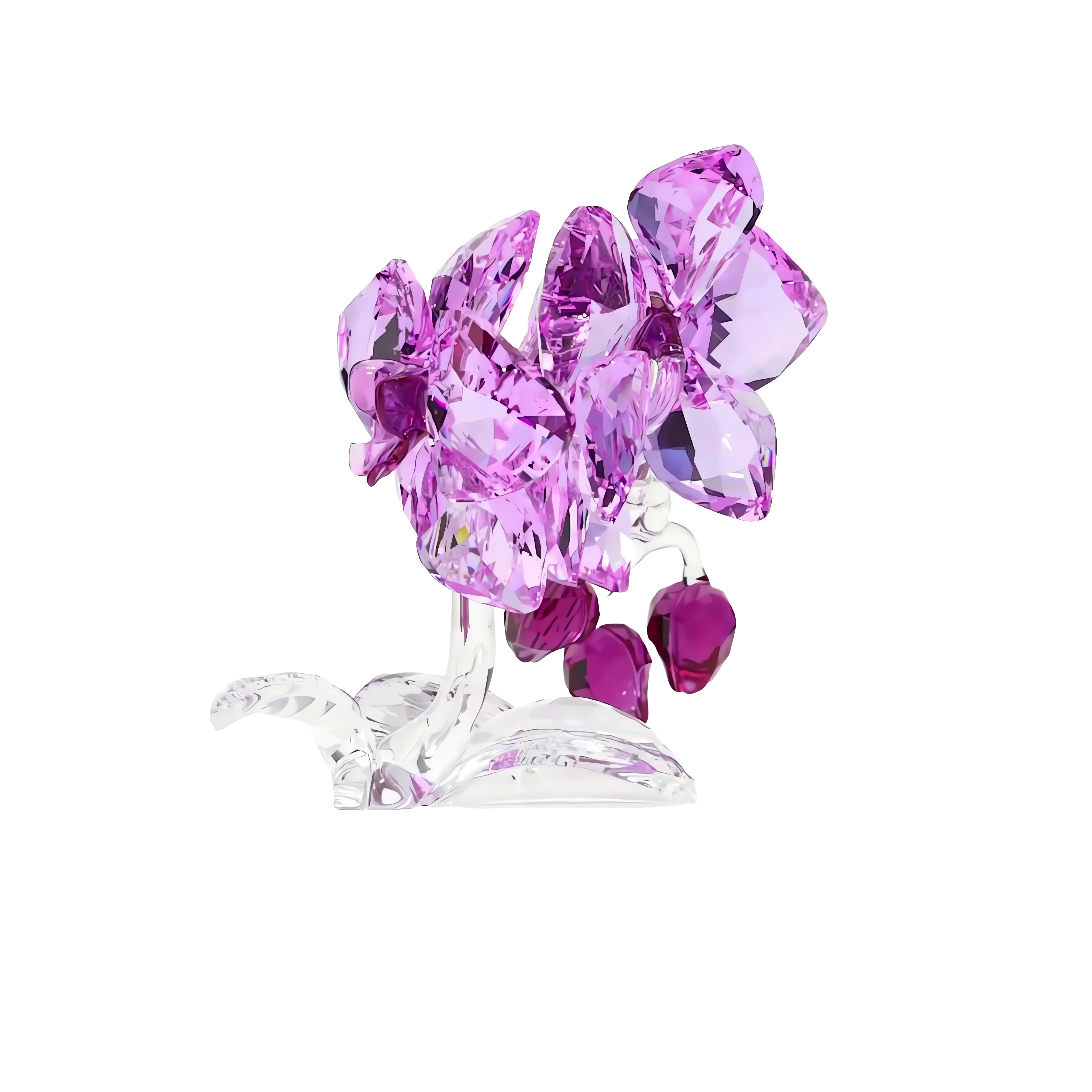 Plucked from the gardens that inspire our designers,this Swarovski orchid is an exquisite masterpiece. From the clear stem to the perfectly-rendered triplet of buds and the luscious open petals,this flower sparkles in 1,461 finely-hued facets of pink and purple. The lush vibrancy of the orchid,beloved throughout the ages for its beauty and elegance,comes to life in this luxurious crystal treasure,making it an ideal piece for collectors or as a gift for lovers of timeless natural beauty. Decoration object. Not a toy. Not suitable for children under 15.