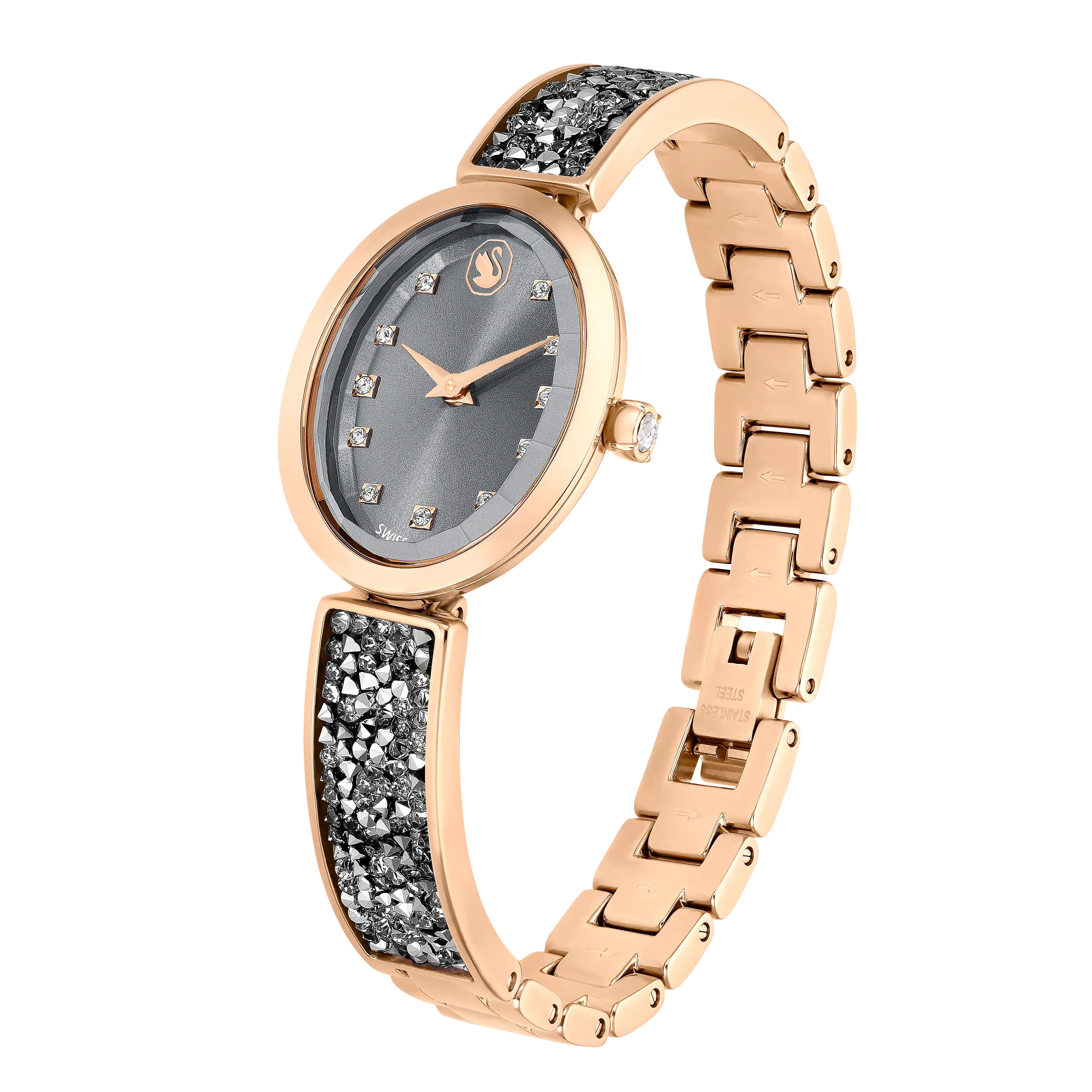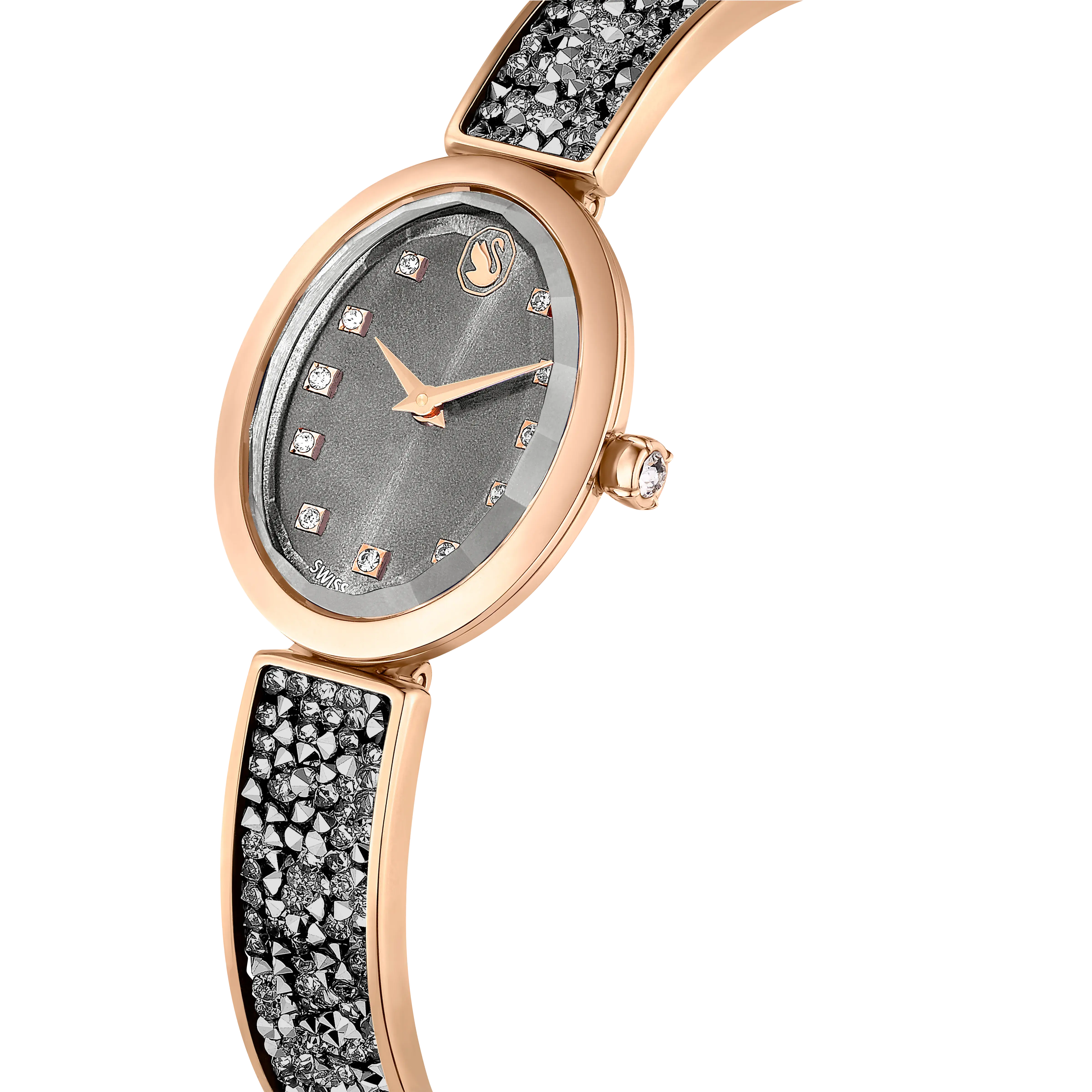 Crystal Rock Oval watch Swiss Made/Crystal bracelet/Gray/Rose gold-tone finish