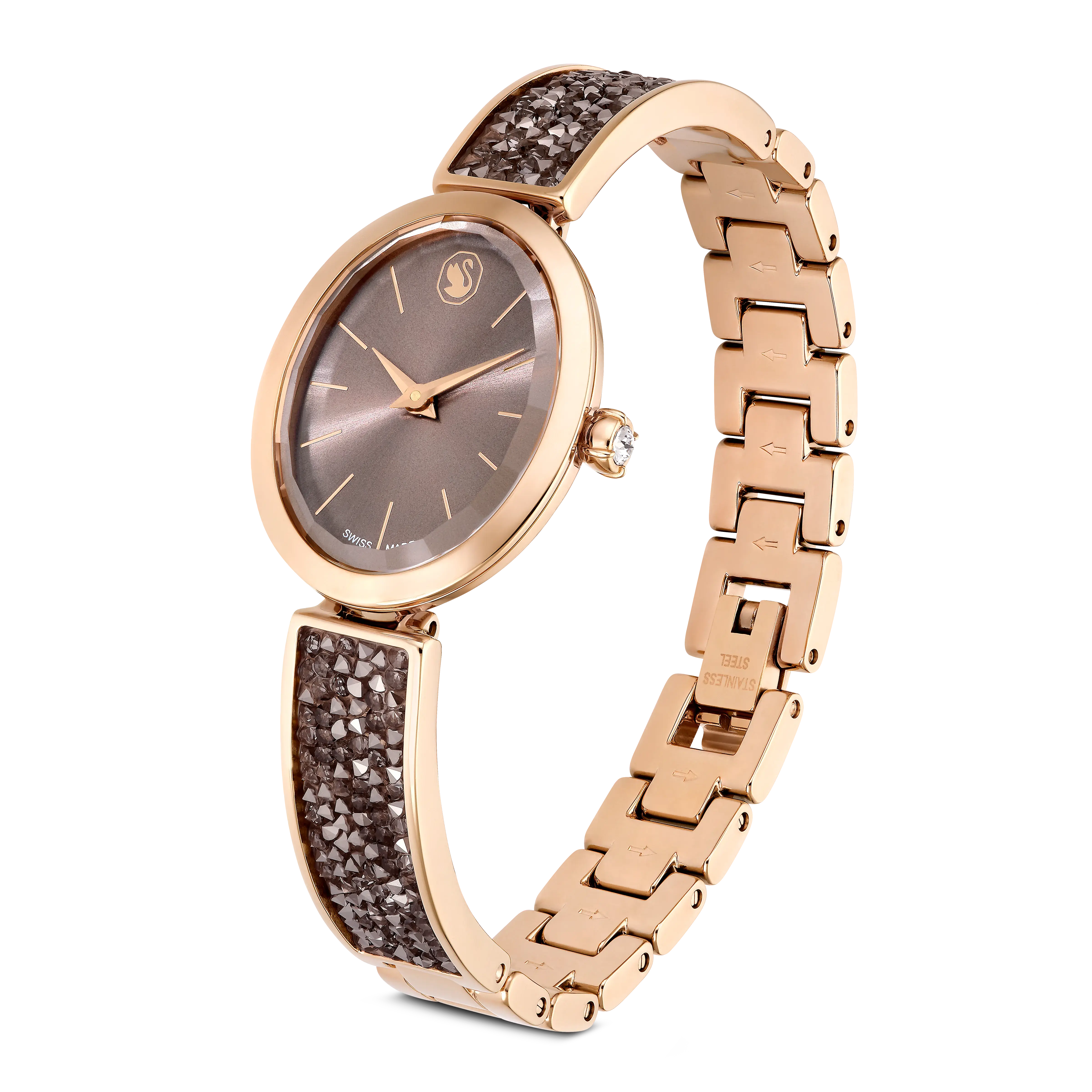 Crystal Rock Oval watch Swiss Made/Crystal bracelet/Gray/Rose gold-tone finish