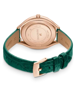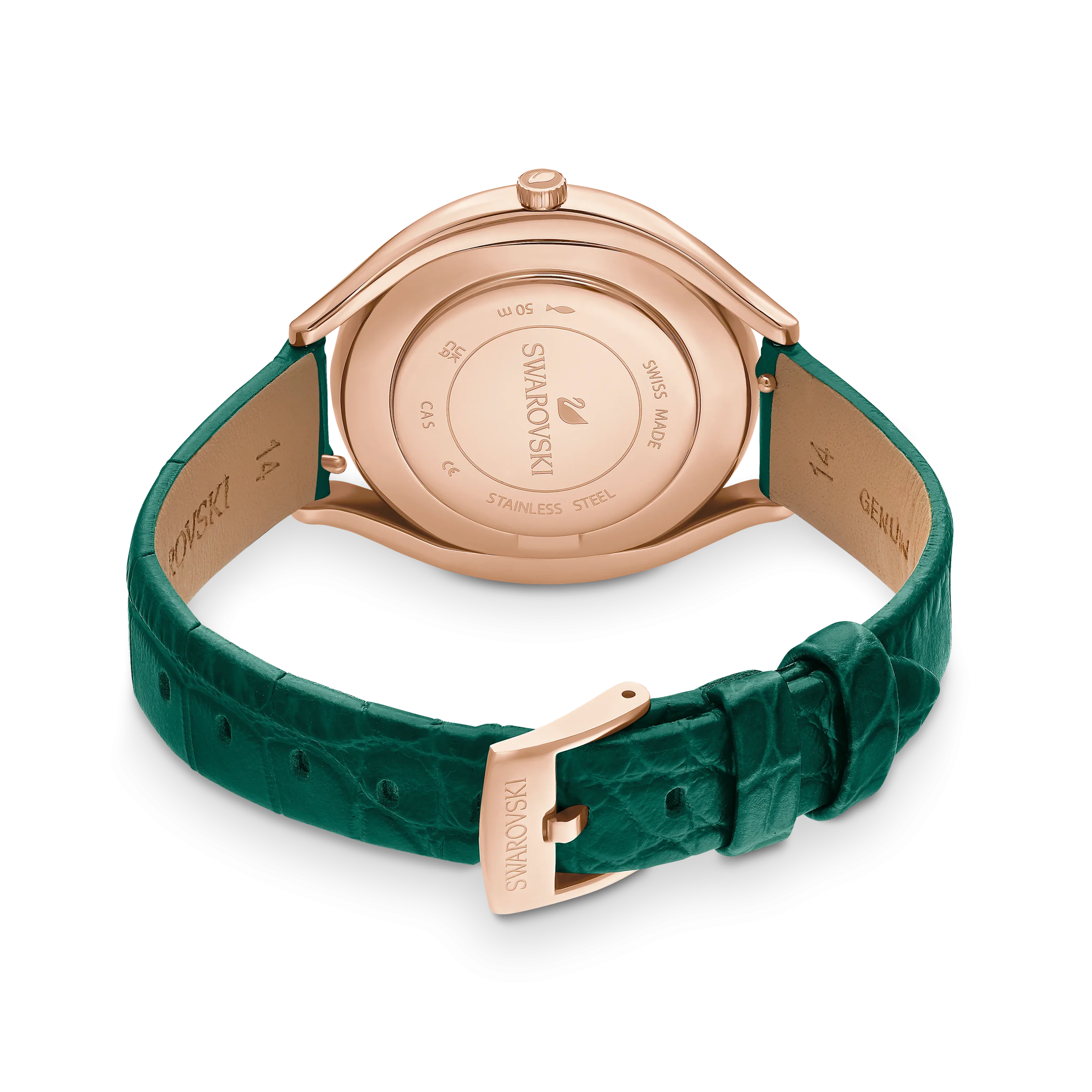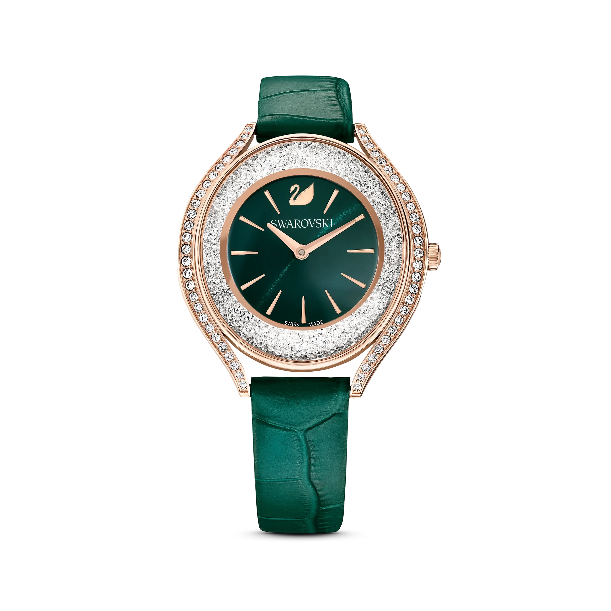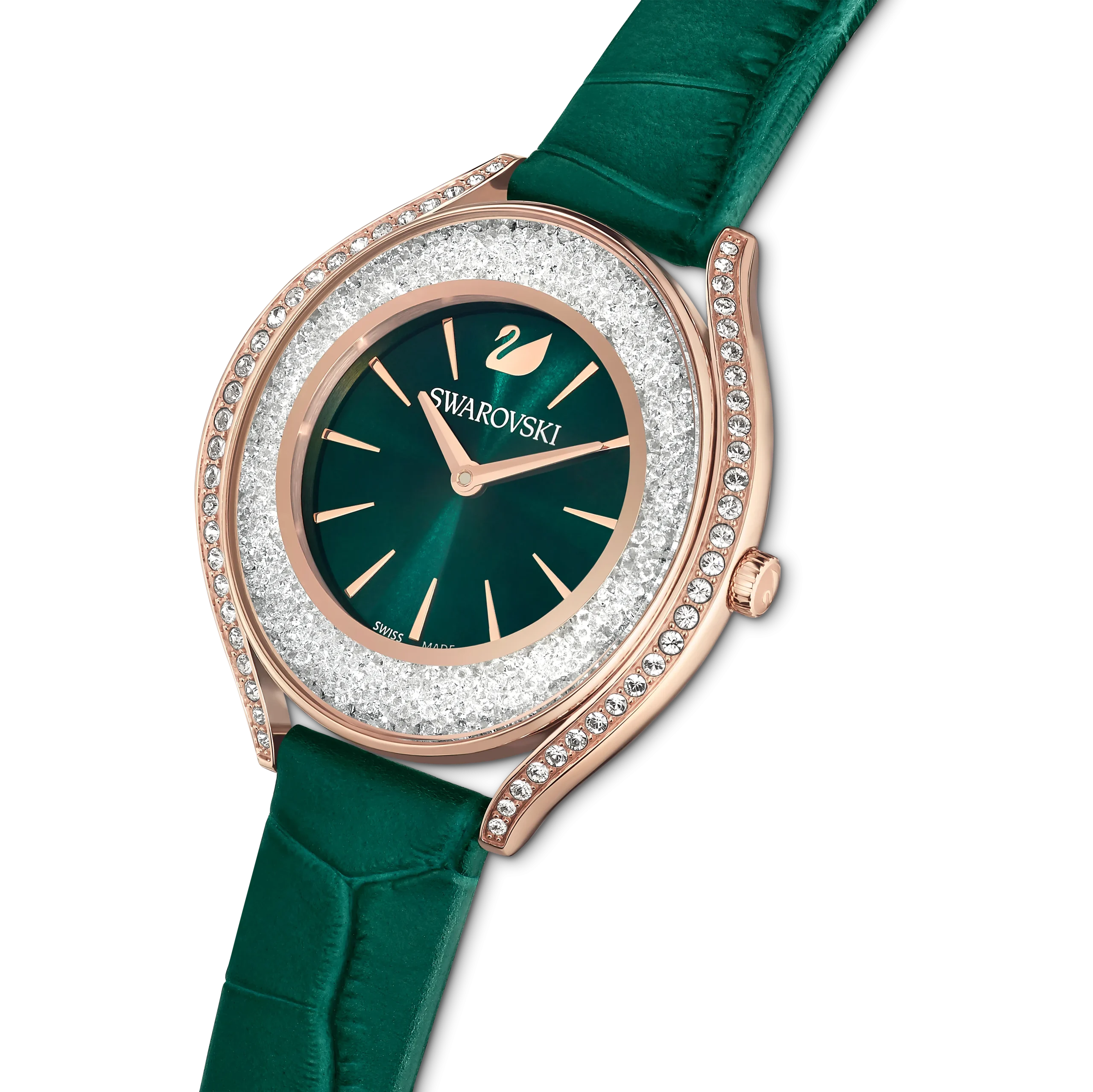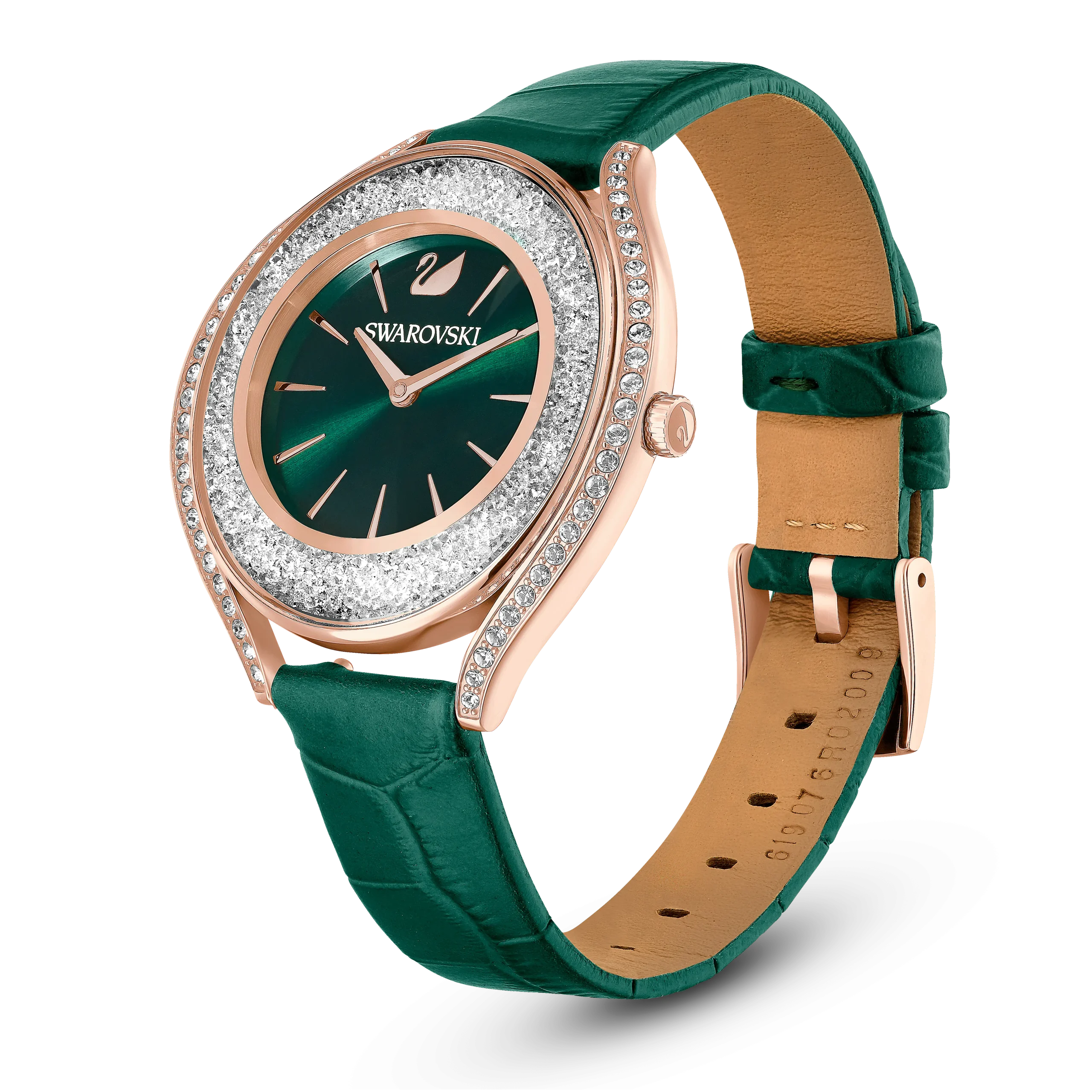 Crystalline Aura watch Swiss Made/Leather strap/Green/Rose gold-tone finish