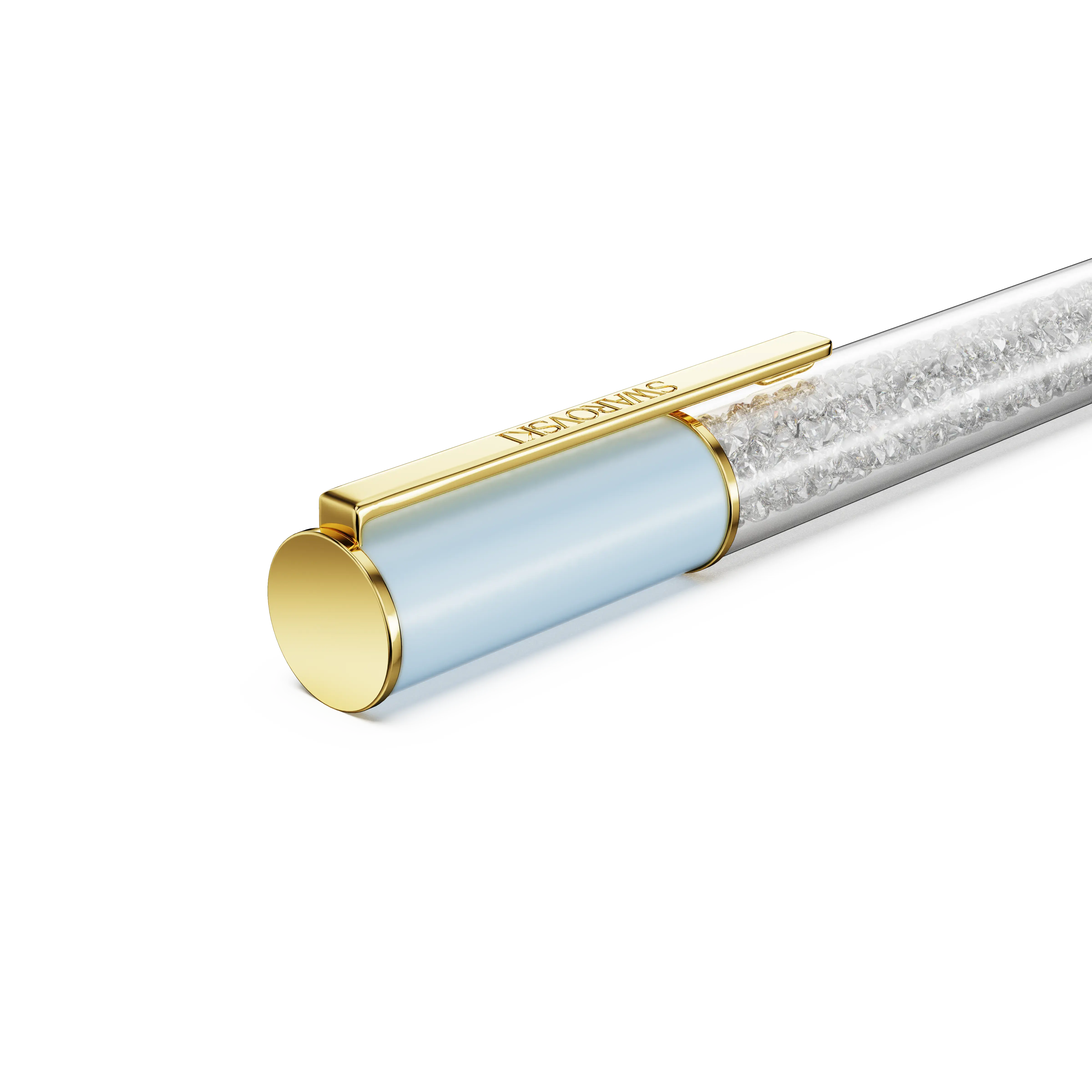 The luxurious Crystalline Lustre ballpoint pen takes inspiration from vivid color. This distinctive writing instrument features a round barrel in blue and green,as well as gold-tone accents that include a functional clip engraved with the Swarovski name. At its center,this eye-catching design is illuminated with approximately 480 glittering crystals,each meticulously added using the iconic Crystalline technique. A standout addition to your desk or a distinctive gift for the writers in your life. Black and blue ink refills are available to buy in Swarovski stores.
