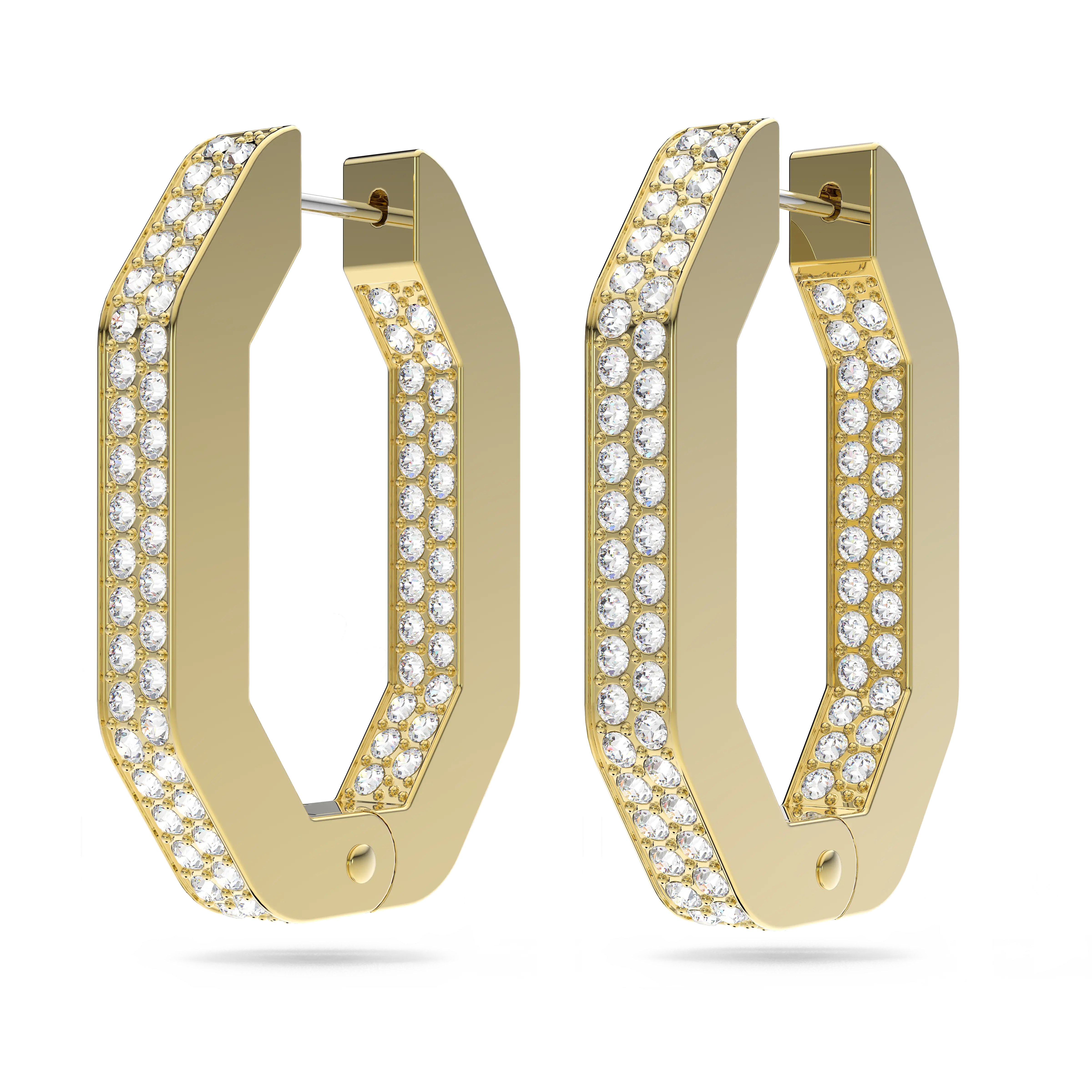Dextera hoop earrings Octagon shape/Medium/White/Gold-tone plated