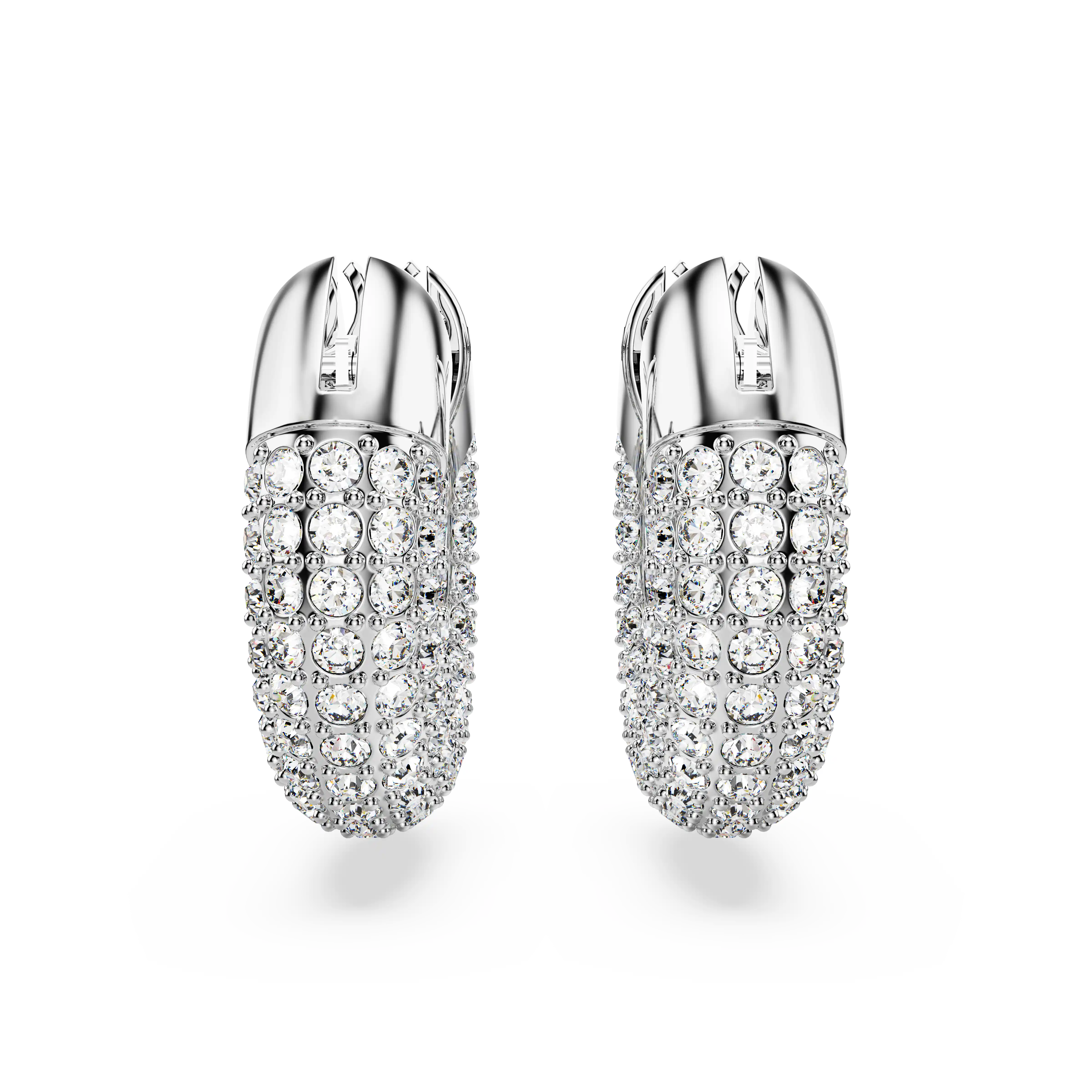 A modern spin on classic hoop earrings,this genderless pair will lend a dynamic touch to any outfit. Its sculptural design celebrates Swarovski’s iconic pavé technique with glittering foiled crystals set against a rhodium plated frame. Not just for daytime,wear this statement duo with after-dark looks,too. These earrings are part of the Dextera family,designed by Creative Director Giovanna Engelbert for Collection II.