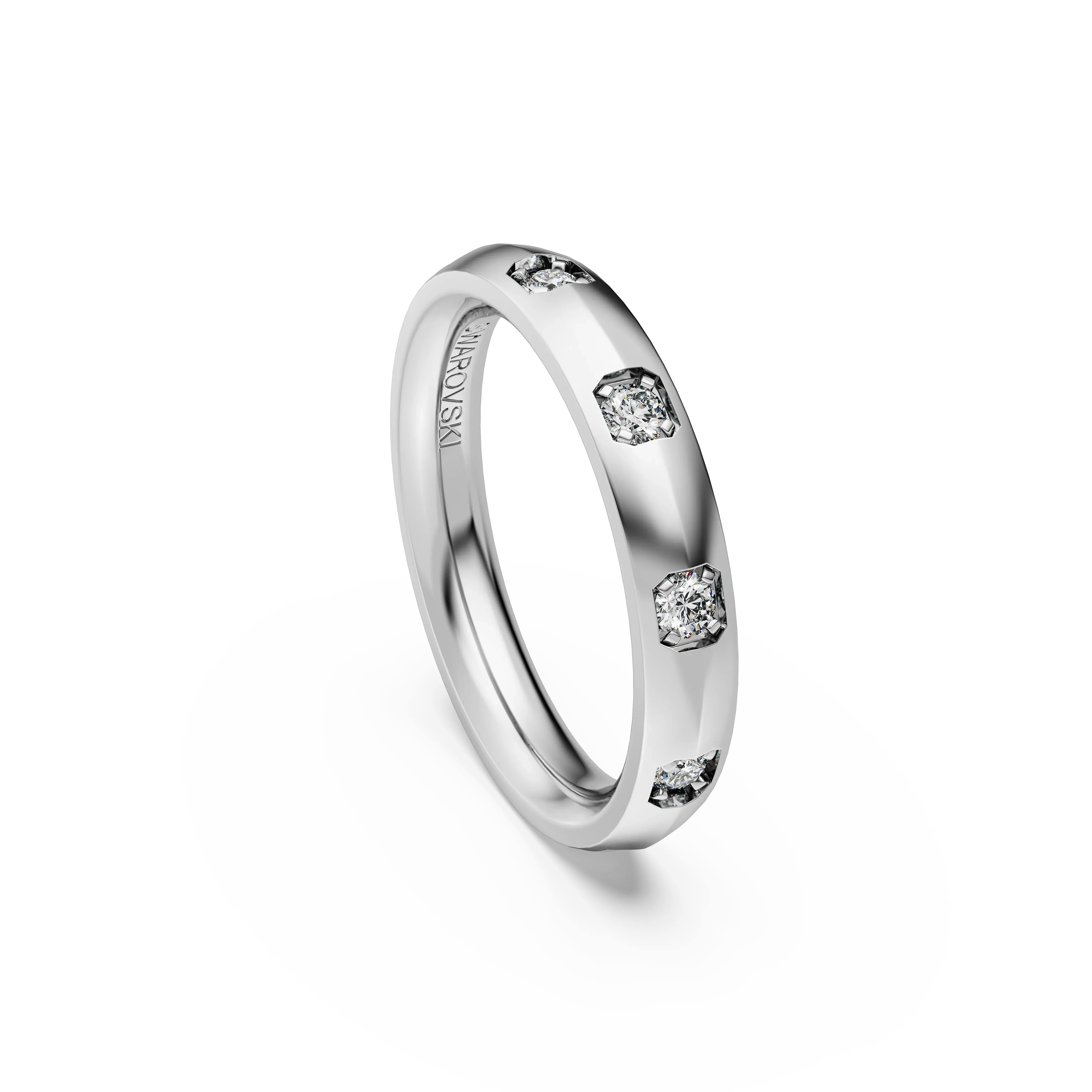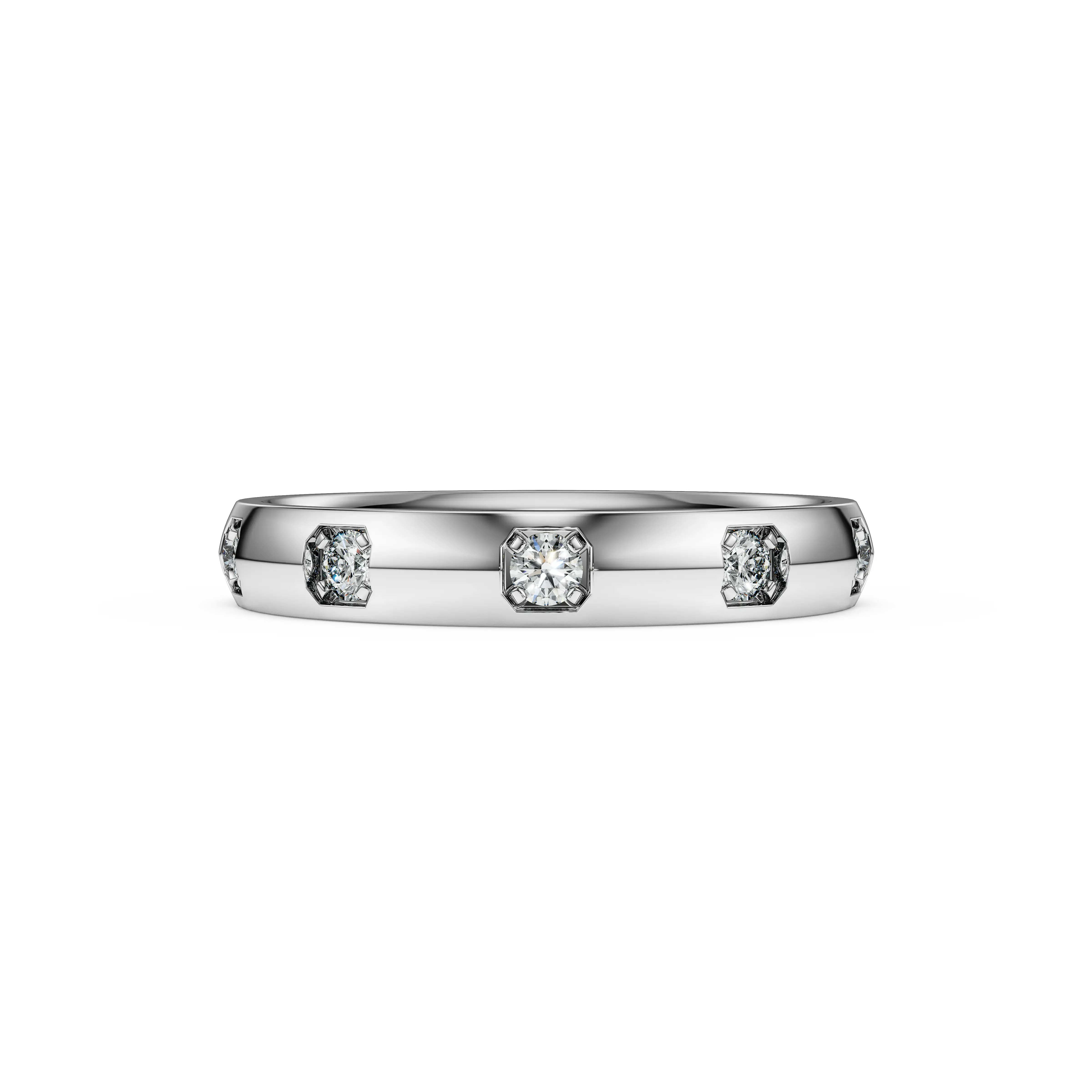 This Eternity band ring for men is designed for endless reflections of light. The 14K white gold band is neatly faceted for a unique shape,and is set with 10 laboratory grown diamonds totaling 0.5 carat. Wear this shimmering accessory to illuminate any look,or as an eternal bond of love. This jewelry is IGI (International Gemological Institute) certified and is part of the Eternity collection.