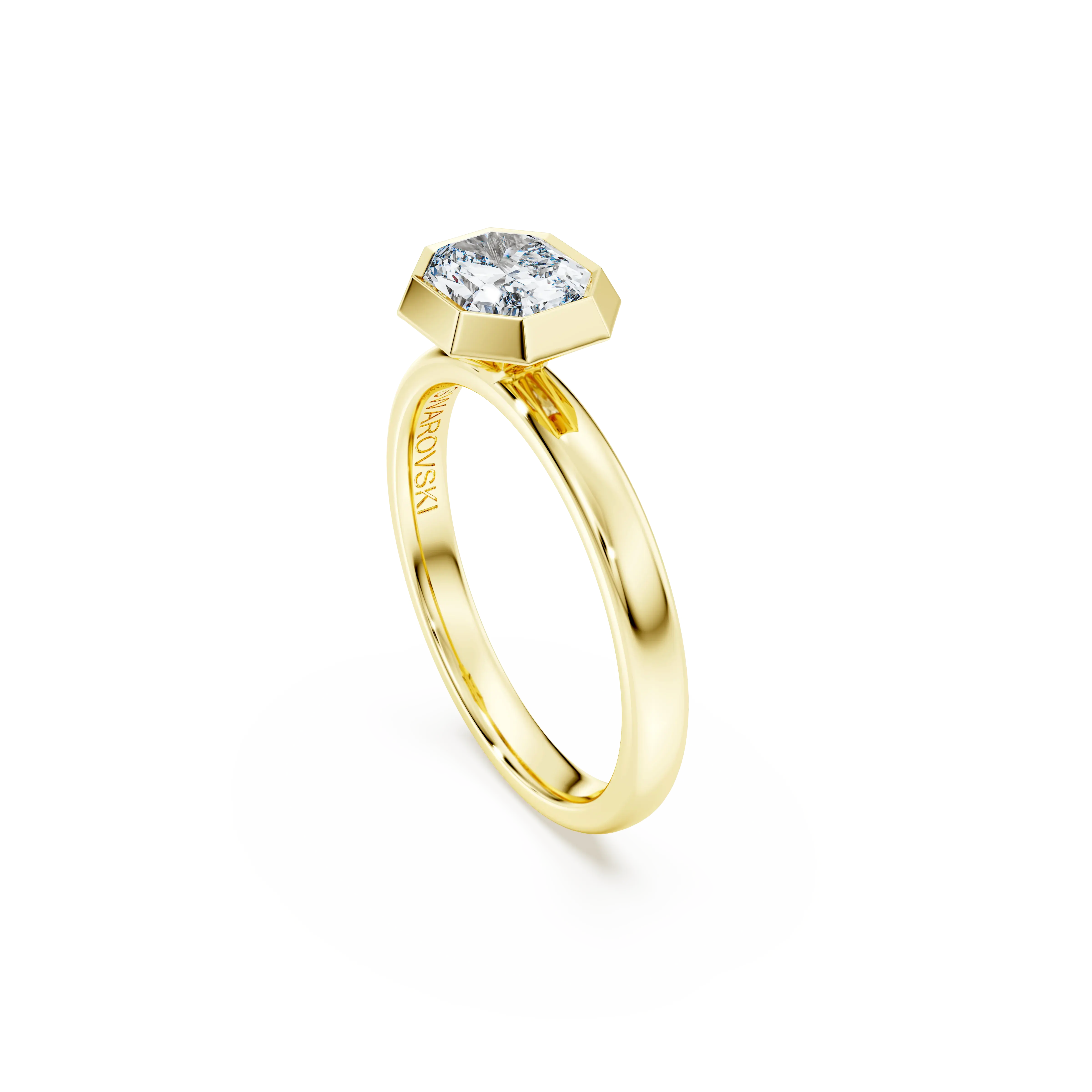 Conveying the signature octagon shape of Swarovski,this solitaire ring glows with sophistication. The 14K yellow gold band features a single laboratory grown diamond,totaling 1.00 carat,placed in a faceted bezel setting. Precision cut for maximum radiance,this ring is a wonderful choice for self-styling or an engagement. This jewelry is IGI (International Gemological Institute) certified and is part of the Eternity collection.