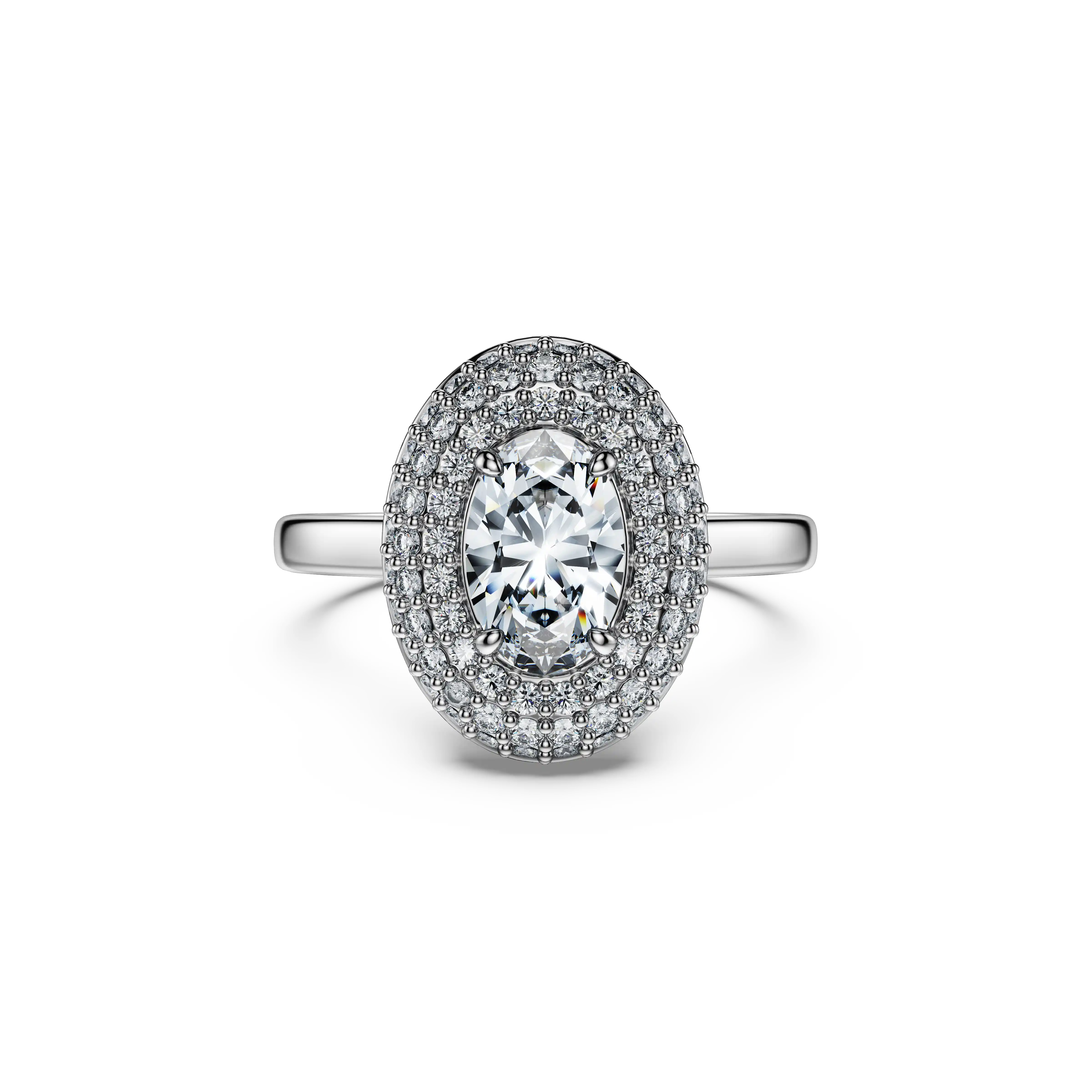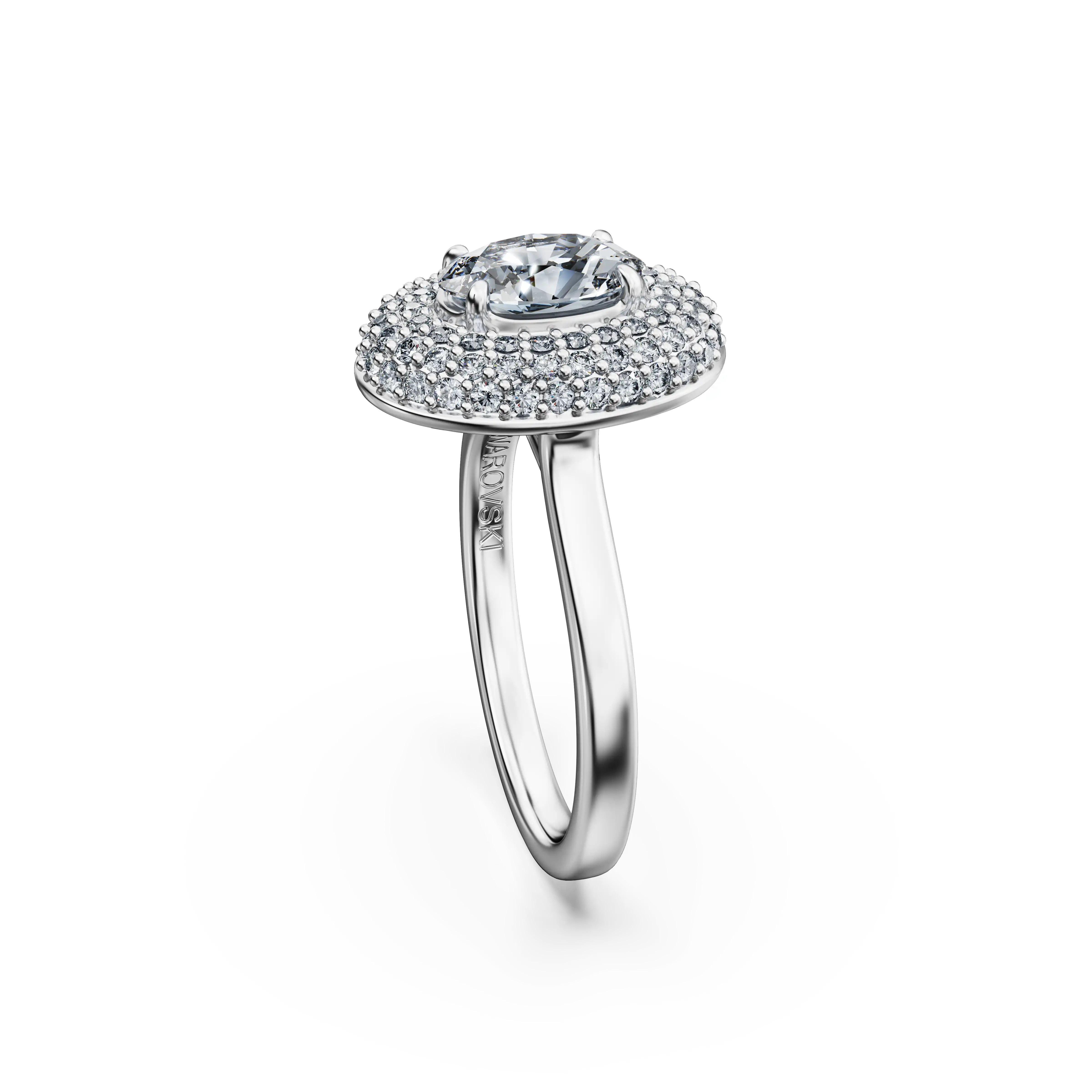 This opulent Eternity ring is an everlasting expression of Swarovski beauty. The 14K white gold band features an oval,prong-set laboratory grown diamond,surrounded by a dazzling double halo of round laboratory grown diamonds – all totaling 1.5 carat. A striking engagement style to cherish forever. This jewelry is IGI (International Gemological Institute) certified and is part of the Eternity collection.