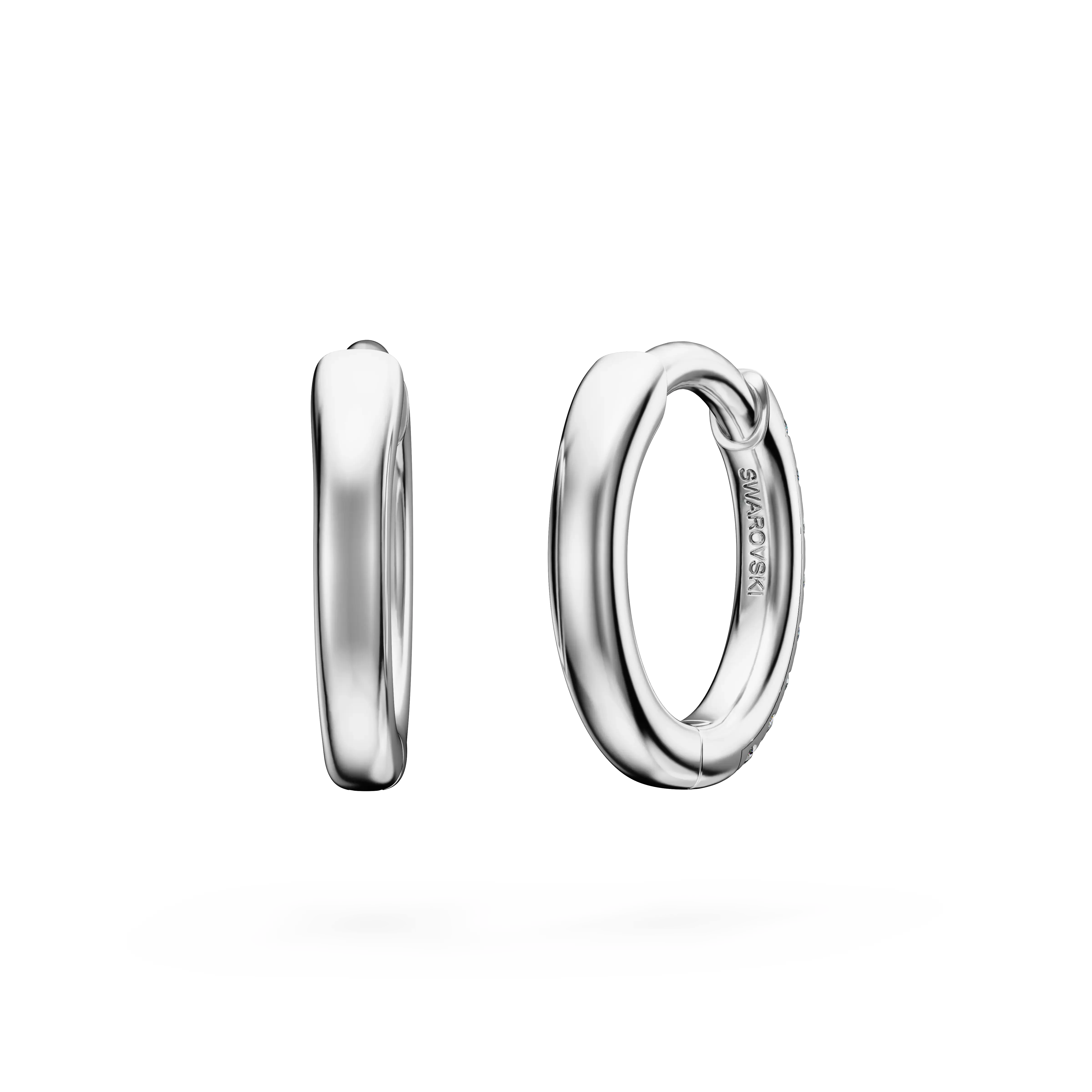 Matrix hoop earrings Crystal pearl/Round cut/White/Rhodium plated