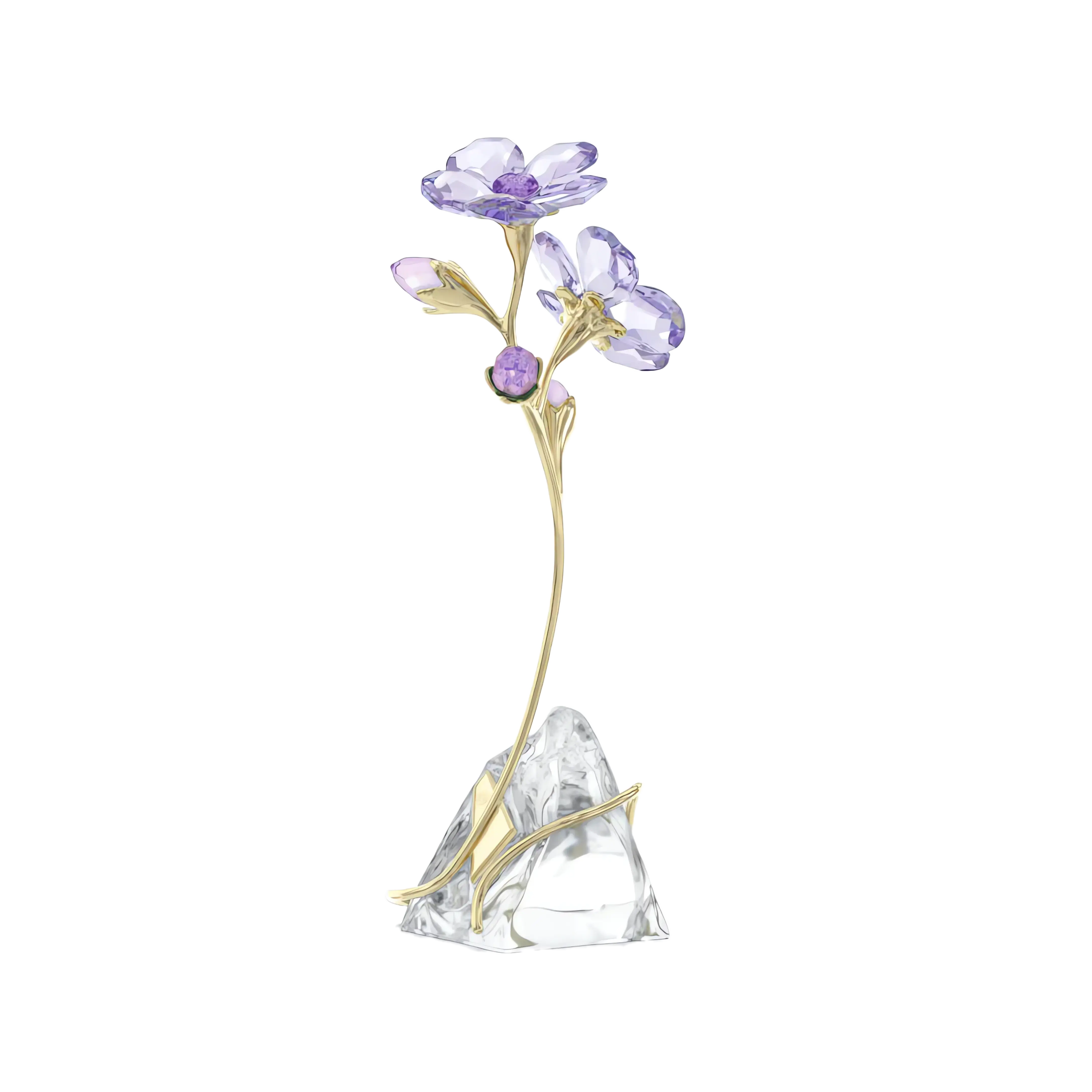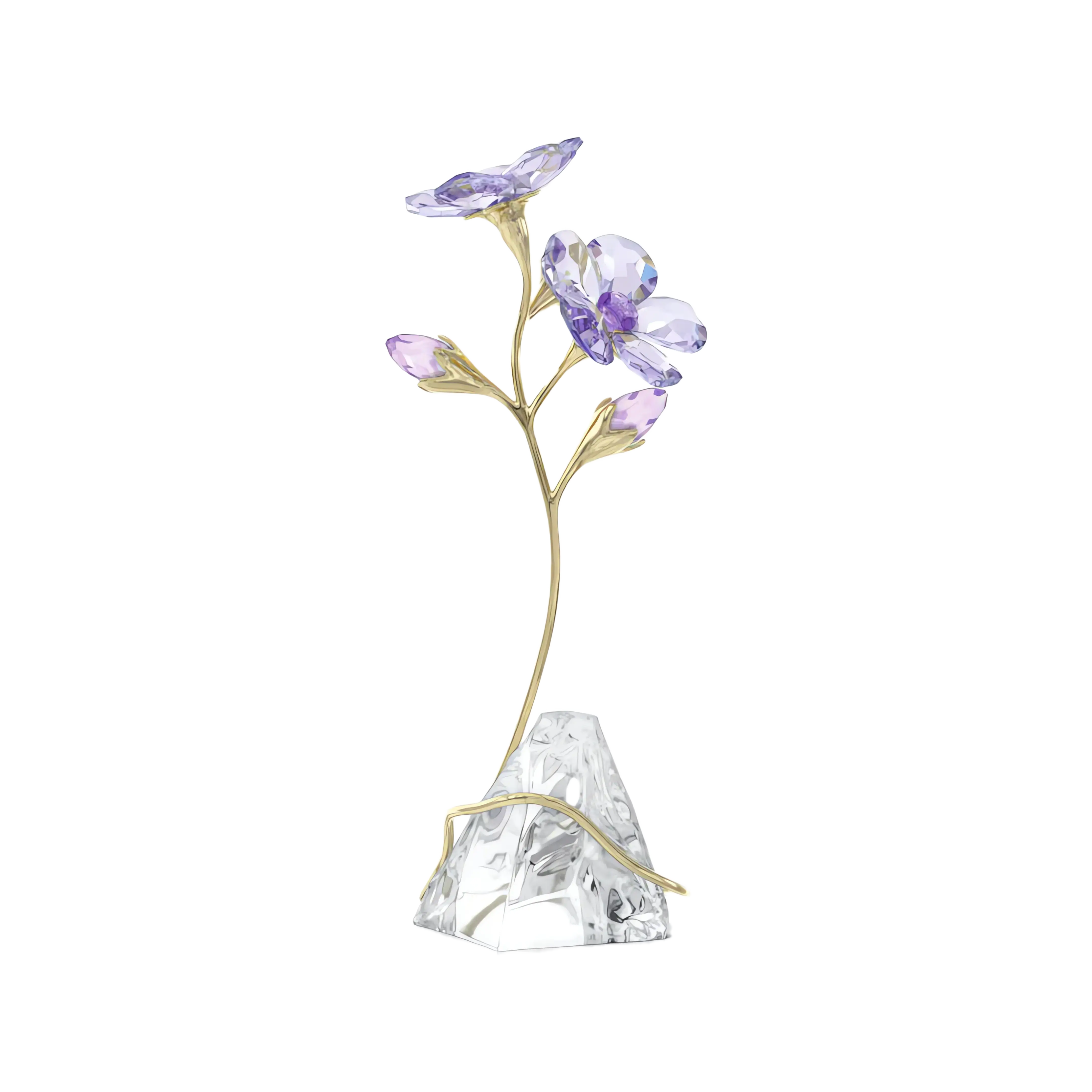 The Rozanne Geranium is loved within nature for its masses of beautiful blooms that shimmer in the breeze. This radiant tribute has captured the iconic flower with 328 facets,including bright blue and purple petals with a wondrous Shimmer effect. The design is completed with a champagne gold-tone metal stem that wraps elegantly around a natural,unfaceted crystal base. Place this display anywhere in your home to provide year-round color and joy. Decoration object. Not a toy. Not suitable for children under 15.