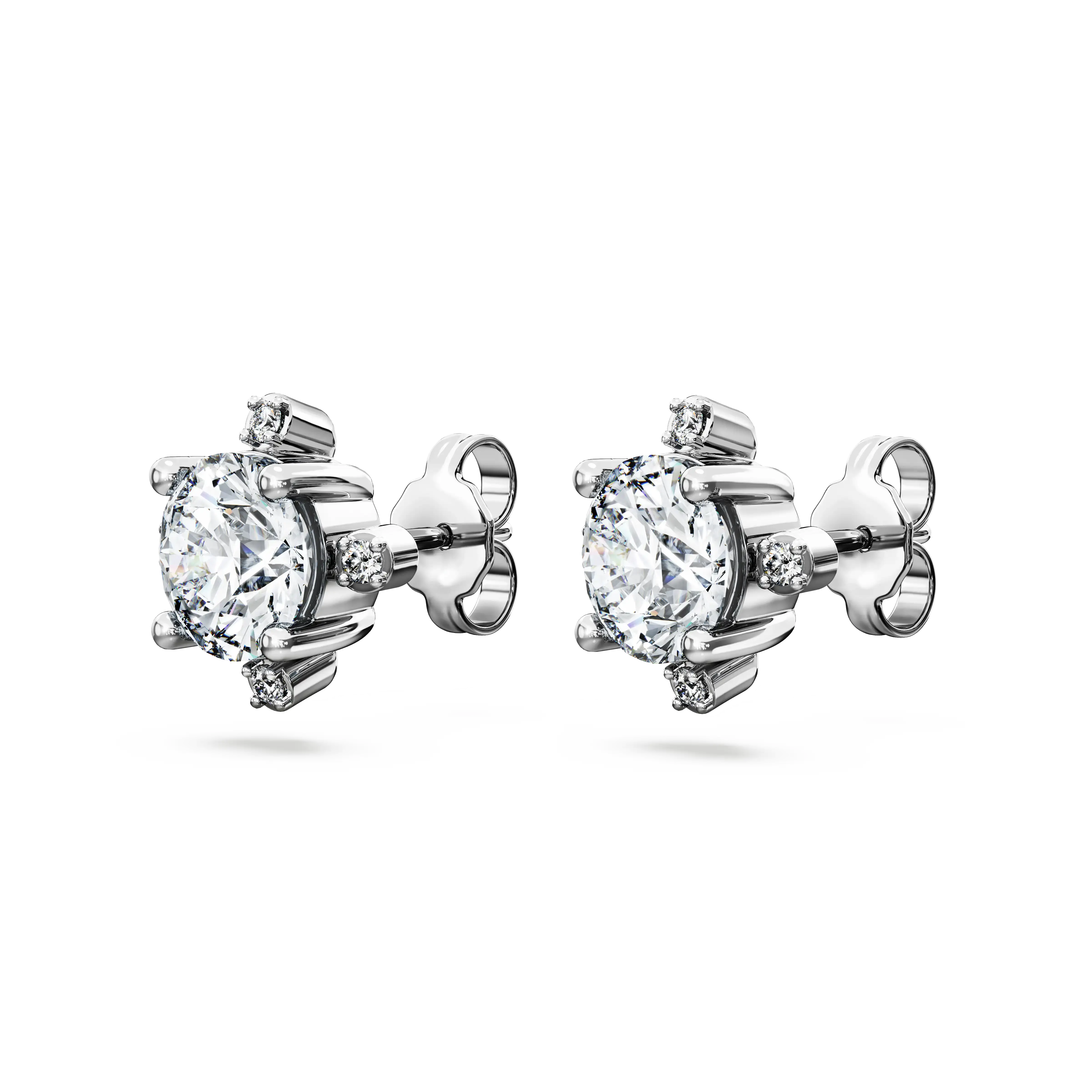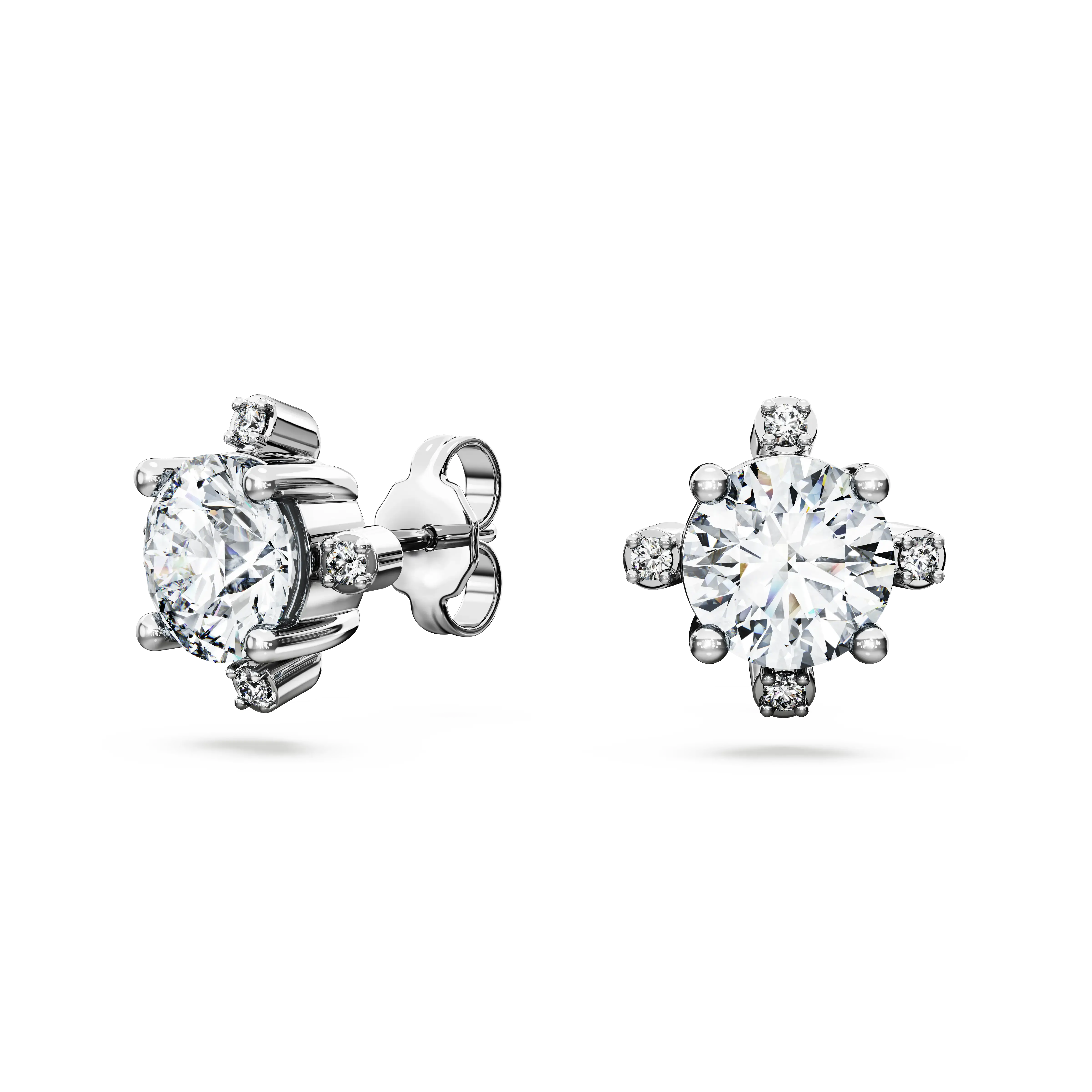 Add a dose of joyful extravagance to your style with these radiant pierced earrings. Each 14K white gold piece features a laboratory grown diamond at the center,expertly faceted for maximum brilliance. Four smaller laboratory grown diamonds in a variety of fancy shapes and sizes surround the center stone,each producing their own unique shine. Pair these earrings with a matching necklace for a sensational effect. This jewelry is IGI (International Gemological Institute) certified and is part of the Galaxy collection created by Giovanna Engelbert.