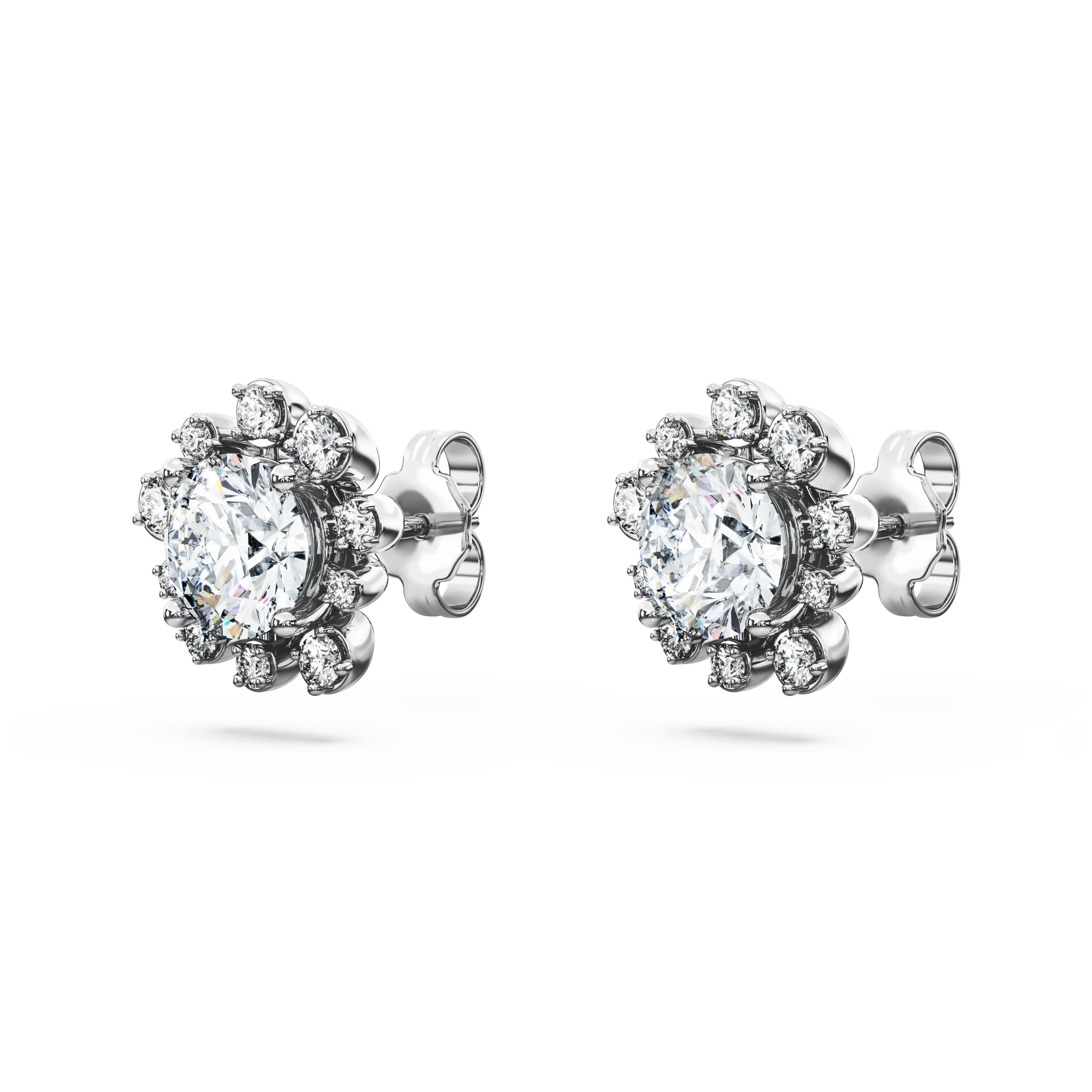 Steal the spotlight with these light-catching pierced earrings. Each 14K white gold piece features a laboratory grown diamond at the center,expertly faceted for maximum brilliance. This is surrounded by 10 more laboratory grown diamonds in various sizes,each producing their own scintillating effect. Wear them with a matching ring or necklace to light up any look. This jewelry is IGI (International Gemological Institute) certified and is part of the Galaxy collection created by Giovanna Engelbert.