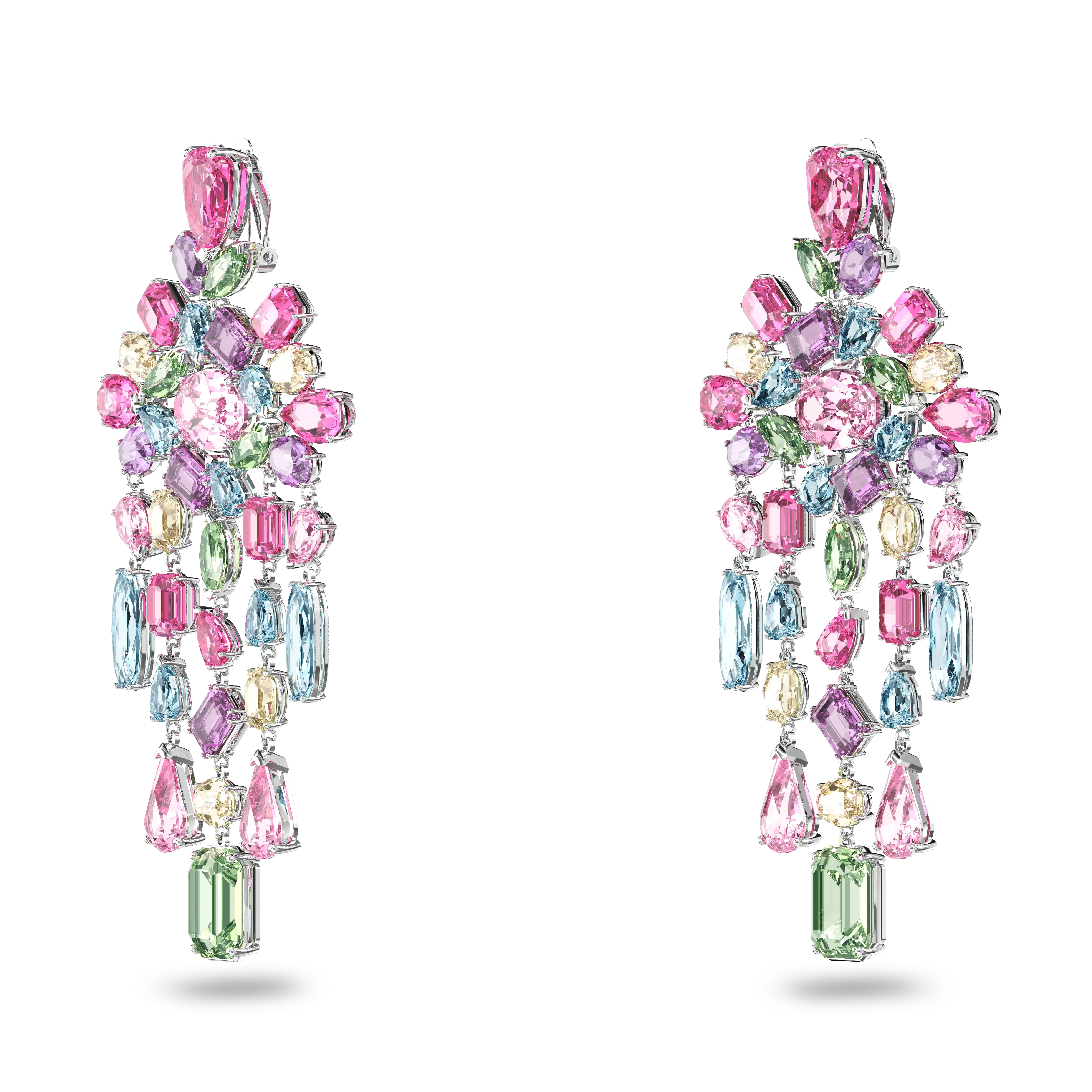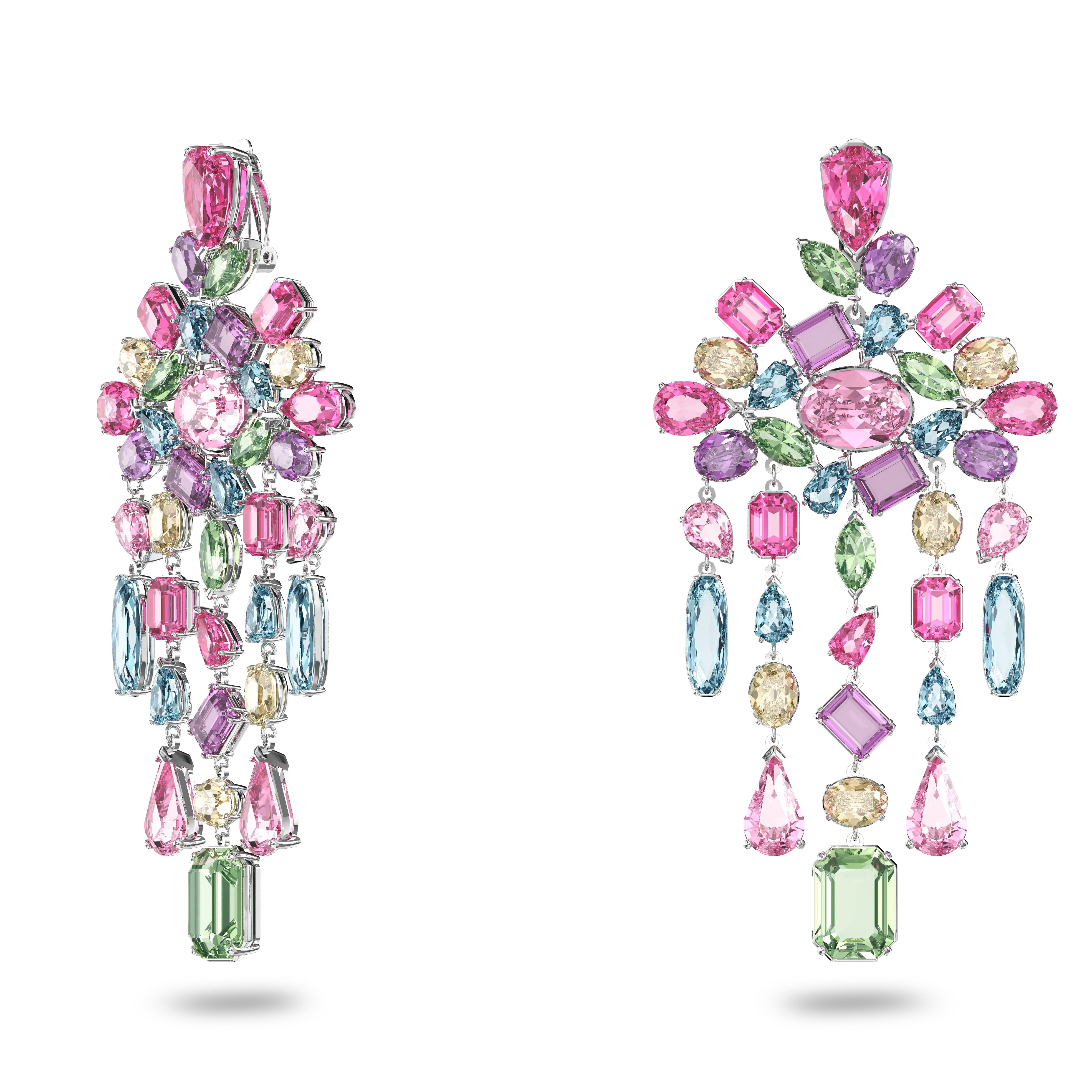 Go bold in these oversized crystal chandelier earrings,expertly crafted from a mix of dazzling precision cuts and pastel hues. Style with sleek tailoring to amp up minimal silhouettes,or style them with dramatic pieces for maximum glamor. These earrings are part of the Gema family,designed by Creative Director Giovanna Engelbert for Collection I.