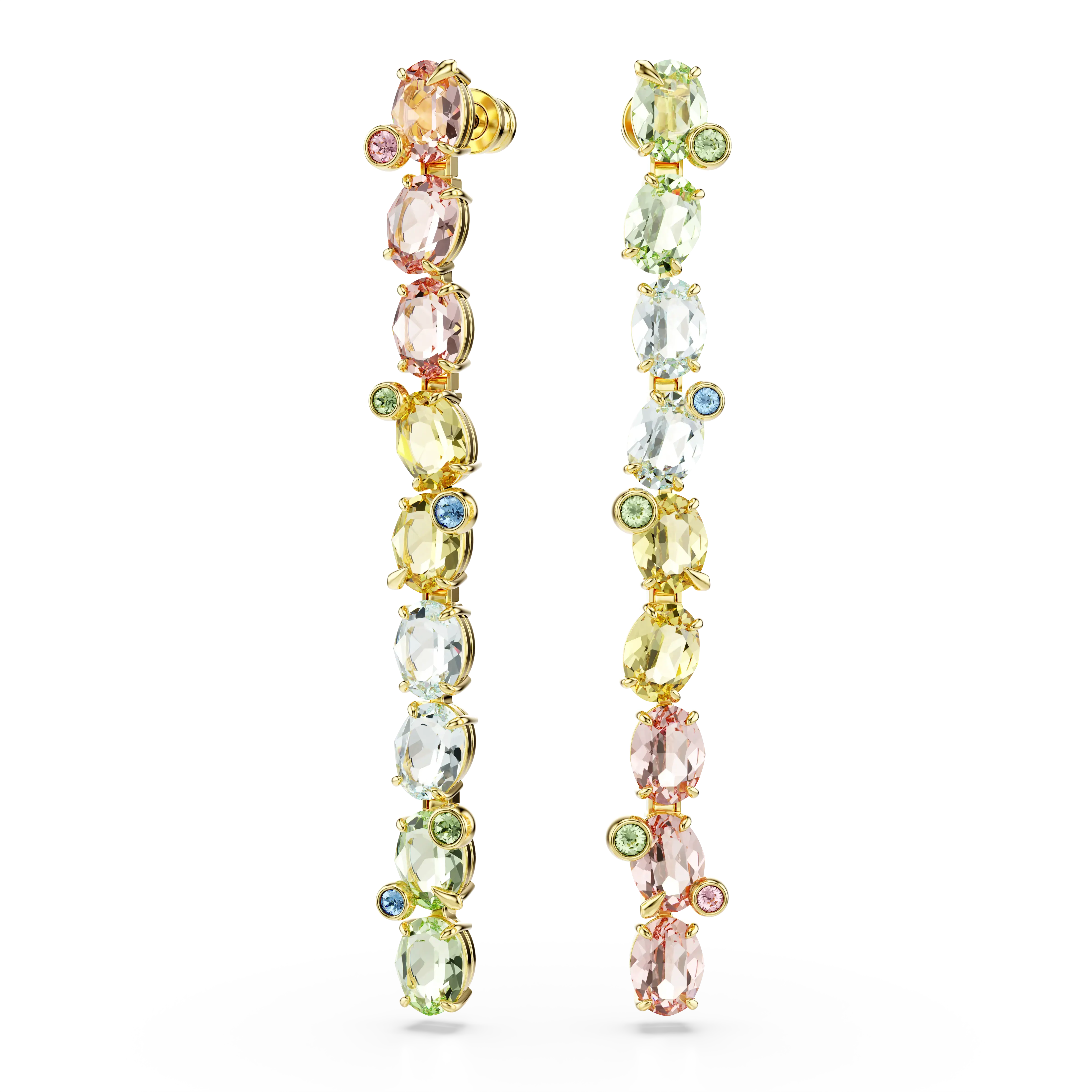 Gema drop earrings Asymmetrical design/Mixed cuts/Long/Multicolored/Gold-tone plated