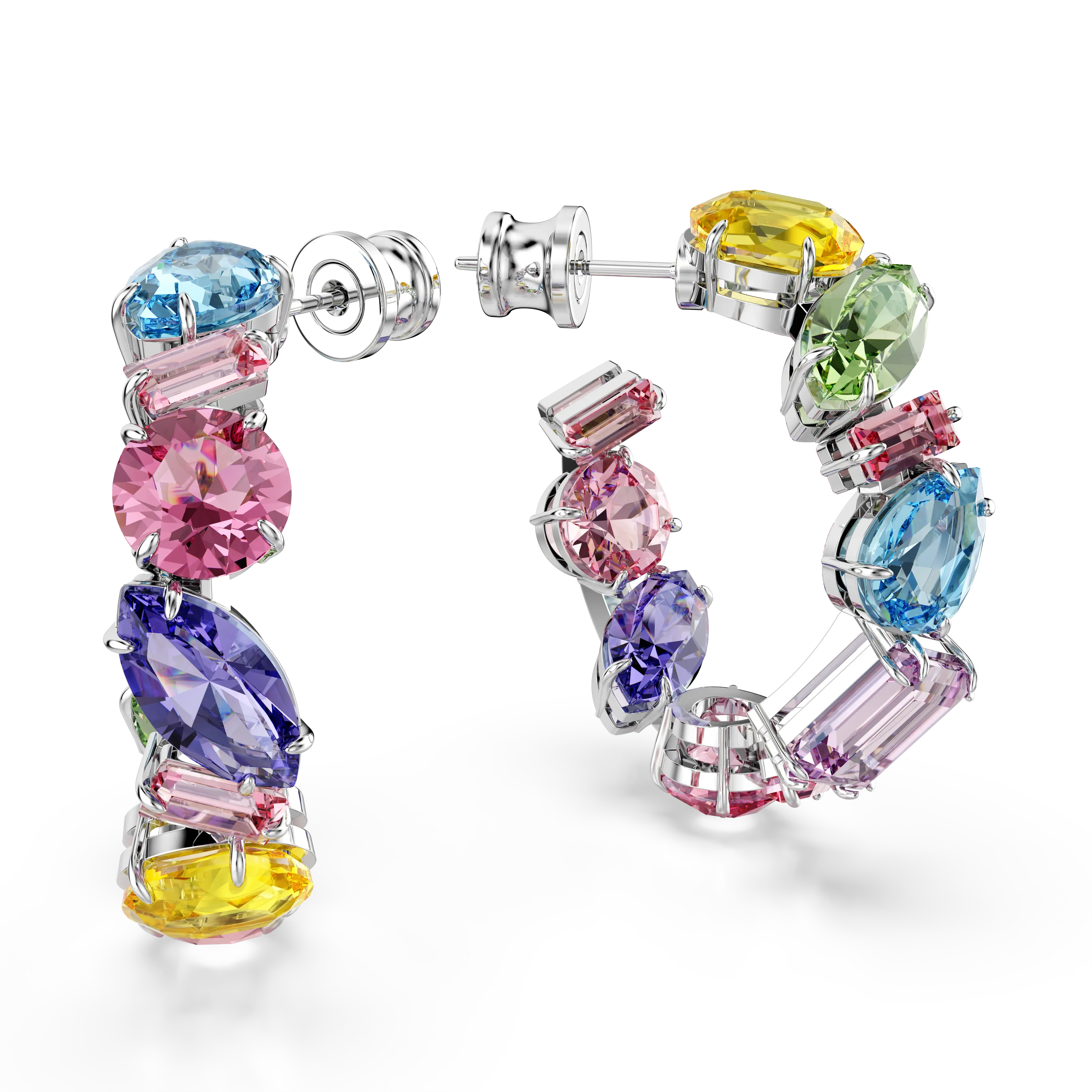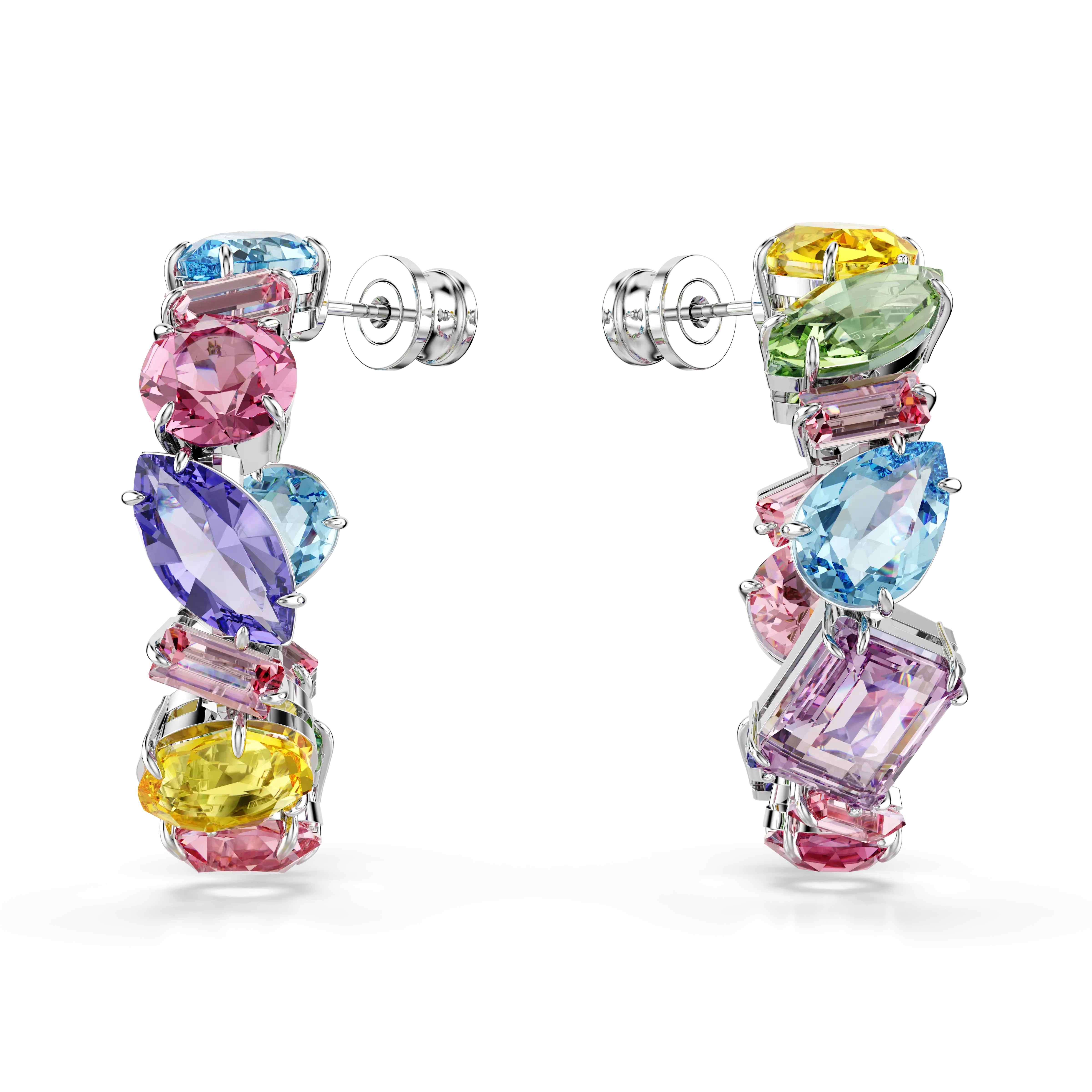 Gema hoop earrings Asymmetrical design/Mixed cuts/Small/Multicolored/Rhodium plated